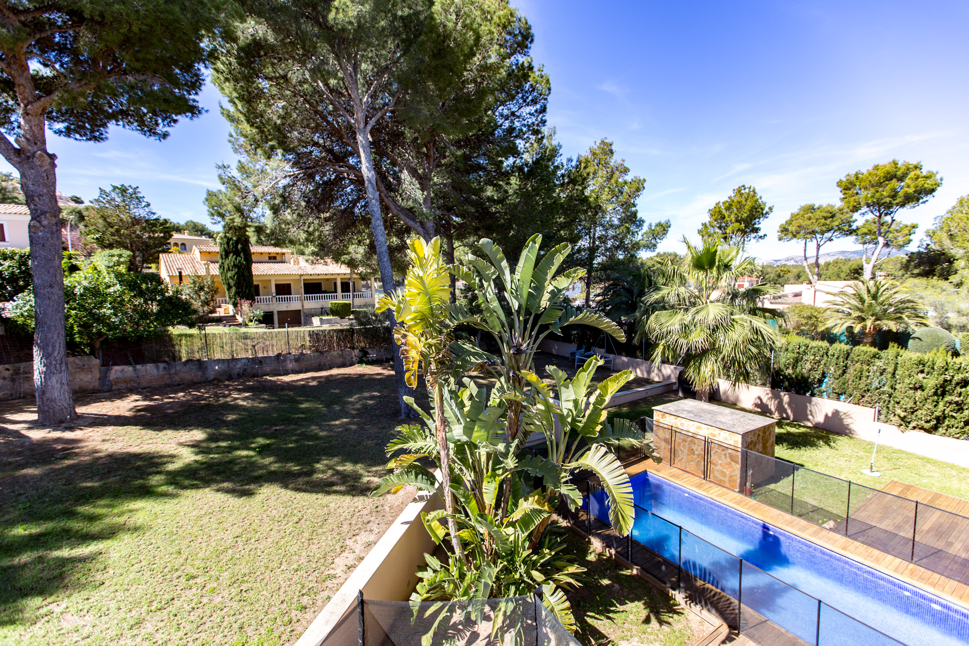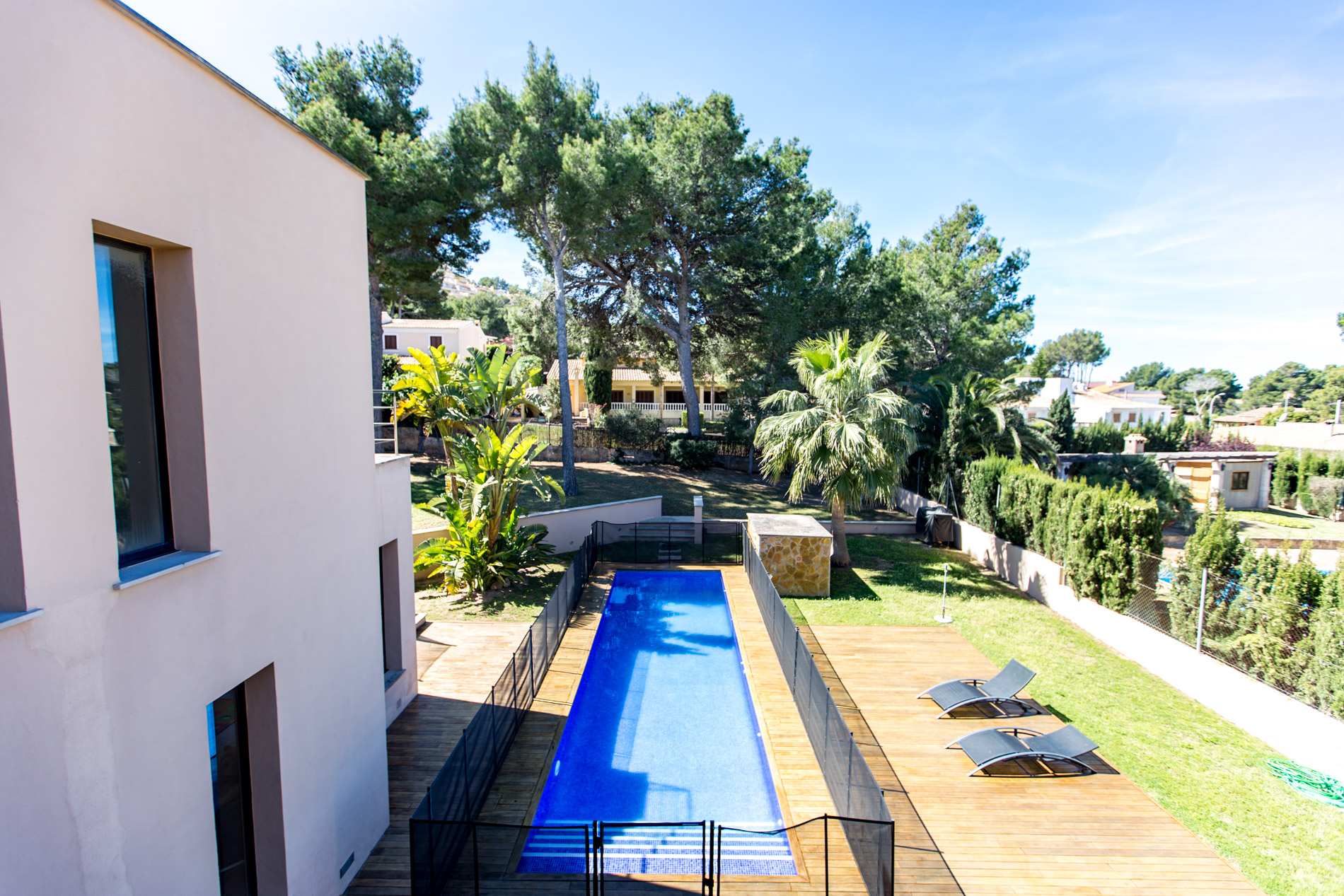 Privater Pool / Garten / Unverbaute Aussicht / Terrasse / Gästebereich / Möbliert / Solarium / Klimaanlage / Doppelverglasung / Kino / Garage / Parkettböden