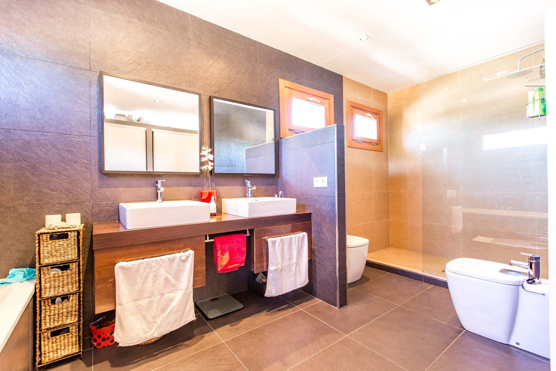 Villa im minimalistischen Stil zur vermietung in einer ruhigen Lage von Santa Ponsa. Grosse Räumlichkeiten sowohl drinnen und draußen, Lichtdurchflutet, ideal für Familien mit Kindern.