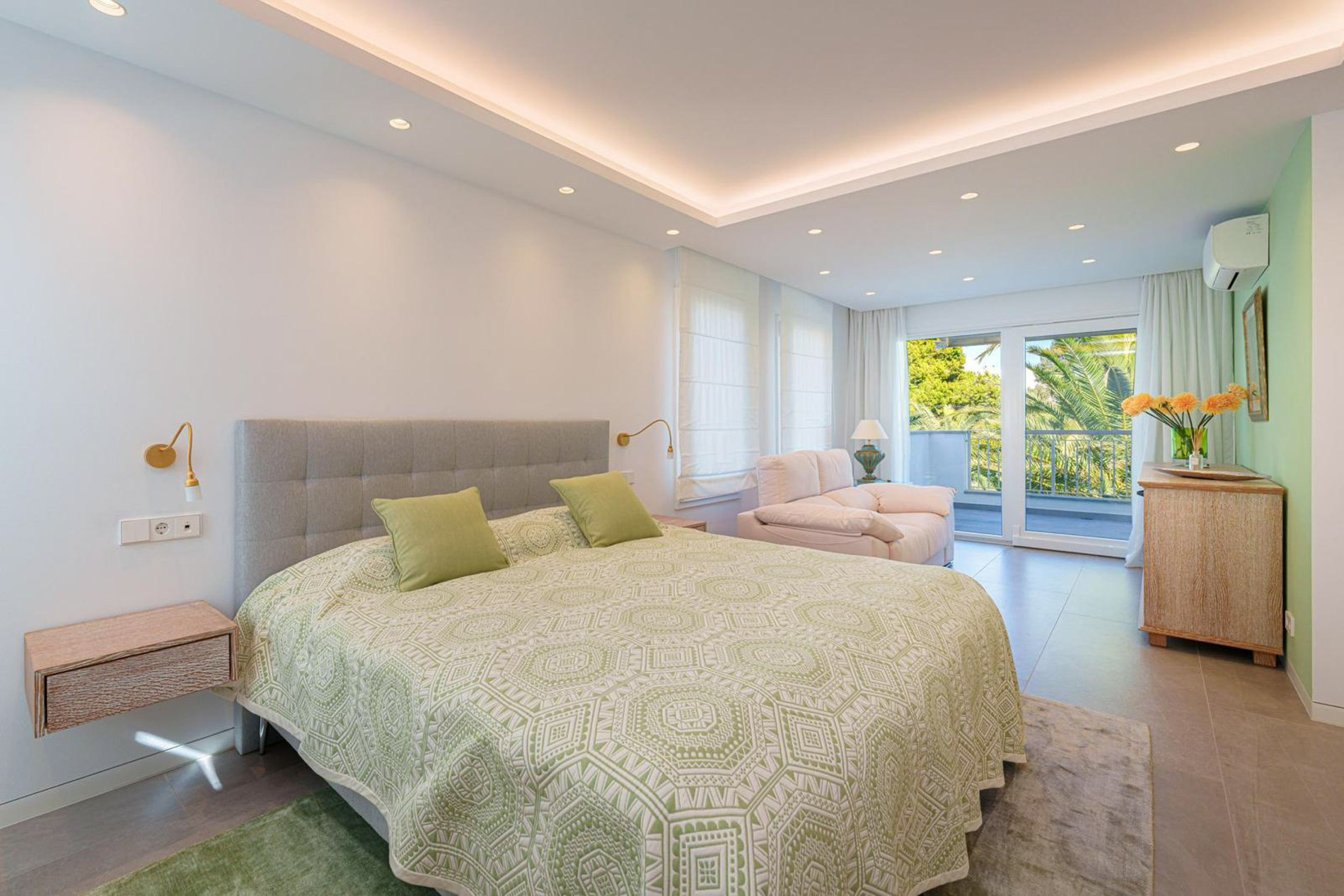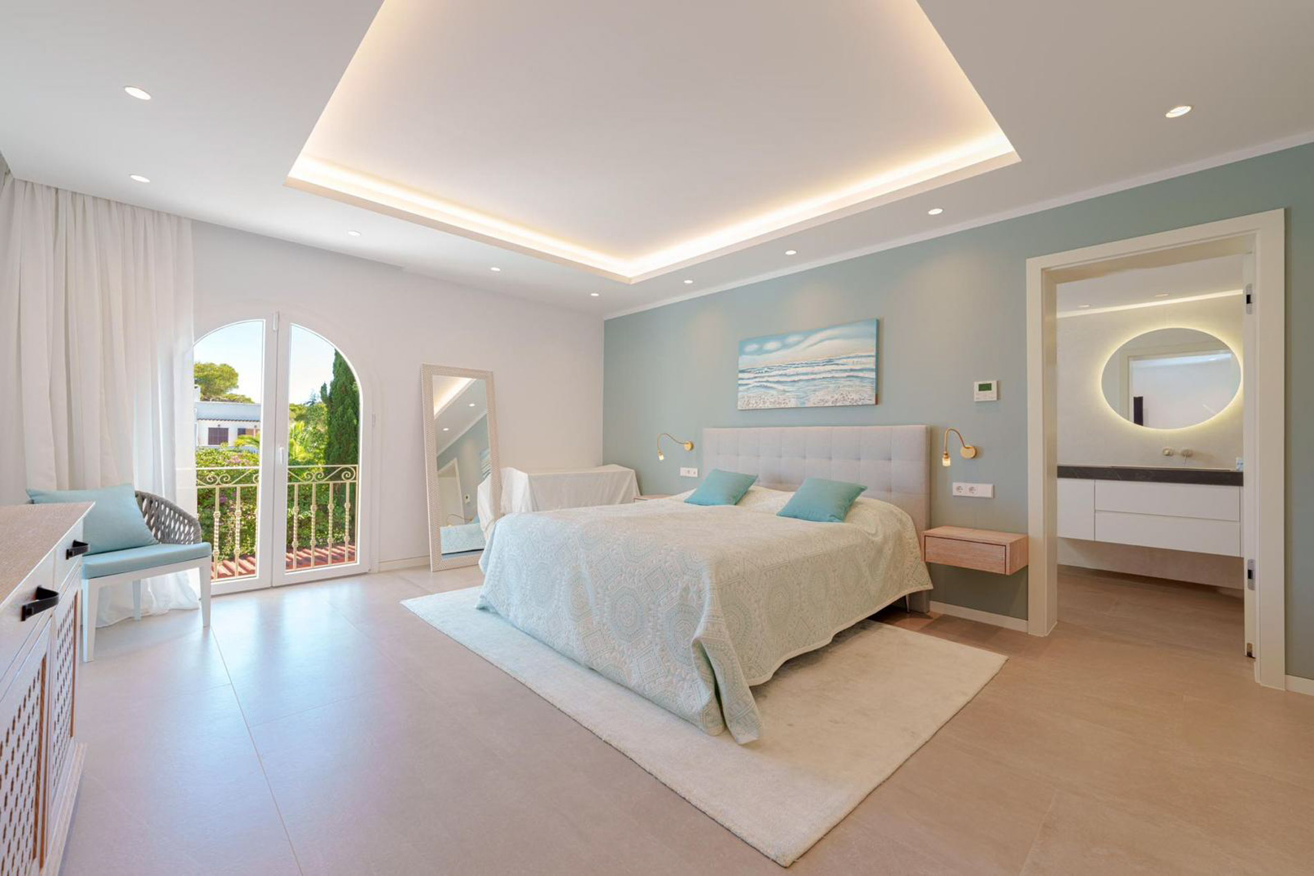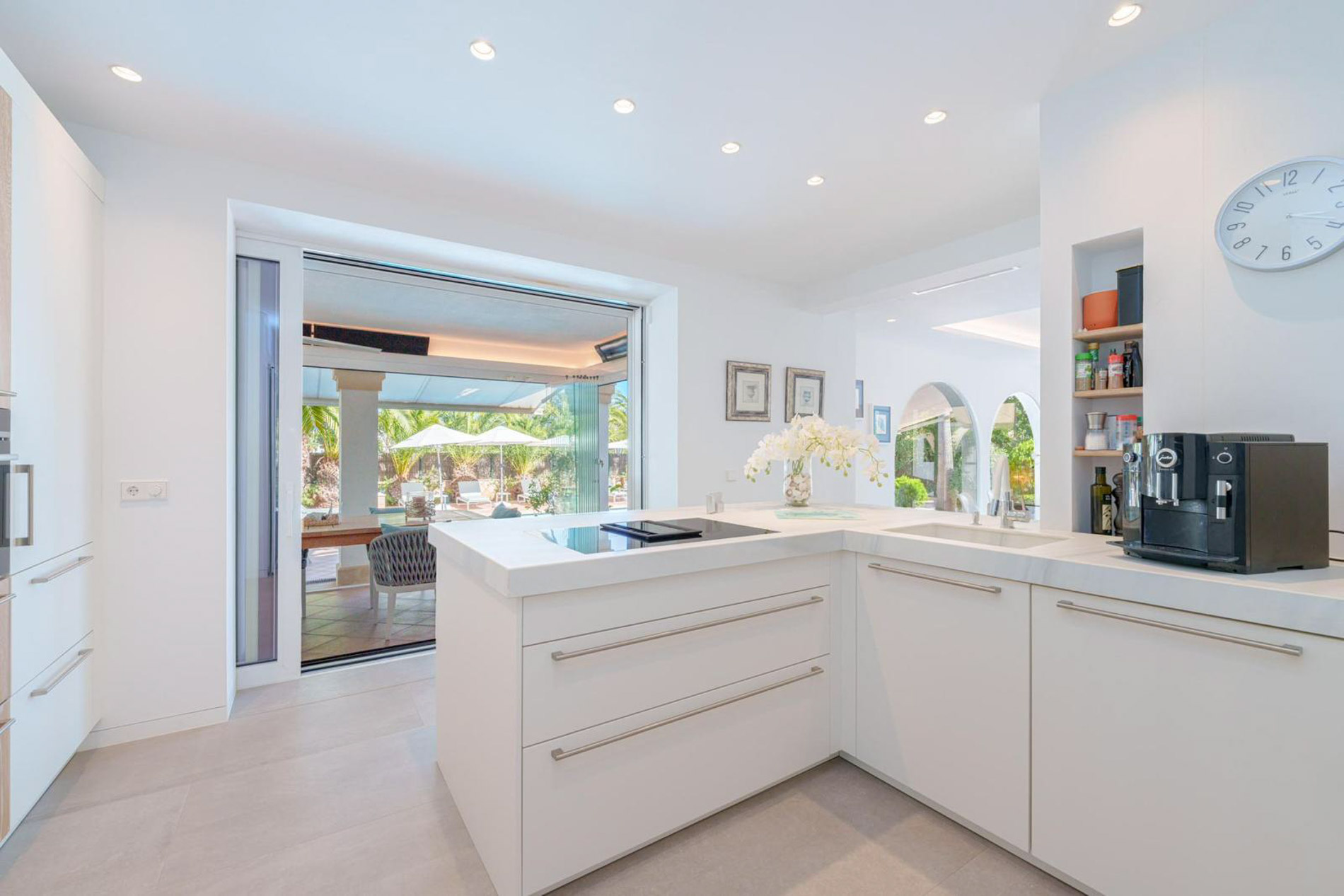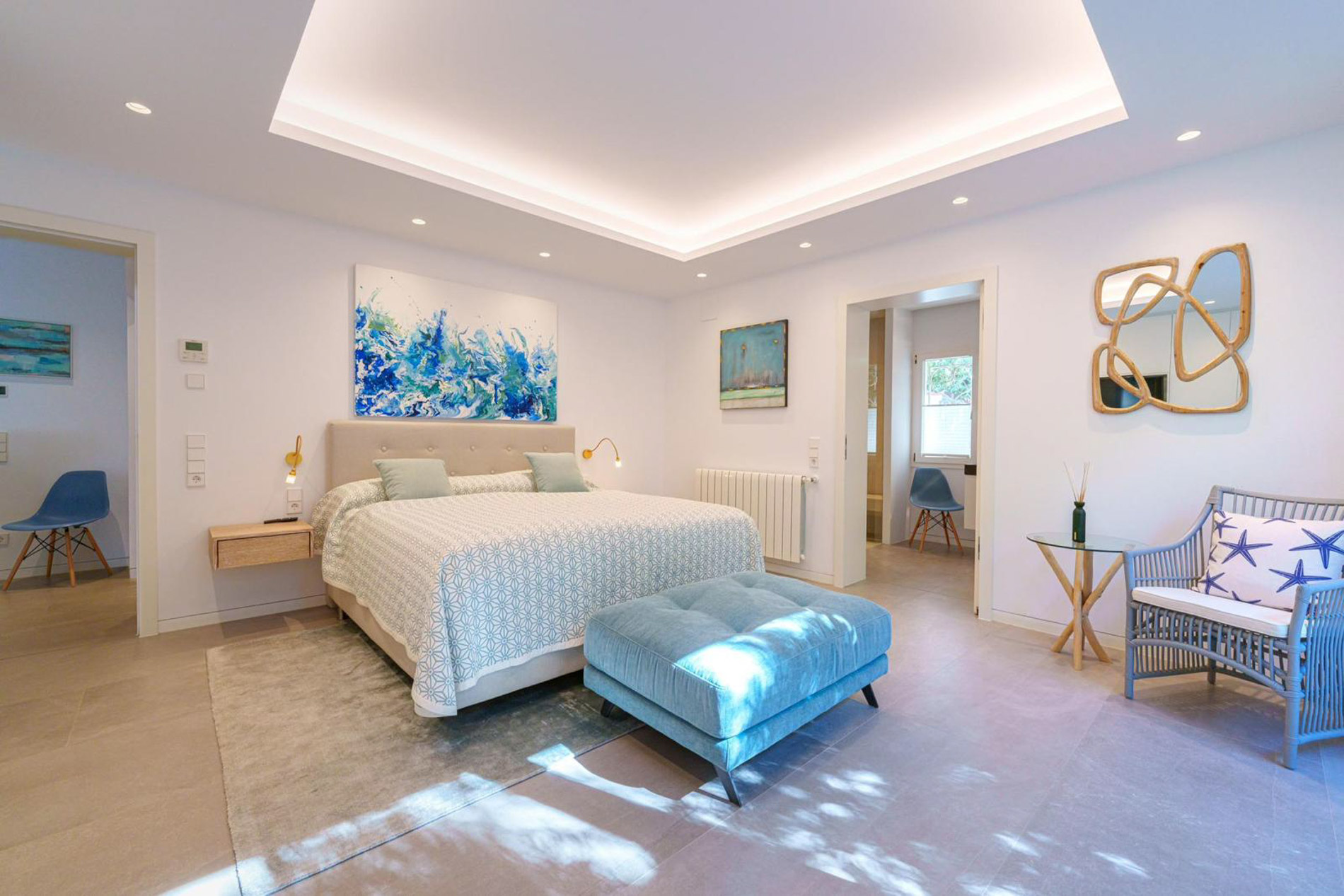 In unmittelbarer Nähe zur charmanten Altstadt von Cala d’Or erwartet Sie diese im Jahr 2019 umfassend renovierte Villa. Der Sandstrand Cala Gran liegt nur zwei Gehminuten entfernt und ist bequem erreichbar. Im Erdgeschoss des modernisierten Haupthauses befindet sich ein heller Wohn- und Essbereich mit einem eleganten Ethanol-Kamin sowie einer offenen, stilvollen Küche. Eine große Terrasse, die bei Bedarf durch faltbare Glaselemente vollständig geschlossen werden kann, ist mit einer hochwertigen Außenküche ausgestattet und lädt zum Entspannen ein.Ein separater Bereich beherbergt zwei Schlafzimmer mit praktischen Einbauschränken, jeweils mit eigenem Bad en Suite, sowie ein Gäste-WC, das auch von außen zugänglich ist. Im oberen Stockwerk finden Sie das großzügige Hauptschlafzimmer mit Ankleide und Bad en Suite, zusätzlich zu drei weiteren Schlafzimmern und zwei weiteren Badezimmern, von denen eines en Suite ist. Ein Hauswirtschaftsraum mit separatem Zugang ergänzt die Funktionalität des Hauses. Dank der Fußbodenheizung und der zentralen Klimaanlage genießen Sie das ganze Jahr über ein angenehmes Wohnklima.Das separate Gästehaus, das über einen Keller verfügt, bietet ein Wohnzimmer, eine Küche sowie zwei Schlafzimmer mit jeweils eigenem Bad en Suite. Auch hier sorgt eine Klimaanlage für komfortable Temperaturen.Der pflegeleichte Garten ist eine Oase der Entspannung: ein beheizbarer Pool, eine Sauna mit Dusche und verschiedene Sitzbereiche, teils im Schatten, bieten ideale Voraussetzungen für erholsame Momente mit Familie und Freunden. Restaurants und Geschäfte sind fußläufig erreichbar, und der exklusive Yachthafen von Cala d’Or liegt nur etwa fünf Autominuten entfernt.MallorcaSite, Ihre Immobilienagentur auf Mallorca, empfiehlt diese Immobilie wegen der Nähe zum Strand, wegen der Grosszügigkeit und der ruhigen Lage.