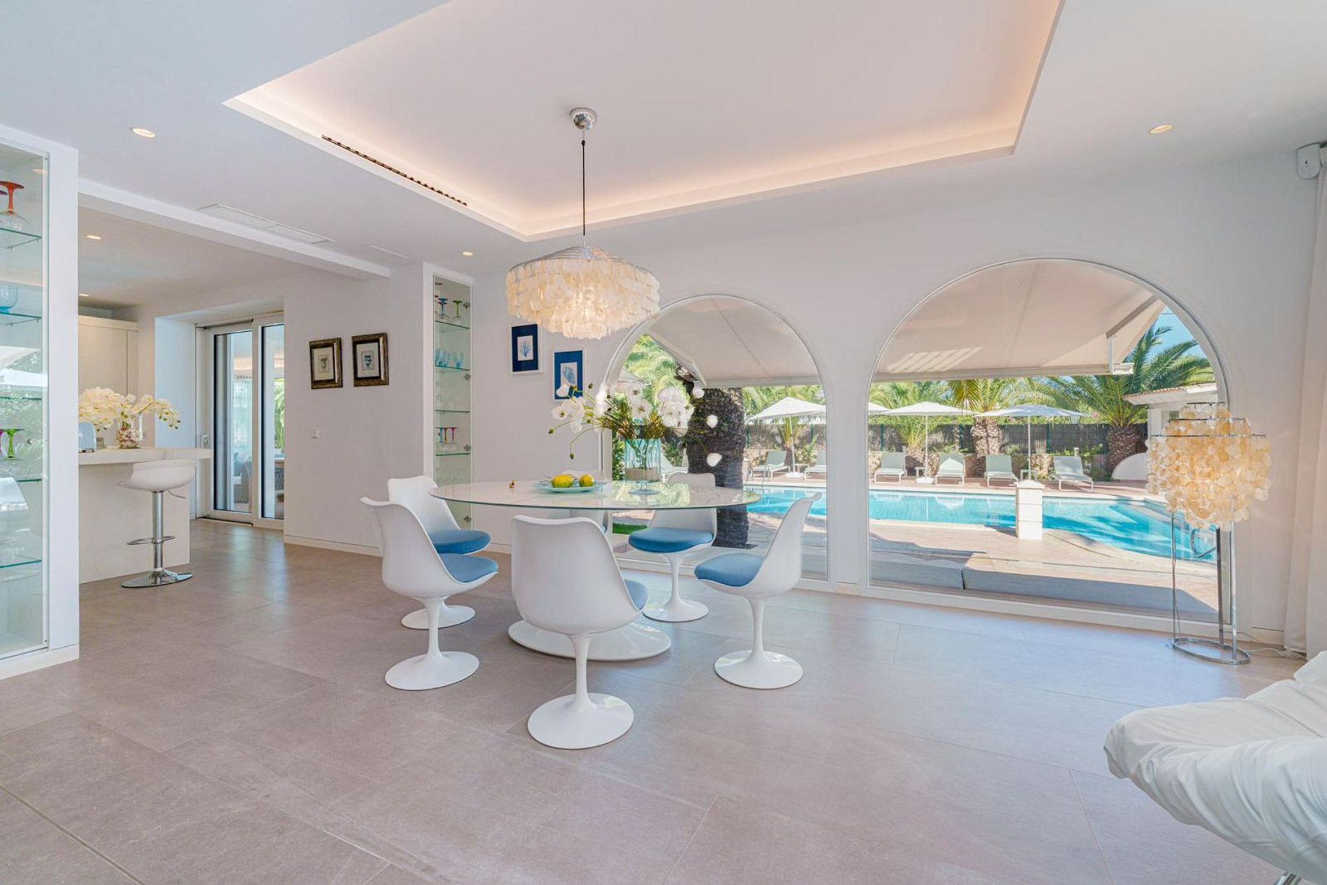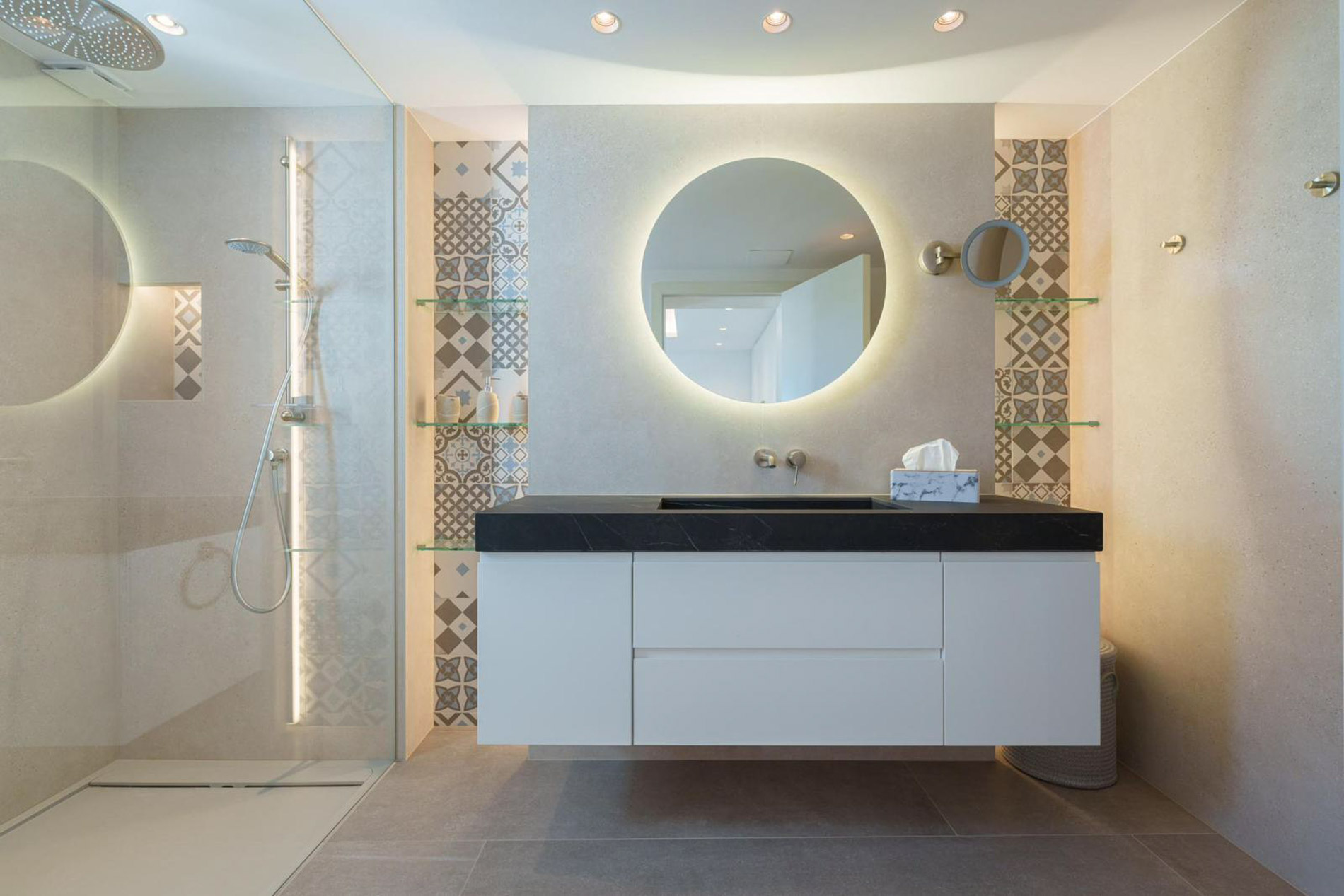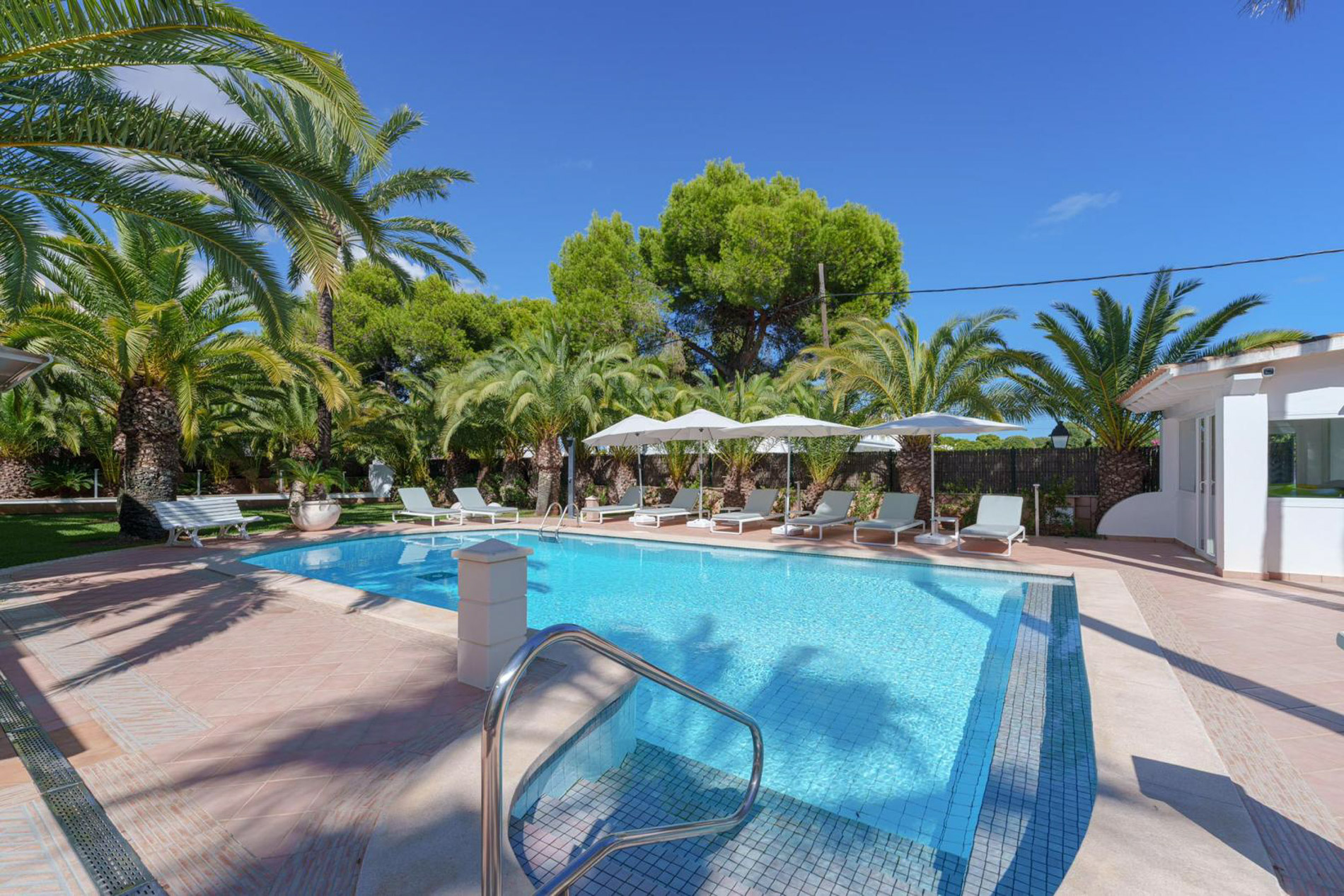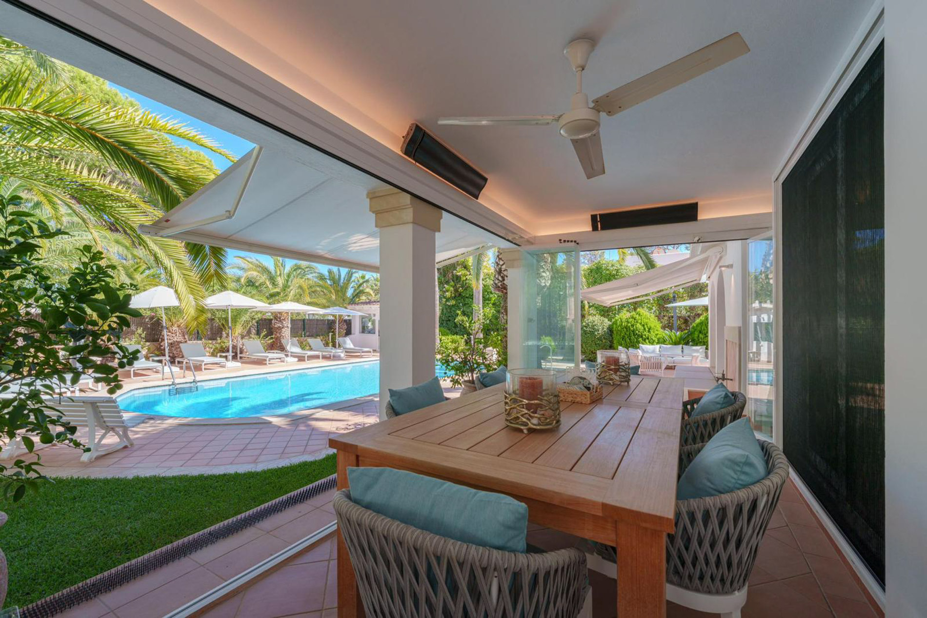 In unmittelbarer Nähe zur charmanten Altstadt von Cala d’Or erwartet Sie diese im Jahr 2019 umfassend renovierte Villa. Der Sandstrand Cala Gran liegt nur zwei Gehminuten entfernt und ist bequem erreichbar. Im Erdgeschoss des modernisierten Haupthauses befindet sich ein heller Wohn- und Essbereich mit einem eleganten Ethanol-Kamin sowie einer offenen, stilvollen Küche. Eine große Terrasse, die bei Bedarf durch faltbare Glaselemente vollständig geschlossen werden kann, ist mit einer hochwertigen Außenküche ausgestattet und lädt zum Entspannen ein.Ein separater Bereich beherbergt zwei Schlafzimmer mit praktischen Einbauschränken, jeweils mit eigenem Bad en Suite, sowie ein Gäste-WC, das auch von außen zugänglich ist. Im oberen Stockwerk finden Sie das großzügige Hauptschlafzimmer mit Ankleide und Bad en Suite, zusätzlich zu drei weiteren Schlafzimmern und zwei weiteren Badezimmern, von denen eines en Suite ist. Ein Hauswirtschaftsraum mit separatem Zugang ergänzt die Funktionalität des Hauses. Dank der Fußbodenheizung und der zentralen Klimaanlage genießen Sie das ganze Jahr über ein angenehmes Wohnklima.Das separate Gästehaus, das über einen Keller verfügt, bietet ein Wohnzimmer, eine Küche sowie zwei Schlafzimmer mit jeweils eigenem Bad en Suite. Auch hier sorgt eine Klimaanlage für komfortable Temperaturen.Der pflegeleichte Garten ist eine Oase der Entspannung: ein beheizbarer Pool, eine Sauna mit Dusche und verschiedene Sitzbereiche, teils im Schatten, bieten ideale Voraussetzungen für erholsame Momente mit Familie und Freunden. Restaurants und Geschäfte sind fußläufig erreichbar, und der exklusive Yachthafen von Cala d’Or liegt nur etwa fünf Autominuten entfernt.MallorcaSite, Ihre Immobilienagentur auf Mallorca, empfiehlt diese Immobilie wegen der Nähe zum Strand, wegen der Grosszügigkeit und der ruhigen Lage.