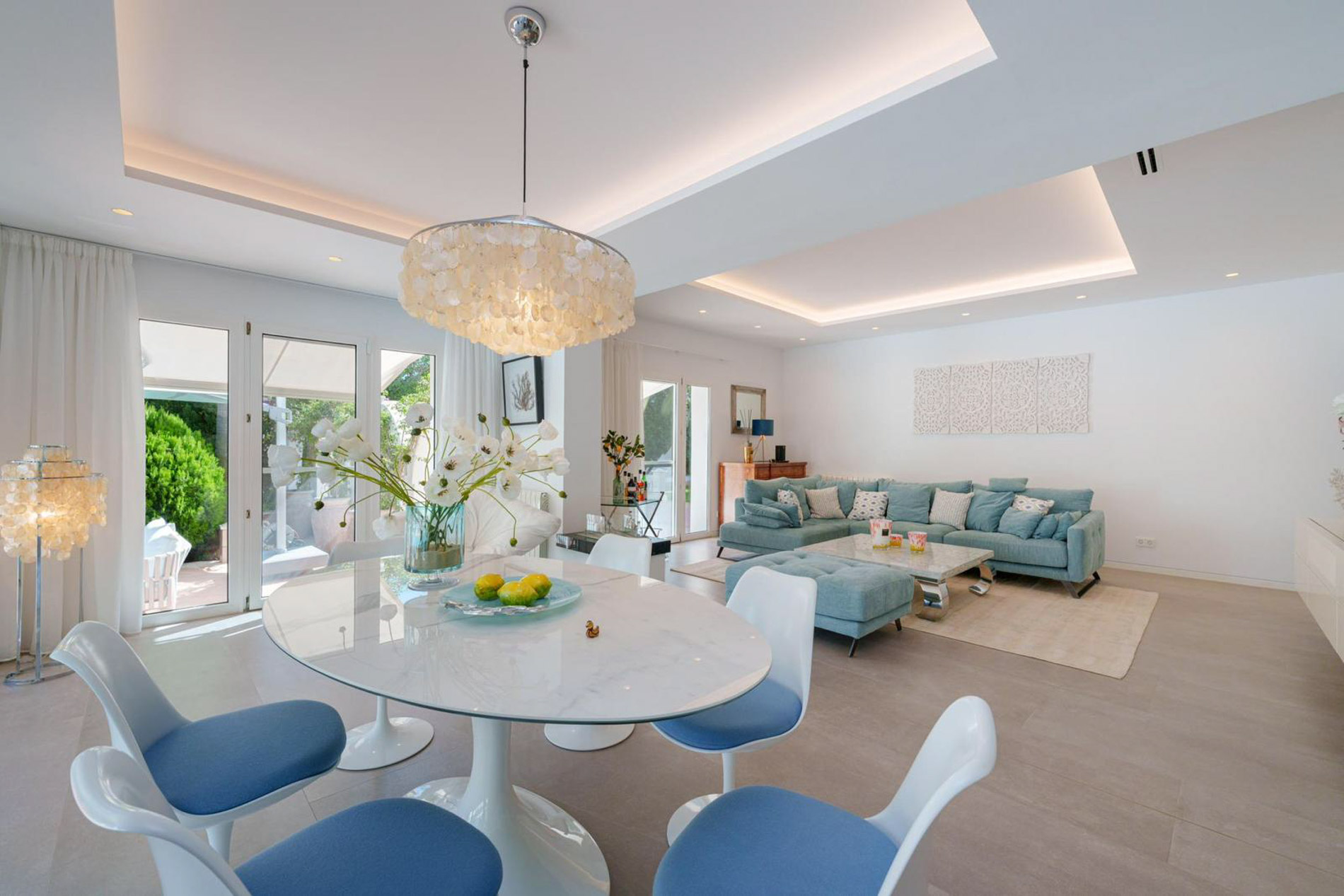 In unmittelbarer Nähe zur charmanten Altstadt von Cala d’Or erwartet Sie diese im Jahr 2019 umfassend renovierte Villa. Der Sandstrand Cala Gran liegt nur zwei Gehminuten entfernt und ist bequem erreichbar. Im Erdgeschoss des modernisierten Haupthauses befindet sich ein heller Wohn- und Essbereich mit einem eleganten Ethanol-Kamin sowie einer offenen, stilvollen Küche. Eine große Terrasse, die bei Bedarf durch faltbare Glaselemente vollständig geschlossen werden kann, ist mit einer hochwertigen Außenküche ausgestattet und lädt zum Entspannen ein.