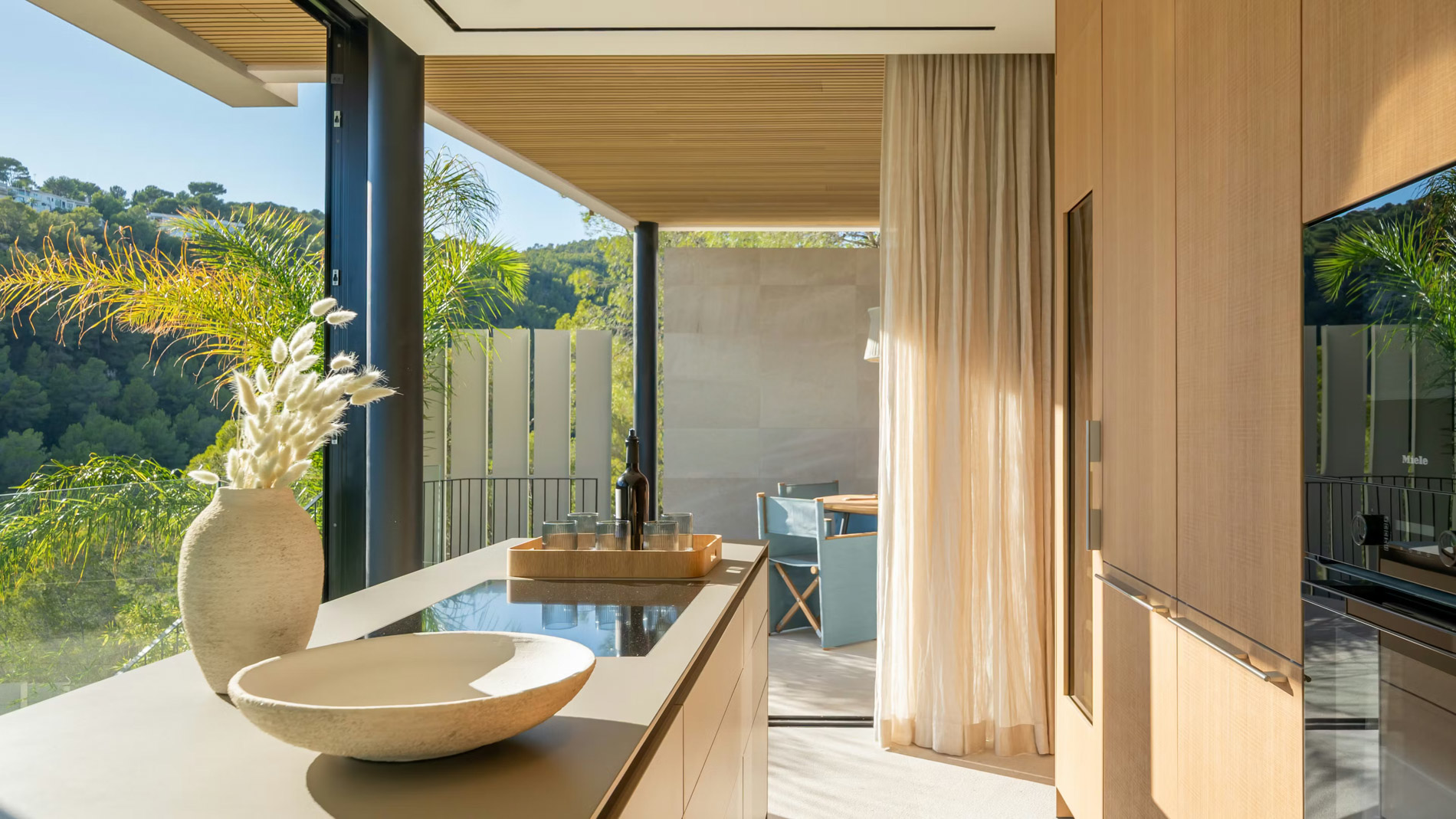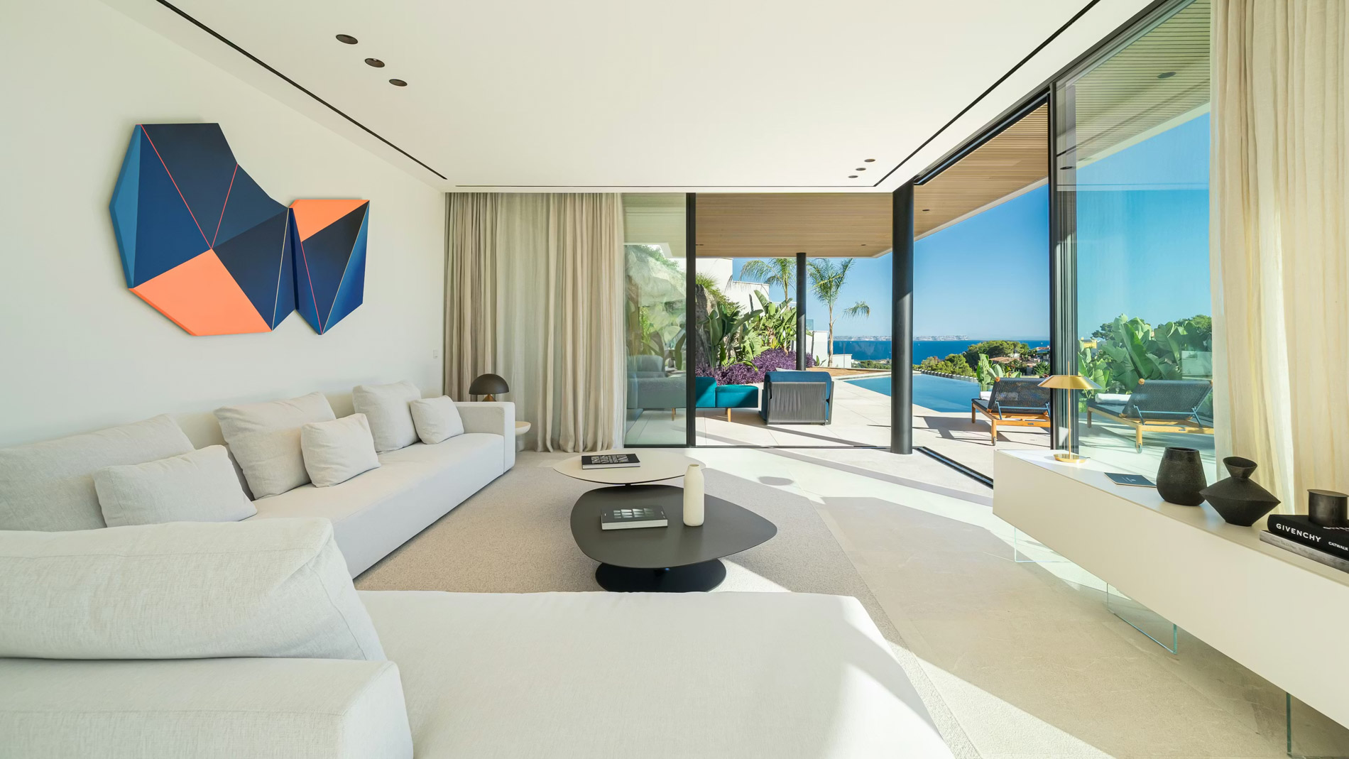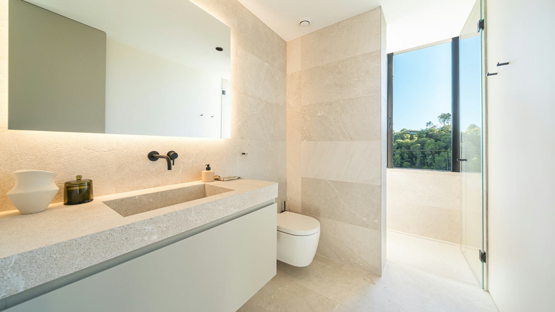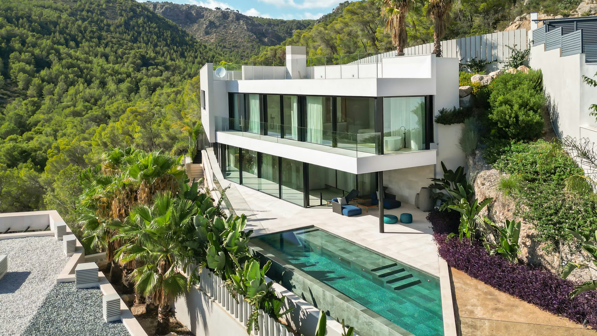 Die Villa befindet sich in Costa d’en Blanes, einer der exklusivsten Gegenden im Südwesten Mallorcas, nur wenige Minuten von Puerto Portals entfernt, bekannt für seine lebhafte Atmosphäre, luxuriöse Geschäfte, erstklassige Restaurants und den eleganten Yachthafen. Die Nähe zu wunderschönen Stränden und Golfplätzen sowie zu Palma und dem internationalen Flughafen macht diese Immobilie zu einer idealen Residenz sowohl für den dauerhaften Wohnsitz als auch für ein Ferienhaus.Die Villa ist auf mehrere Ebenen verteilt, die durch einen Aufzug und Treppen miteinander verbunden sind, wodurch Funktionalität maximiert wird, ohne auf Design zu verzichten.Beim Betreten der Villa gibt es zwei Parkplätze mit einer Drehplattform, die den Zugang zu den Fahrzeugen erleichtern. Die obere Etage beherbergt die Master-Suite mit eigenem Bad, Ankleidezimmer und Panoramablick auf das Meer. Auf dieser Etage befinden sich auch zwei zusätzliche Schlafzimmer, jedes mit eigenem Bad und geräumigen Einbauschränken. Darüber hinaus verbindet der Aufzug alle Ebenen der Villa, was jederzeit Komfort und Privatsphäre garantiert.Beim Hinuntergehen der Treppe befindet sich ein Gästebad sowie eine moderne offene Küche mit einer kleinen Dirty Kitchen und einer privaten Terrasse auf der rechten Seite. Das Wohnzimmer und der Essbereich befinden sich auf der linken Seite, wobei großzügige und helle Räume durch die bodentiefen Fenster entstehen. Von hier aus gelangt man auf eine Hauptterrasse, die mit einem spektakulären 57 m² großen Pool verbunden ist, an dem man sich entspannen und die Aussicht genießen kann. Außerdem befindet sich auf dieser Ebene ein zusätzliches Schlafzimmer mit unabhängigem Zugang zur Terrasse.Im Untergeschoss gibt es neben einem großen Mehrzweckraum, der als Fitnessraum, Spielzimmer oder privates Kino genutzt werden kann, auch eine Waschküche und einen Technikraum, der die Heizungs- und Klimaanlagensysteme der Villa beherbergt. Diese Etage bietet auch Zugang zu einer großen grünen Fläche mit zwei zusätzlichen Grundstücken, was eine großartige Möglichkeit bietet, die Privatsphäre zu genießen oder die Immobilie weiter auszubauen.Abschließend erreicht man über eine Treppe vom überdachten Parkplatz aus eine beeindruckende Solarium-Terrasse, die sich perfekt zum Sonnenbaden und Genießen der Panoramablick eignet.Die Villa ist mit Fußbodenheizung und Heizung\/Klima ausgestattet, die während des ganzen Jahres maximalen Komfort bieten. Zudem verfügt sie über eine geschlossene Garage für zwei Fahrzeuge und einen zusätzlichen Außenparkplatz. Es gibt auch die Möglichkeit, designmöbel zu erwerben, die perfekt den modernen und eleganten Stil der Villa ergänzen.