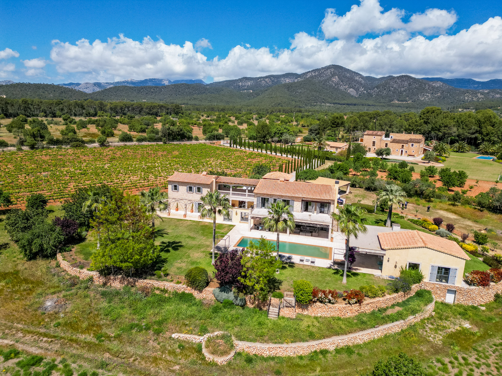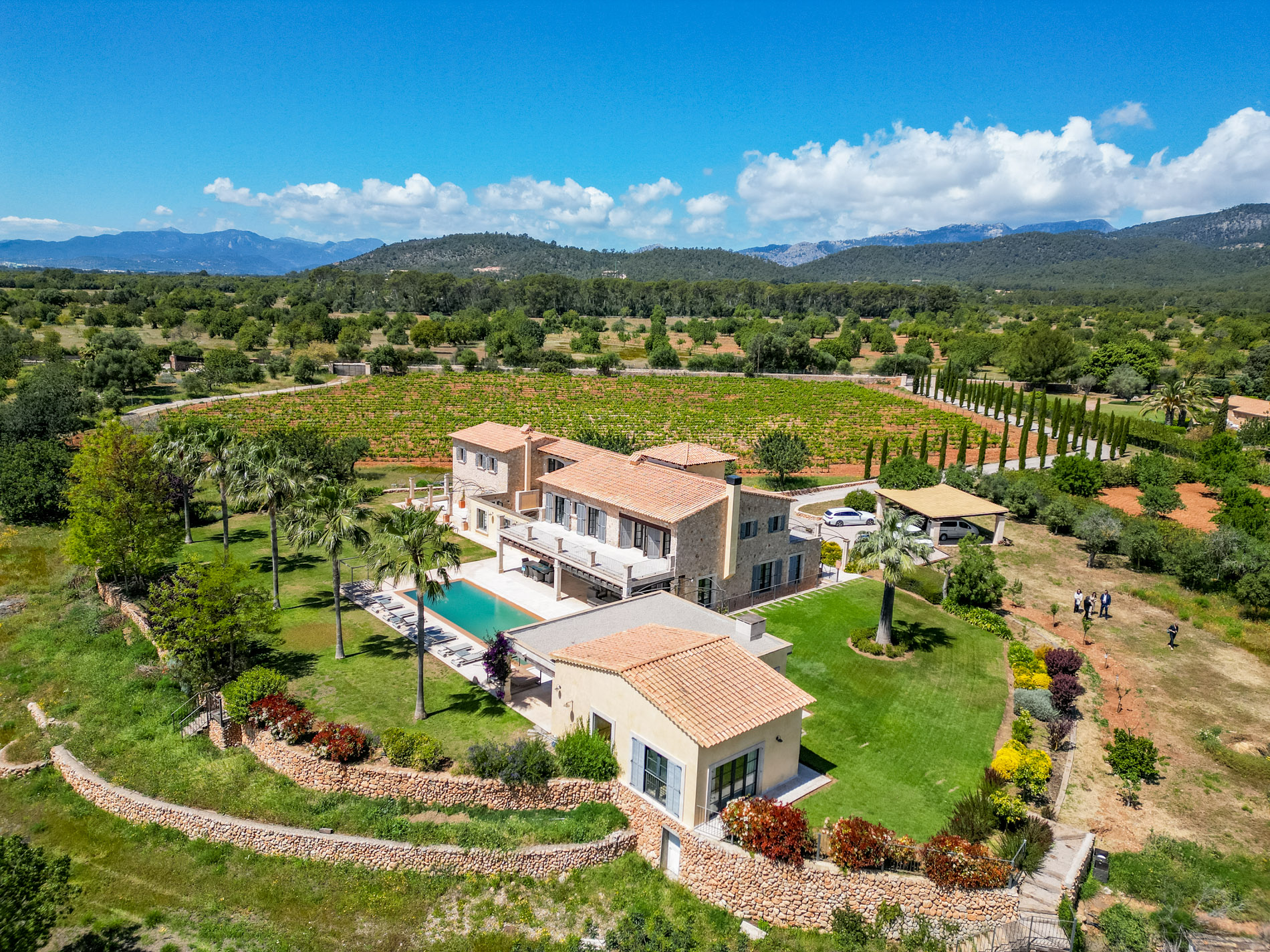Außergewöhnliches Anwesen in ruhiger ländlicher Lage nahe der Stadt Santa María mit 7 Schlafzimmern, 8 Bädern, einem Gästehaus, Weinberg auf einem großen Grundstück von ca. 31.800 m2.Das Haupthaus verfügt über große und helle Räume mit hohen Decken und herrlicher Aussicht; Es gibt eine Eingangshalle, eine Küche mit integrierten Geräten, einer Sitzinsel und einem Essbereich sowie ein gemütliches Wohnzimmer mit viel Platz und einem gemütlichen Kamin. Darüber hinaus gibt es ein Büro und vier Doppelschlafzimmer, darunter das Hauptschlafzimmer mit Ankleidezimmer und eigenem Bad.Der Keller bietet unglaublich luxuriöse Einrichtungen und enthält einen Weinkeller, ein Spielzimmer, eine Sauna und einen exklusiven Kinoraum. Auf dieser Ebene besteht die Möglichkeit, weitere Gästezimmer zu schaffen.Eine Besonderheit ist das Gästehaus, das mit dem Haupthaus verbunden ist und über zwei weitere Schlafzimmer, ein Badezimmer und eine Küche verfügt. Außerdem das Gästeapartment\/Poolhaus, das über ein weiteres Schlafzimmer verfügt.Der Außenbereich ist idyllisch, mit weitläufigen, gepflegten Gärten, vielen Terrassen, einem überdachten Ruhebereich mit Grill, einer beeindruckenden Terrasse, die teilweise für die ganzjährige Nutzung überdacht ist, einem Swimmingpool und einem privaten Weinberg, der von Macià Batle verwaltet wird Holen Sie sich jedes Jahr Wein.