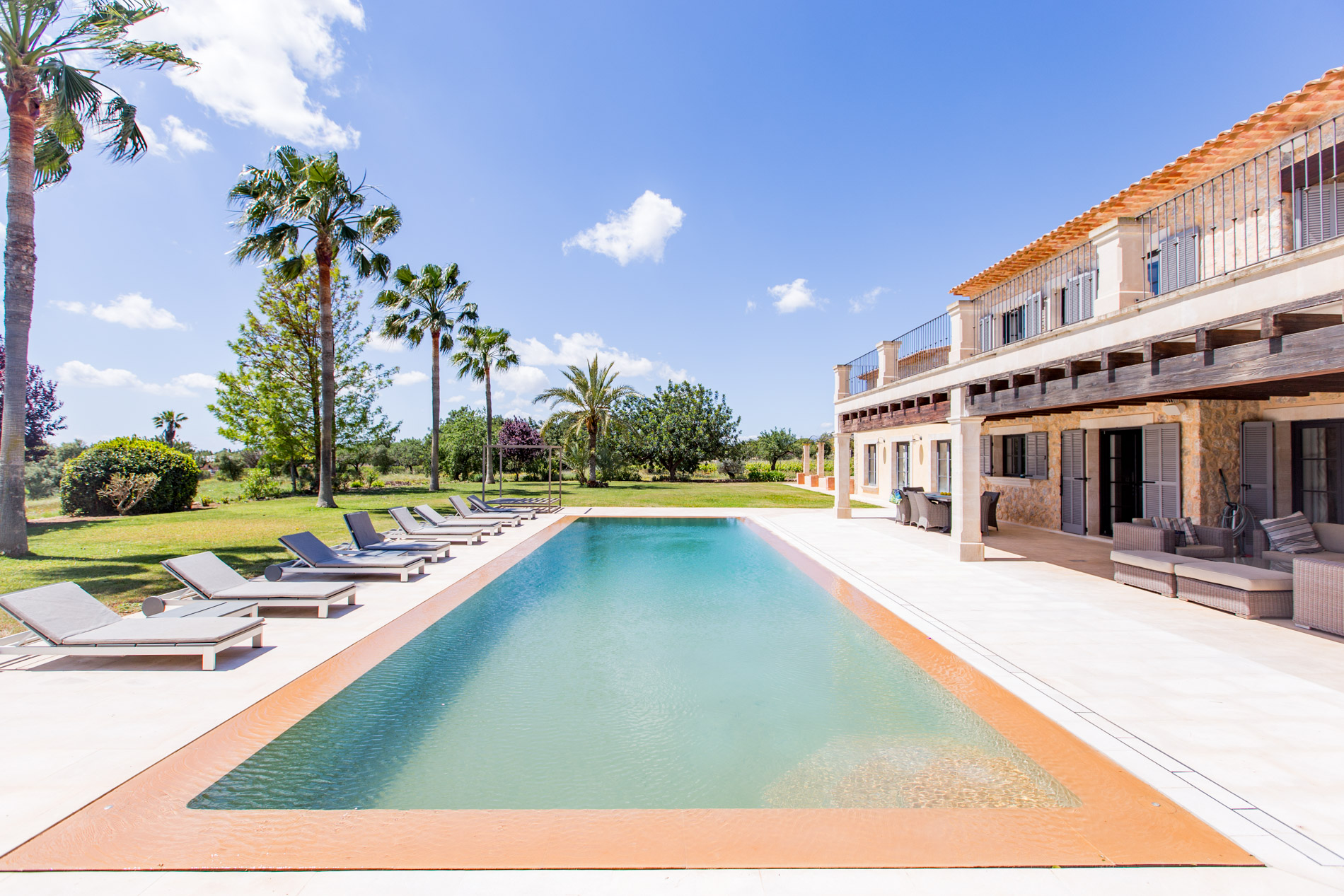 Privater Pool / Garten / Unverbaute Aussicht / Terrasse / Spa / Mit Weinkeller / Klimaanlage / Fußbodenheizung / Kamin / Doppelverglasung / Mallorkische Fensterläden / Kino / Parkplatz / Abstellraum / Waschküche / Sauna
