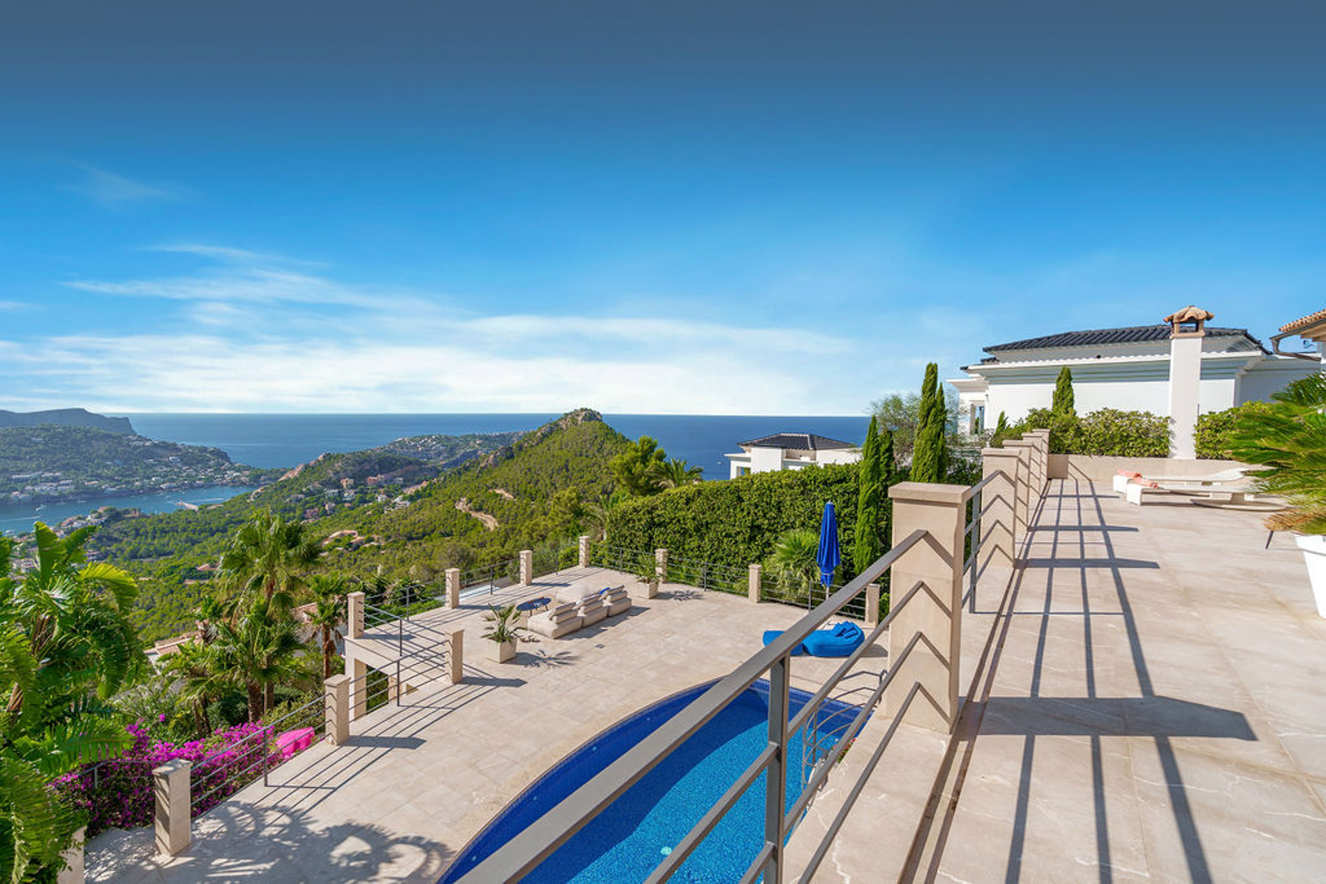 Diese atemberaubende Villa, die 2011 komplett renoviert wurde, befindet sich in einer der begehrtesten Lagen der Urbanisation Montport im charmanten Hafen von Puerto de Andratx. Das Anwesen verfügt über eine erstklassige Lage auf dem höchsten Punkt der Gegend und bietet einen spektakulären Panoramablick über den Hafen und das azurblaue Mittelmeer dahinter.Die weitläufigen 1.600 m2, auf dem sich die Villa befindet, umfasst eine großzügige Wohn- und Nutzfläche von 700 m2. sorgfältig nach den höchsten Standards von Luxus und Qualität gefertigt. Beim Betreten der Villa werden Sie von einem opulenten Wohnbereich begrüßt, der nahtlos vom Inneren zum Äußeren übergeht und natürliches Licht und frische Luft einlädt. Die stilvolle, moderne Einbauküche verfügt über hochmoderne Geräte, während das große Wohnzimmer viel Platz für Entspannung und Unterhaltung bietet. Die Bibliothek und der Innenhof des Anwesens bieten einen ruhigen Zufluchtsort von der Hektik des Alltags.Die Villa besteht aus fünf geräumigen Schlafzimmern, jedes mit eigenem Bad, sowie mehreren zusätzlichen Gästebädern. Die prächtigen Badezimmer bieten einen herrlichen Meerblick und verfügen über luxuriöse Annehmlichkeiten, darunter luxuriöse Badewannen mit Meerblick. Das Anwesen verfügt auch über ein separates Gästehaus, das zusätzliche Unterkünfte für Besucher bietet.Draußen bieten der mediterrane Garten der Villa, riesige sonnenüberflutete Terrassen und ein verführerischer Infinity-Pool den perfekten Rahmen für Entspannung, Erholung und Unterhaltung der Gäste. Die Außenwohnräume sind perfekt nach Süden ausgerichtet und bieten einen atemberaubenden Blick auf den Hafen von Puerto de Andratx und das offene Meer. Die Villa ist mit der neuesten hauseigenen Technologie ausgestattet, einschließlich einer Klimaanlage im gesamten Gebäude, die ein Höchstmaß an Komfort und Bequemlichkeit gewährleistet. Die Villa repräsentiert das ultimative luxuriöse Inselleben und bietet eine einzigartige und unvergleichliche Gelegenheit, eine der Top-Villen im Hafen von Puerto de Andratx zu erwerben.Mallorcasite, Ihre Immobilienagentur auf Mallorca, empfiehlt diese Immobilie aufgrund ihrer Lage, und der hochwertig verwendeten Materialien.Photos by Kristina Müller