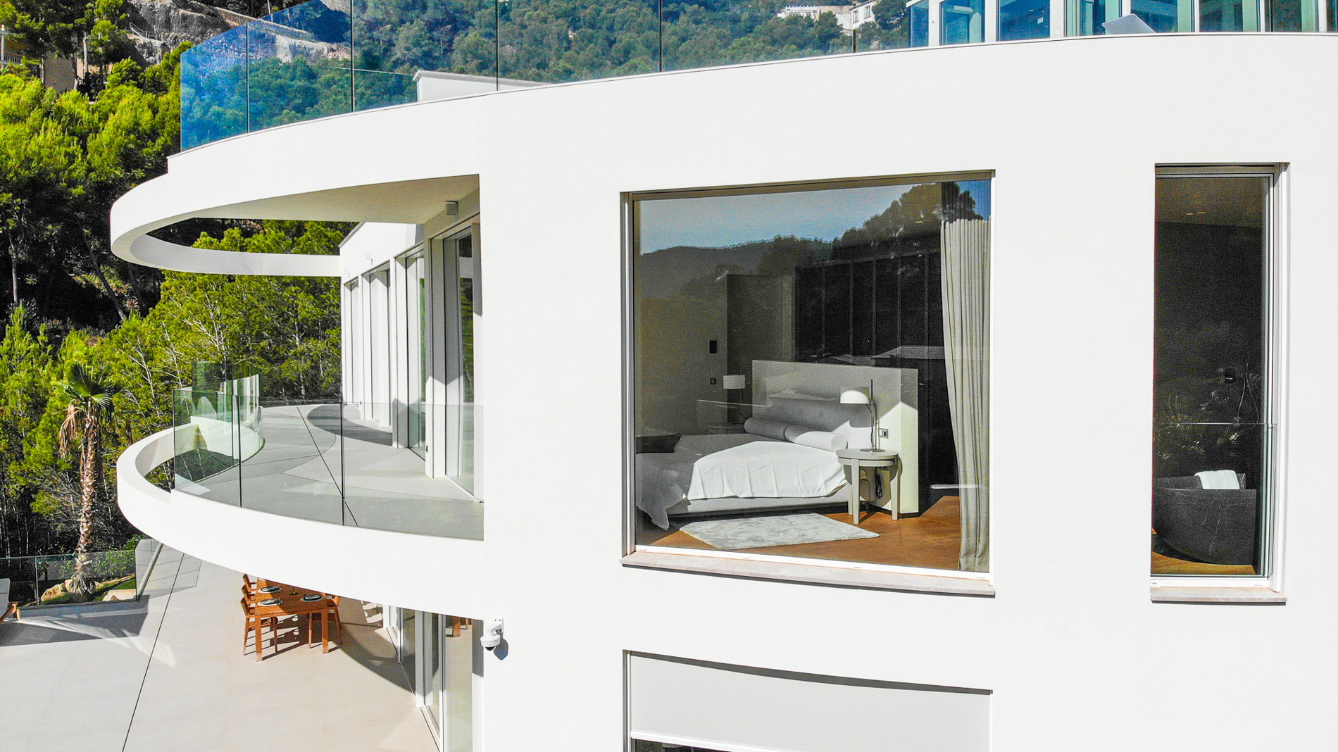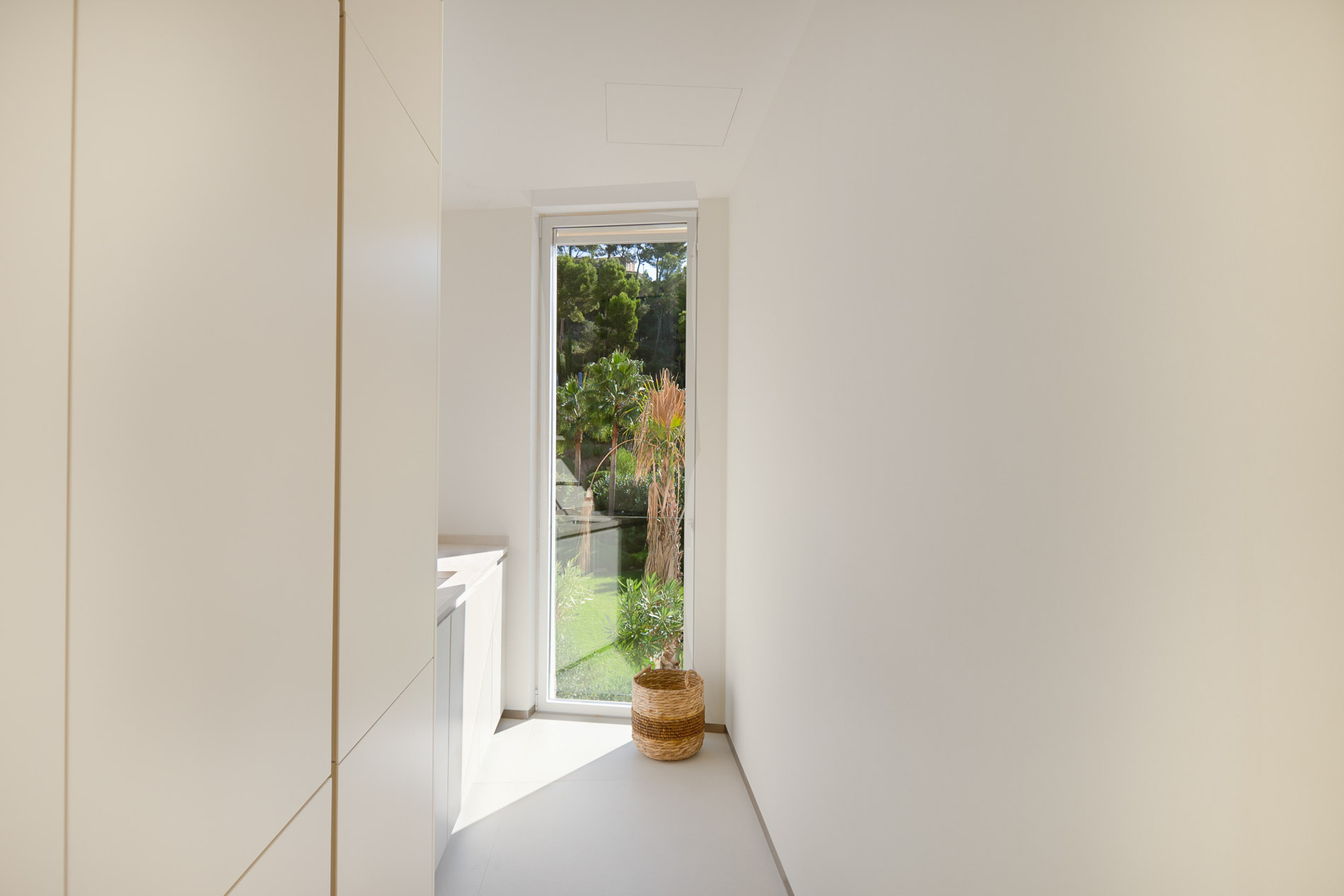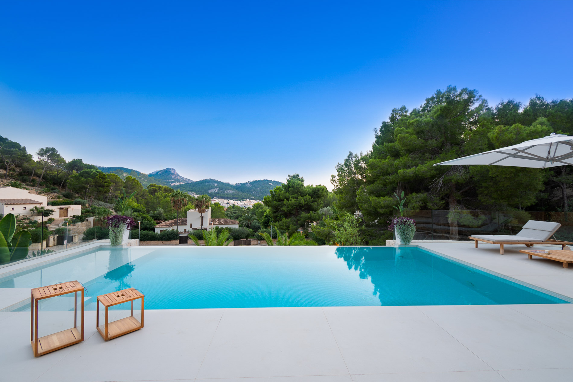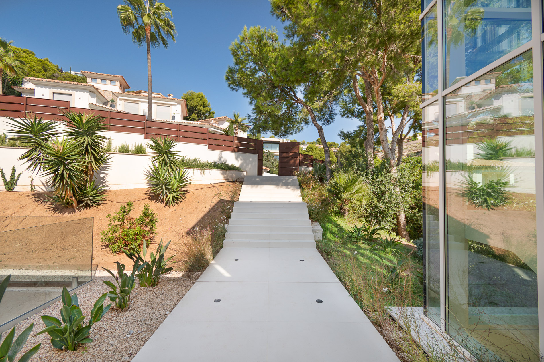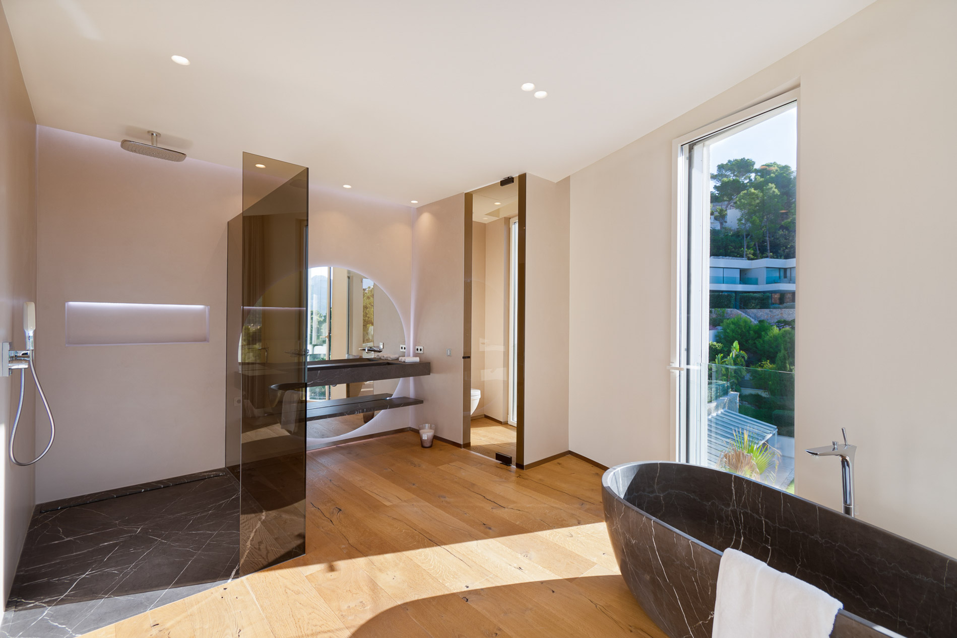 Im Herzen von Puerto de Andratx, Mallorca, steht eine Villa, die über herkömmliche Maßstäbe an Opulenz hinausgeht. Mit einer beeindruckenden Fläche von 791 m² ist diese Residenz ein Beweis für die Zusammenarbeit zwischen einem der renommiertesten Luxus-Innenarchitekturstudios Mallorcas und einer architektonischen Vision. Jede Ecke dieser Villa spiegelt eine tadellose Verschmelzung von zeitgenössischem Design und dem natürlichen Charme des mediterranen Archipels wider.Beim Betreten werden die Besucher von einem großzügigen Wohn- und Essbereich begrüßt, der nahtlos in eine voll ausgestattete „Poliform\/Gaggenau“-Designerküche integriert ist. Dieser sorgfältig gestaltete Raum strahlt eine Atmosphäre moderner Eleganz aus, die durch den kontinuierlichen Fluss natürlichen Lichts noch verstärkt wird. Die Villa verfügt über vier Schlafzimmer, jedes mit eigenem Bad, mit der Option, ein fünftes Schlafzimmer hinzuzufügen.Dieses Anwesen beherbergt eine Reihe außergewöhnlicher Elemente, die ihm ein unvergleichliches Maß an Luxus verleihen. Wenn Sie die weitläufige 141 m² große Terrasse betreten, die Sie durch motorisierte französische Türen vom Wohnzimmer aus erreichen, werden Sie von einem einladenden Salzwasser-Infinity-Pool begrüßt. Die Terrasse dient als Zufluchtsort zum Sonnenbaden, zur Bewirtung von Gästen oder einfach zum Genießen der bezaubernden Aussicht auf die mediterrane Landschaft. Für diejenigen, die einen noch höheren Aussichtspunkt suchen, führt ein gläserner Aufzug auf die Dachterrasse, wo sich ein eleganter Ruhebereich befindet. Unter dem weiten Himmel Mallorcas können sich die Bewohner an einer ungehinderten Aussicht erfreuen, die bis zum Horizont reicht.Fotos LovaDesignStudio