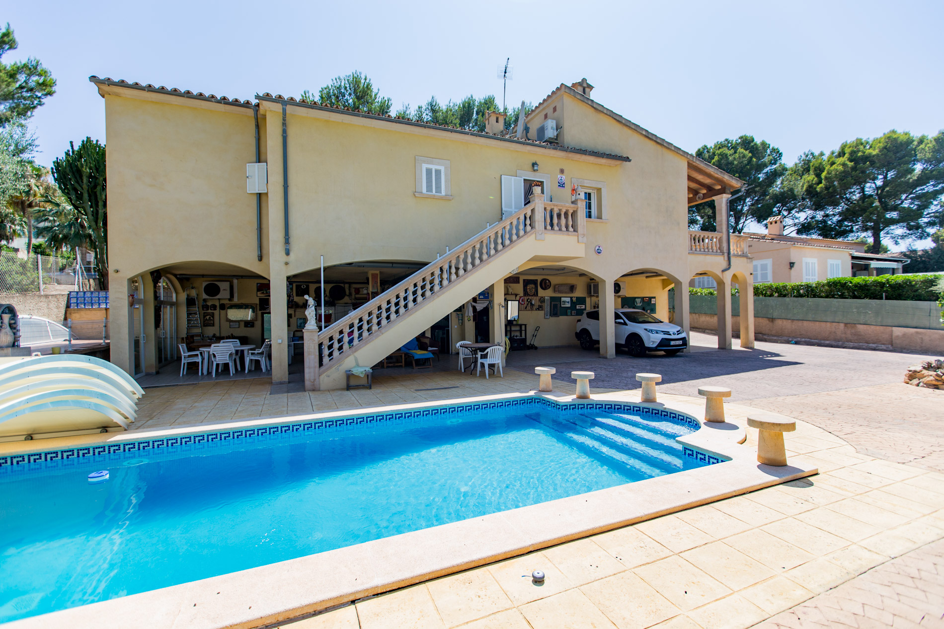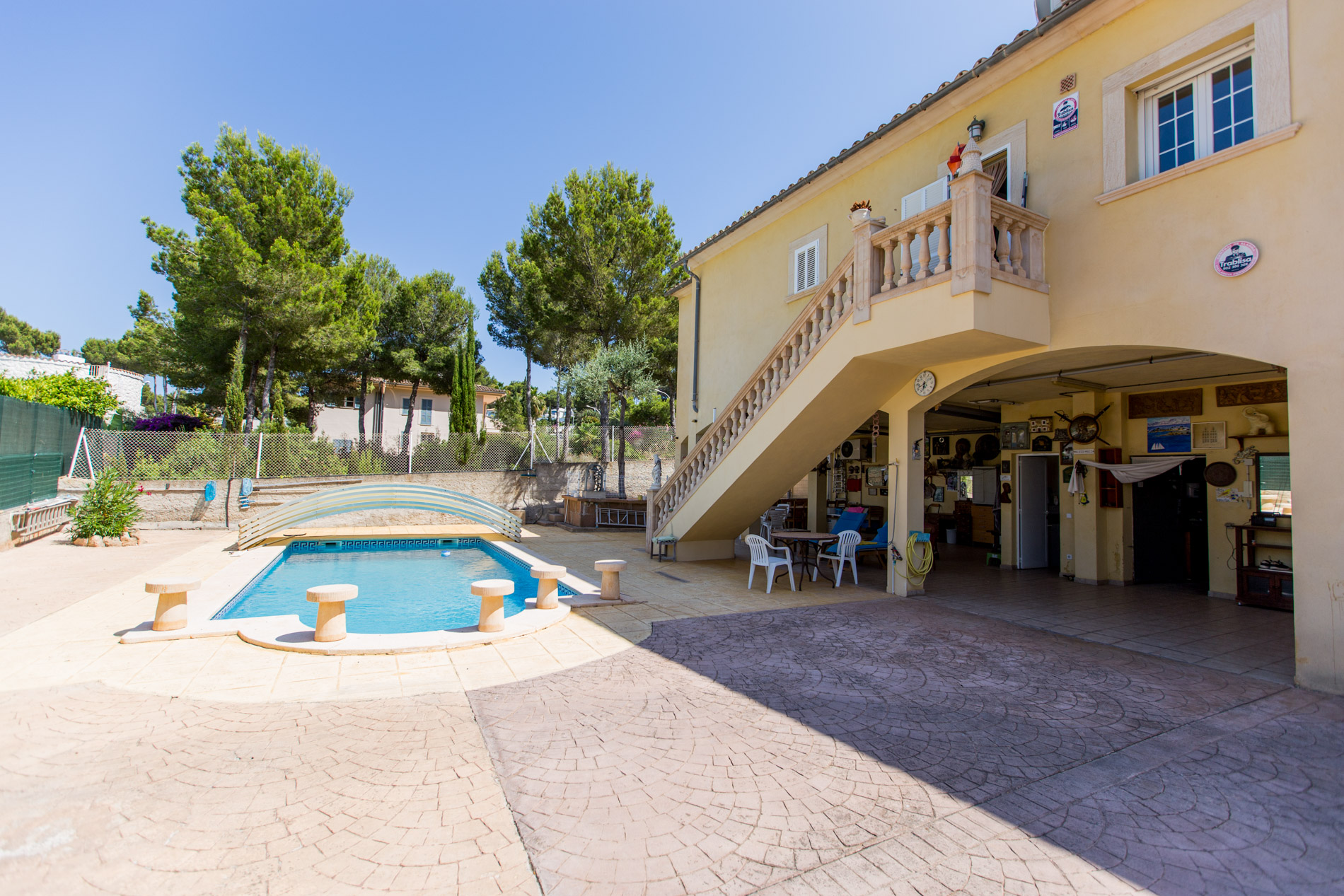 Privater Pool / Garten / Unverbaute Aussicht / Terrasse / Abstellraum / Waschküche / Renovierungsbedürftig / Klimaanlage / Doppelverglasung / Mallorkische Fensterläden / Parkplatz / Betonböden
