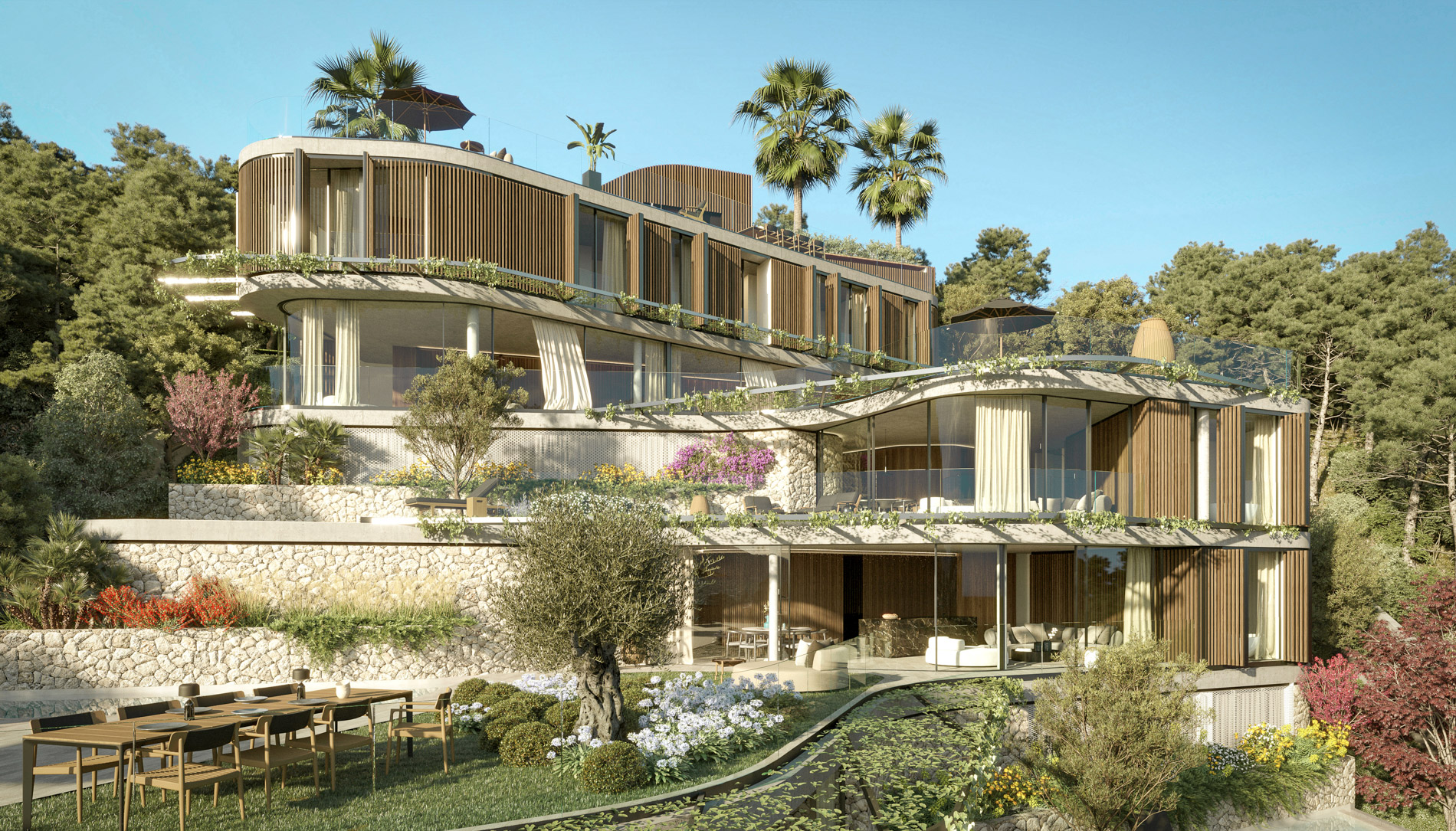 In die grünen Hügel oberhalb von Port d’Andratx eingebettet, bietet diese außergewöhnliche Gartenwohnung ein ruhiges Refugium, das Design und Natur harmonisch vereint. Als Teil einer exklusiven Kollektion von nur neun architektonisch gestalteten Residenzen eröffnet sie die seltene Möglichkeit, großzügige Privatgärten und ein Leben im Freien zu genießen – an einem Ort, der sich abgeschieden anfühlt und dennoch nur wenige Minuten vom bekanntesten Yachthafen Mallorcas entfernt liegt.