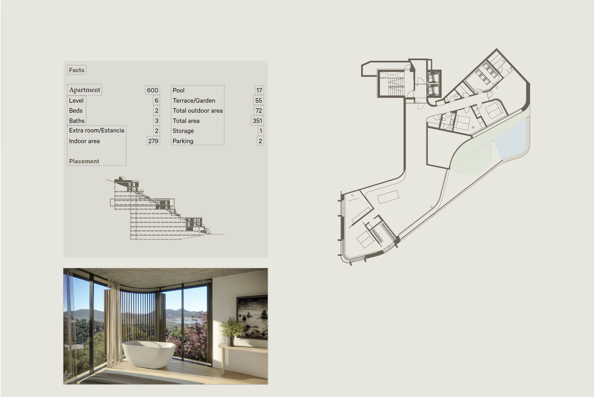 In einem erhöht gelegenen Rückzugsort oberhalb des berühmten Hafens von Port d’Andratx gelegen, bietet diese stilvolle Residenz ein ruhiges Wohnerlebnis – ideal für Menschen, die Privatsphäre, moderne Architektur und eine malerische Umgebung zu schätzen wissen. Als Teil einer exklusiven Kollektion von nur neun einzigartigen Wohneinheiten ist sie die perfekte Wahl für Paare oder Einzelpersonen, die Komfort, Qualität und mediterrane Gelassenheit suchen.Diese Wohnung verfügt über ca. 243 m² Wohnfläche, verteilt auf helle, klar strukturierte Räume. Der Außenbereich umfasst eine private Terrasse mit Garten von 77 m²sowie einen 19 m² großen Pool, der zum Zentrum für sonnige Entspannung oder stilvolle Abende im Freien wird – mit dem sanften Licht der Insel als Kulisse.Durchdachte Raumaufteilung & edles DesignZwei großzügige Schlafzimmer mit jeweils eigenem Bad en suite bieten persönliche Rückzugsmöglichkeiten und Ruhe. Der offene Grundriss verbindet Küche, Ess- und Wohnbereich zu einem zentralen Raum, der sowohl zum Entspannen als auch zum geselligen Beisammensein einlädt.Bodentiefe Fenster sorgen für viel Tageslicht und lassen Innen- und Außenbereiche nahtlos ineinander übergehen. Jedes Detail wurde mit Sorgfalt ausgewählt: von erstklassigen Geräten von Gaggenau, Miele und Bora, über maßgefertigte Einbauschränke bis hin zu hochwertigen Materialien und cleveren Stauraumlösungen, die Stil und Funktion perfekt vereinen.Für ganzjährigen Komfort sorgen Fußbodenheizung, zentrale Klimaanlageund drei überdachte Stellplätze, alle mit Ladestationen für Elektrofahrzeuge – eine zukunftsorientierte Kombination aus Komfort und Nachhaltigkeit.Dezenter Luxus in mediterranem RahmenDie Gestaltung der Wohnung folgt einem klaren, modernen Stil, der durch natürliche Materialien wie warmes Holz, edlen Stein und sanfte Erdtöne eine wohnliche Atmosphäre schafft. Die Außenbereiche spiegeln die ruhige Innenwelt wider und verbinden Architektur und Landschaft auf harmonische Weise.Dank ihrer Ausrichtung und Höhenlage genießt die Wohnung einen weiten Blick über Hügel, Hafen und das offene Meer – mit spektakulären Sonnenuntergängen, die zu den schönsten der Insel zählen.Lage mit Balance zwischen Ruhe & LifestyleNur wenige Minuten oberhalb des Hafens gelegen, bietet dieses Zuhause absolute Ruhe und Privatsphäre – ohne auf die Annehmlichkeiten des urbanen Lebens verzichten zu müssen. Die besten Seiten von Port d’Andratx—Gourmetrestaurants, edle Boutiquen und die lebendige Marina—sind schnell erreichbar. Auch Naturfreunde kommen auf ihre Kosten: mit Wanderwegen, Radrouten und Golfplätzen ganz in der Nähe.MallorcaSite, Ihre Immobilienagentur auf Mallorca, empfiehlt diese Immobilie wegen ihrer eleganten Raumaufteilung, der ruhigen Lage und der perfekten Verbindung von Innen- und Außenleben.