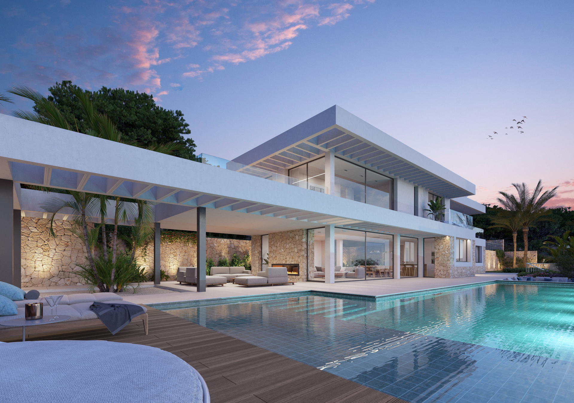 Garten / Unverbaute Aussicht / Terrasse / Spa / Fitnessraum / Klimaanlage / Fußbodenheizung / Kamin / Doppelverglasung / Garage / Parkplatz / Hausautomation / Abstellraum / Waschküche / Natursteinböden
