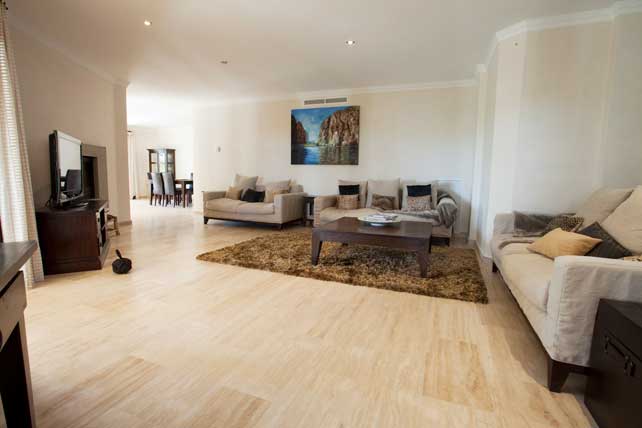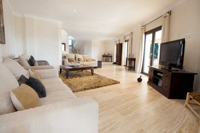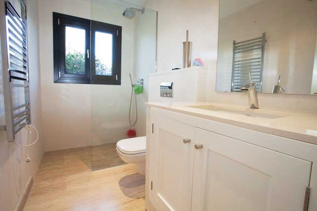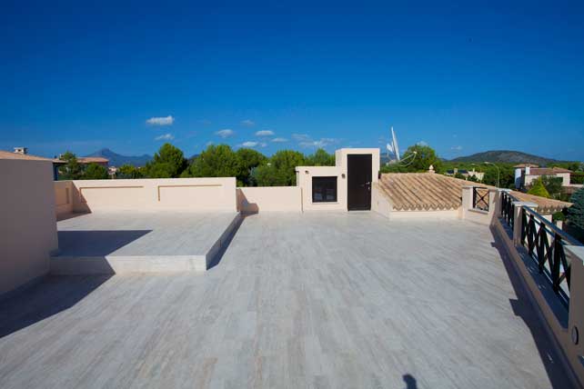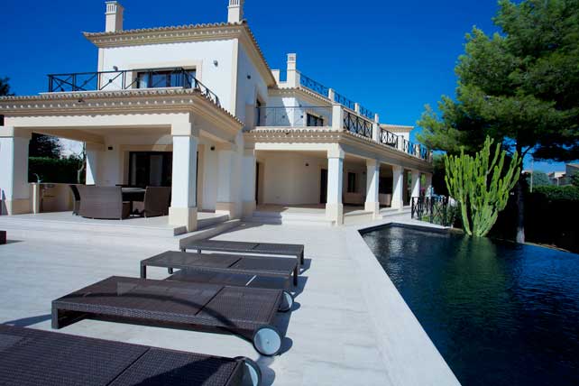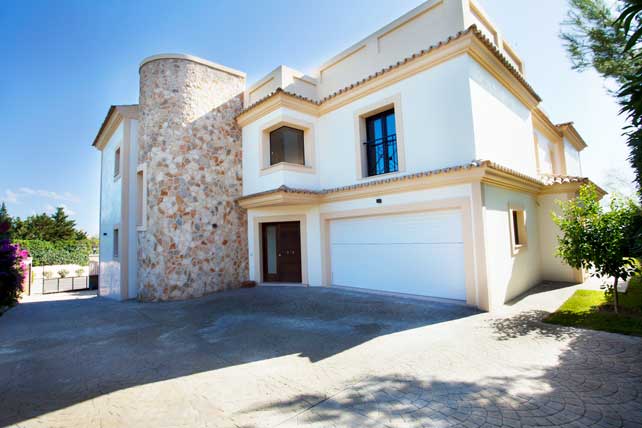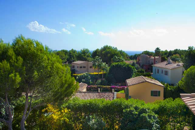 This is a beautiful villa in one of the best areas of Santa Ponsa with views to the golf course and partial sea views. The property has been built with high quality materials, large spaces and large windows. Located in a quiet residential houses near the golf courses of Santa Ponsa, the yacht club and the recently opened Port Adriano. On the ground floor is a large hall which gives access to a large living room with fireplace, large fitted kitchen with utility room and access to the garage. Across the hall there is 1 bedroom and 1 bathroom. Both from the living room and from the kitchen leads to a large porch with access to the garden and heated pool. On the first floor are 4 bedrooms and 3 bathrooms. The master bedroom has en suite bathroom and dressing room. On this floor there is a spacious terrace. There is a large roof terrace with sea, golf and mountains. MallorcaSite, your real estate agency in Mallorca, recommends this property because it is located in a quiet residential area, having beautiful views, being built with high quality materials, by wide spaces.
