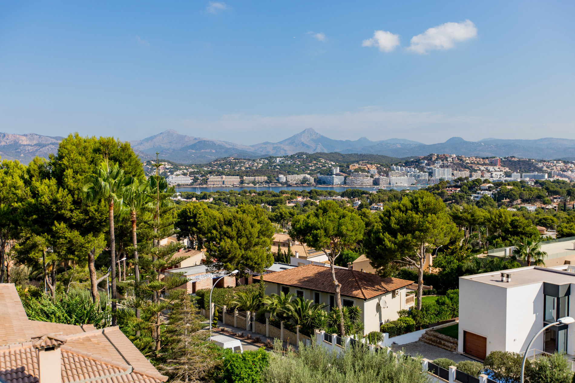 Newly built villa in an elevated position and in a quiet area in Ensaimada in Nova Santa Ponsa. The property offers a constructed area of 372 m² including 60 m² of covered terraces.On the entrance floor there are 3 generous bedrooms, each with its bathroom en suite, and the master suite has a dressing room. All bedrooms have access to a sun terrace with pool. The first floor consists of a bright open plan living room with dining room and a modern and elegant luxury kitchen. Large sliding doors lead to a terrace from which you can enjoy the fantastic view over the bay of Santa Ponsa.MallorcaSite, your real estate agency recommends this property for being in a quiet area, for its views and for being of new construction.