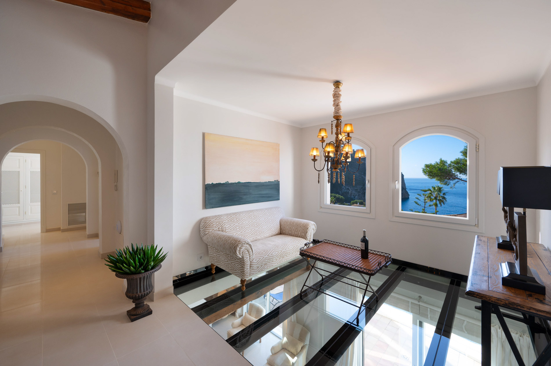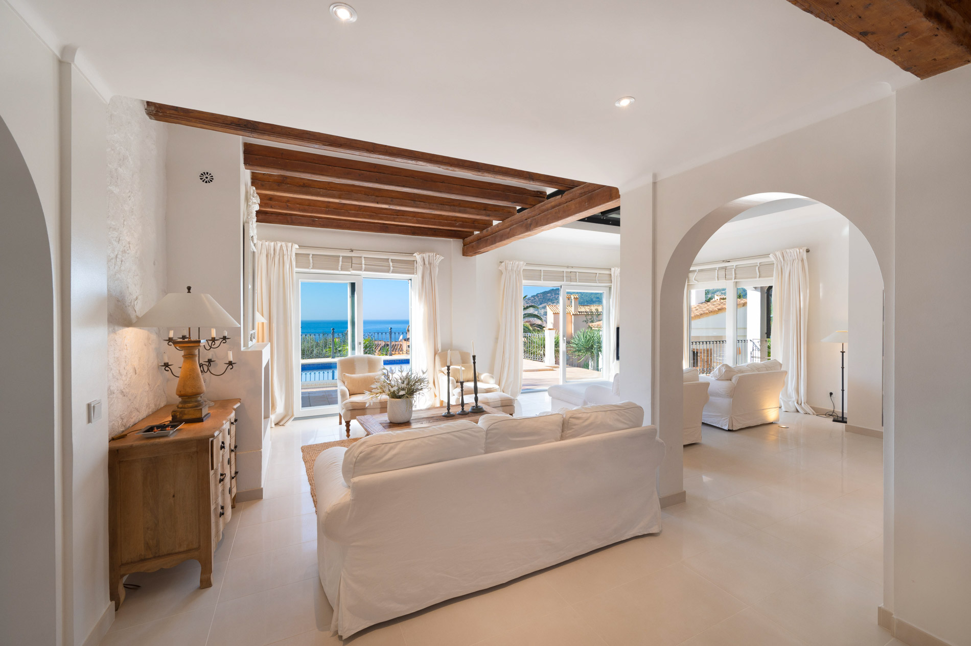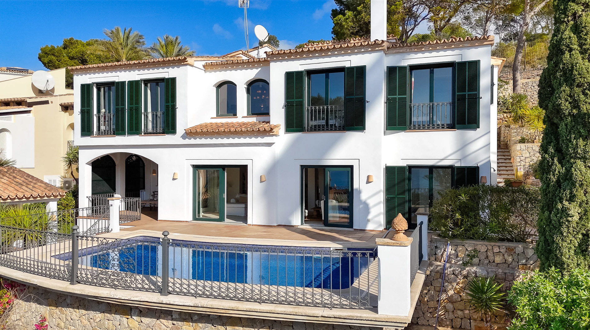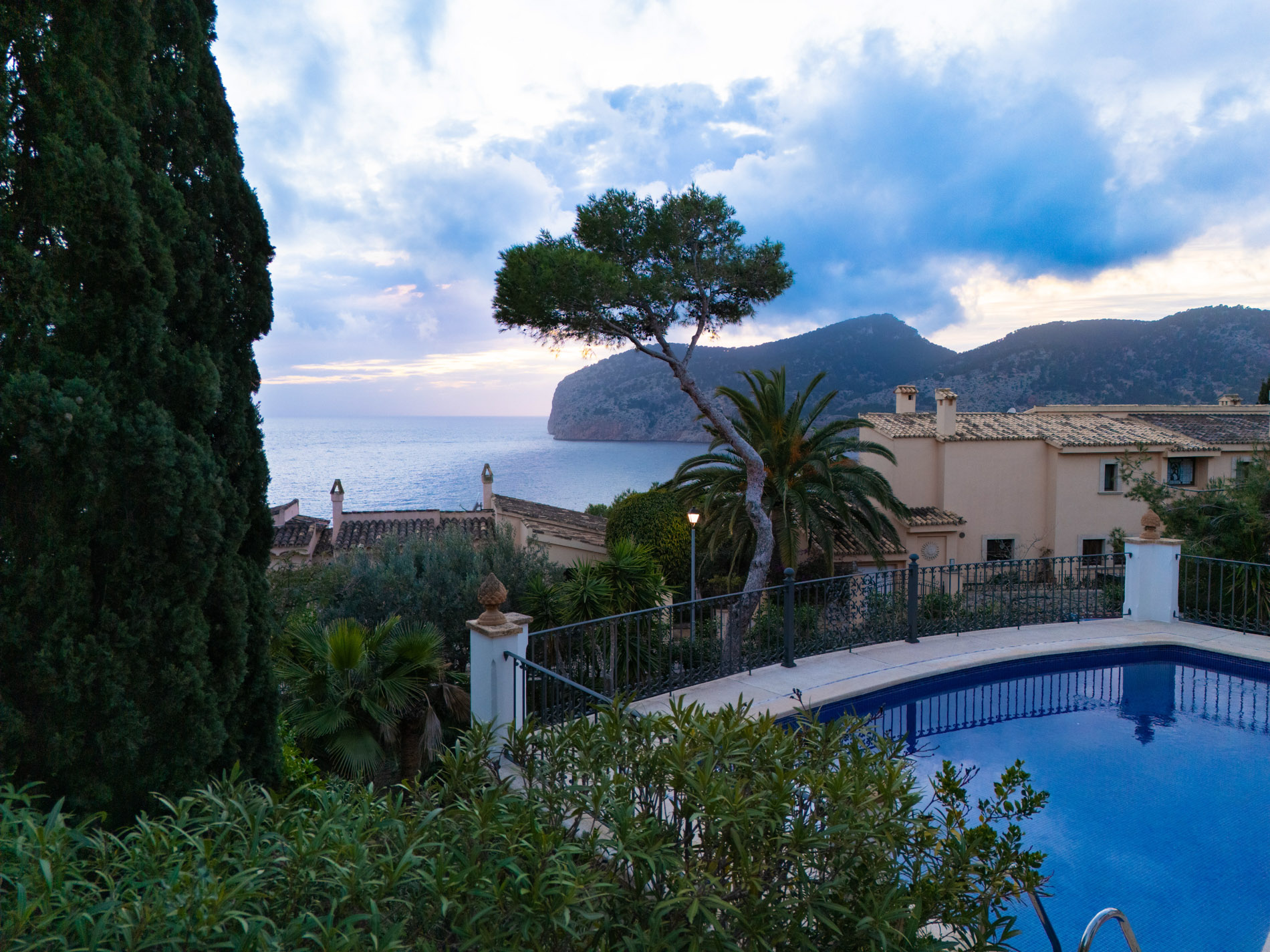 Perched in an exclusive southwest-facing location, this stunning villa boasts breathtaking views over the bay of Camp de Mar. Nestled in a quiet and privileged neighborhood, it is an ideal setting for families seeking a prime residential area with both privacy and prestige. Offering a total living space of 353 m² on a low-maintenance 845 m² plot, the property combines elegance with comfort.The villa features high-end furnishings and was partially renovated a few years ago, ensuring a refined living experience. Additionally, it comes with a new-build luxury project, presenting an exciting opportunity for customization. Large windows and spacious terraces allow natural light to flood the interiors, enhancing the seamless connection between indoor and outdoor living.From its expansive outdoor areas, residents can soak in the panoramic sea views, where the turquoise waters of Camp de Mar create an ever-changing, picturesque backdrop. The property’s elevated position ensures an unparalleled sense of tranquility, while still being within easy reach of the area's renowned golf courses, fine dining restaurants, and pristine sandy beaches. Whether as a permanent residence or a holiday retreat, this villa offers a unique blend of sophistication, comfort, and Mediterranean charm.MallorcaSite, your real estate agency in Mallorca, recommends this property for it's views, it's privacy and location.Fotos by LOVADESIGNSTUDIO