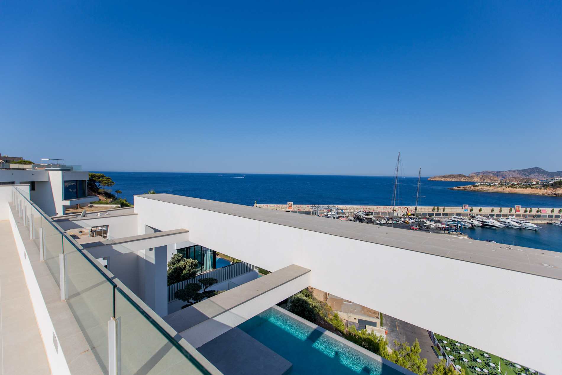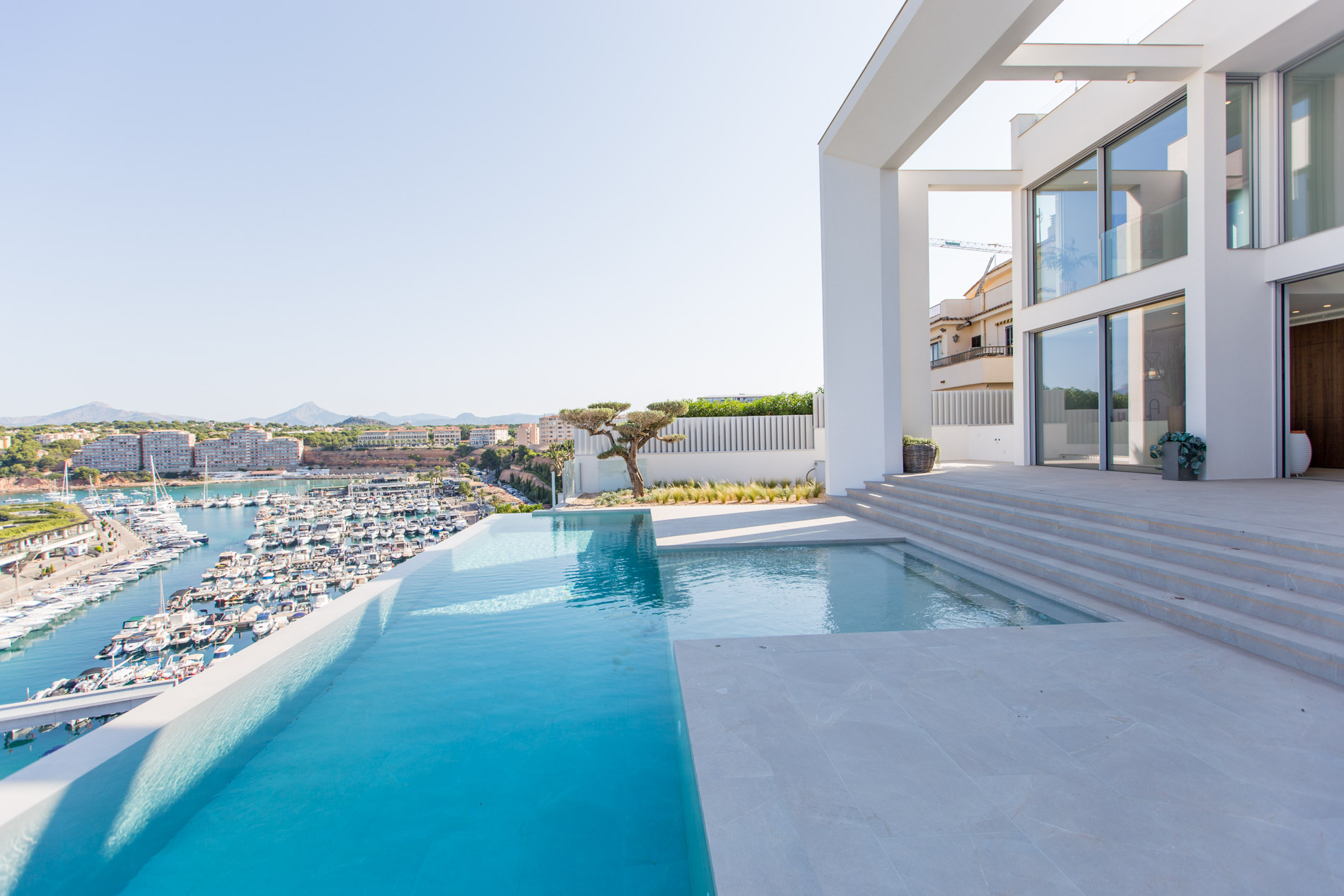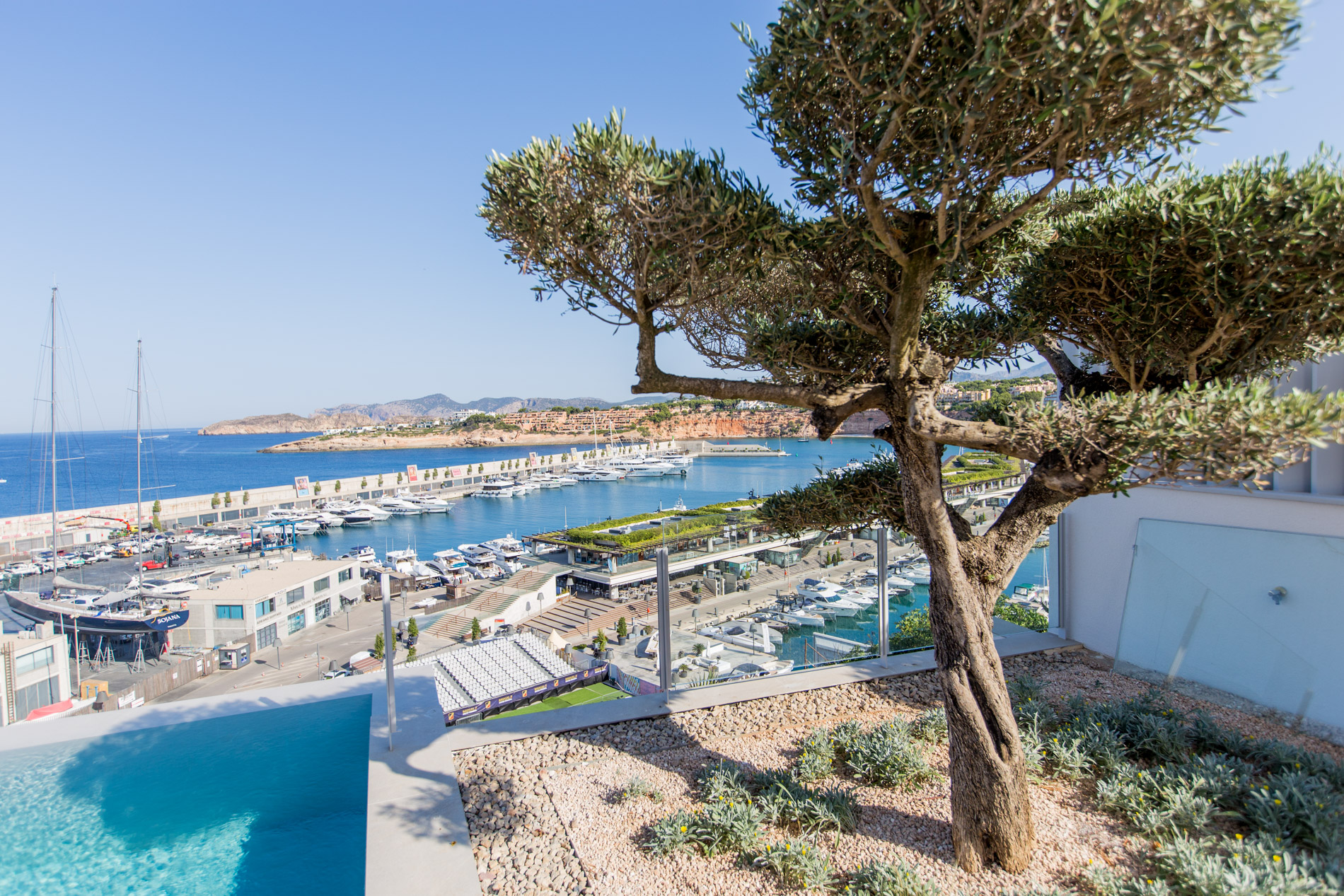 Designer villa in a privileged location above the port of Port Adriano, with unobstructed views of the sea, the port and the coast of Nova Santa Ponsa.