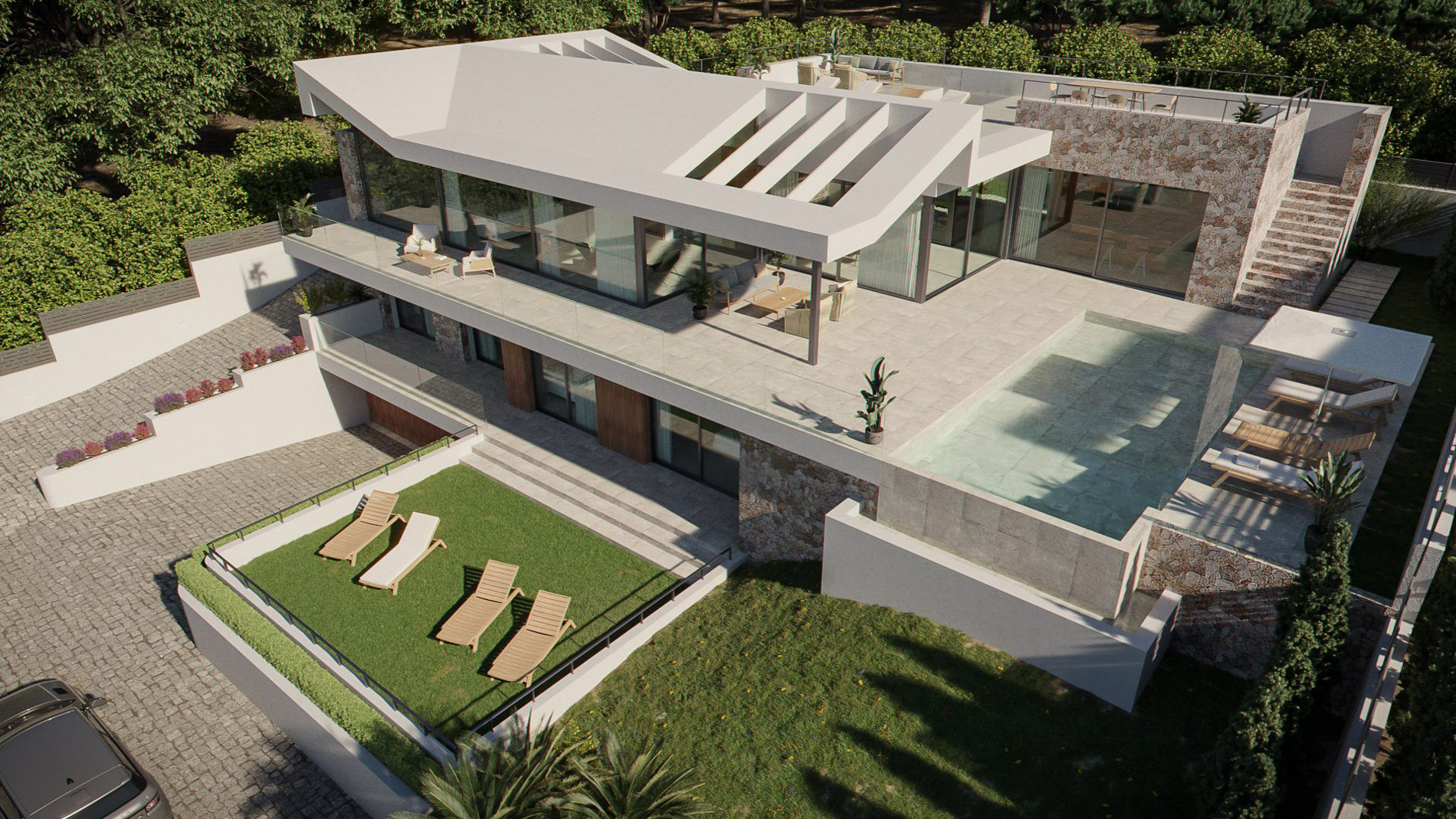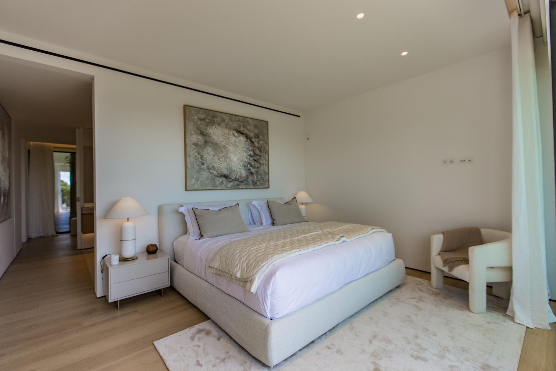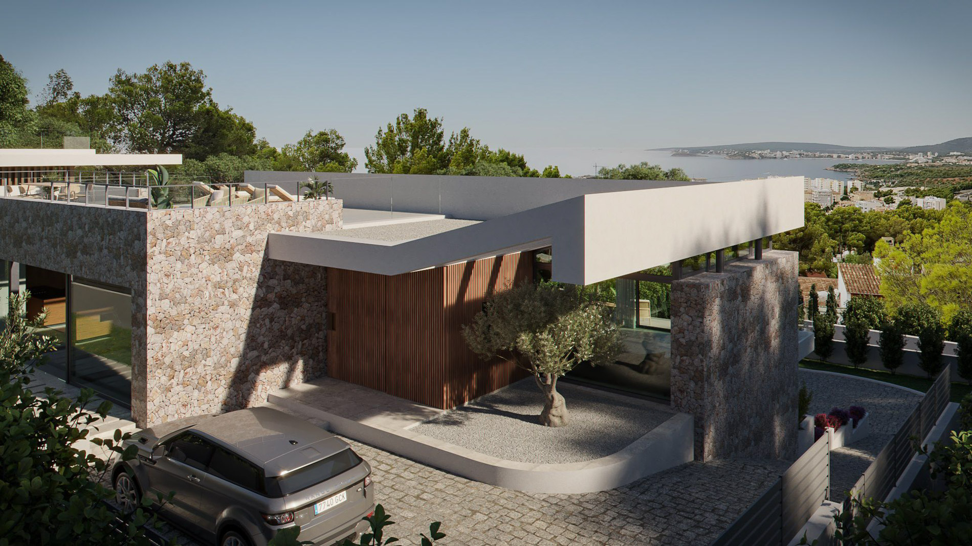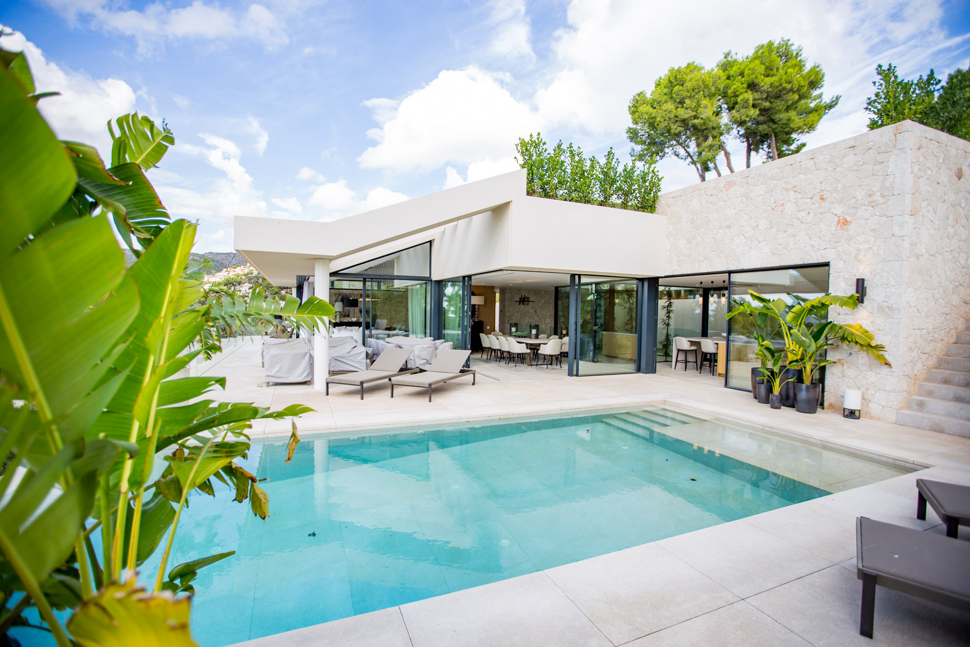Located in the southwest of Mallorca, in the sought-after area of Puerto Portals, this villa is just steps away from the beach, restaurants, supermarkets, and prestigious international schools. Additionally, it is only 5 minutes from an exclusive golf course and the iconic Puerto Portals marina, where the sophistication of luxury yachts and exclusive boutiques contrasts with the natural serenity of the surroundings.Designed by a renowned architect, the villa stands out for its prime location in one of the island's most exclusive areas. For those seeking peace and relaxation, the nearby coves, such as Cala Bendinat, surrounded by lush Mediterranean pine forests, offer the perfect retreat.The villa perfectly combines traditional Mallorcan architecture with cutting-edge technology, creating a unique style that sets it apart from other luxury properties. The four bedrooms, all on the ground floor, feature en-suite bathrooms and carefully crafted details. Smart home technology and a sophisticated energy system, including solar panels and aerothermal technology, ensure maximum comfort to enjoy every moment in this extraordinary place.The upper floor reveals a beautiful central patio that connects all levels of the home, surrounded by a spacious kitchen with an island, a large dining area, and an elegant living room. Each of these areas opens onto a large terrace with a pool, offering the ideal space for relaxation and outdoor entertainment.The property also boasts a generous basement with a garage, a laundry area, and a spacious solarium terrace with an outdoor kitchen, perfect for enjoying dinners under the stars.The interior design reflects the majesty of the marine surroundings, with floor-to-ceiling panoramic windows, clean lines, and natural elements of wood and stone, creating a warm and sophisticated atmosphere.The meticulously designed Mediterranean garden integrates a selection of plants that accentuate the villa’s unique lifestyle. The entire setting invites relaxation and enjoyment of outdoor living in an idyllic environment.MallorcaSite, your trusted real estate agency, recommends this property for its high-quality finishes, unmatched views, and luxurious amenities that make it a true gem in the heart of the Mediterranean.