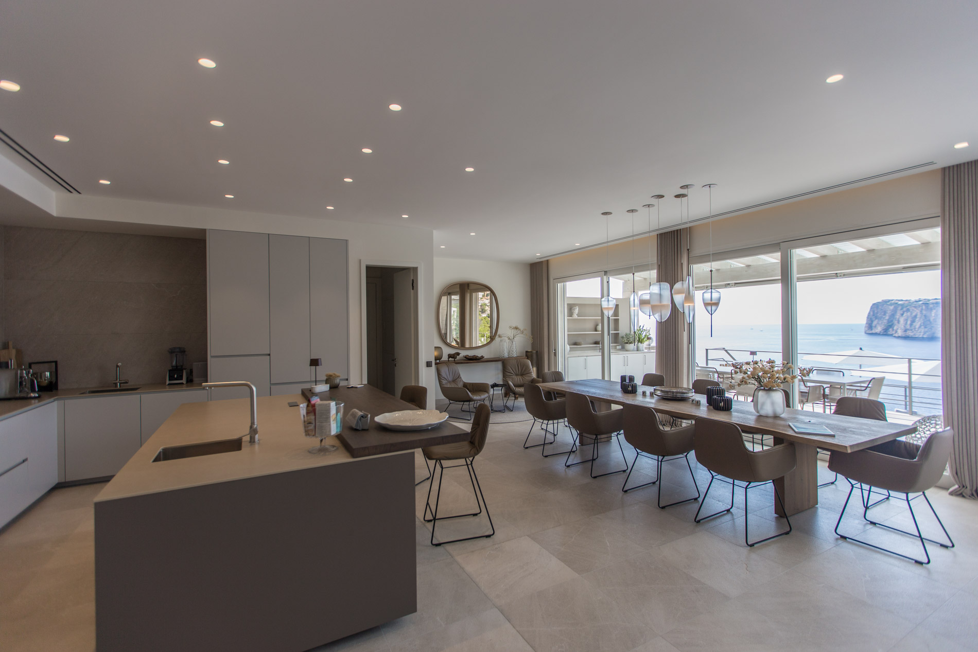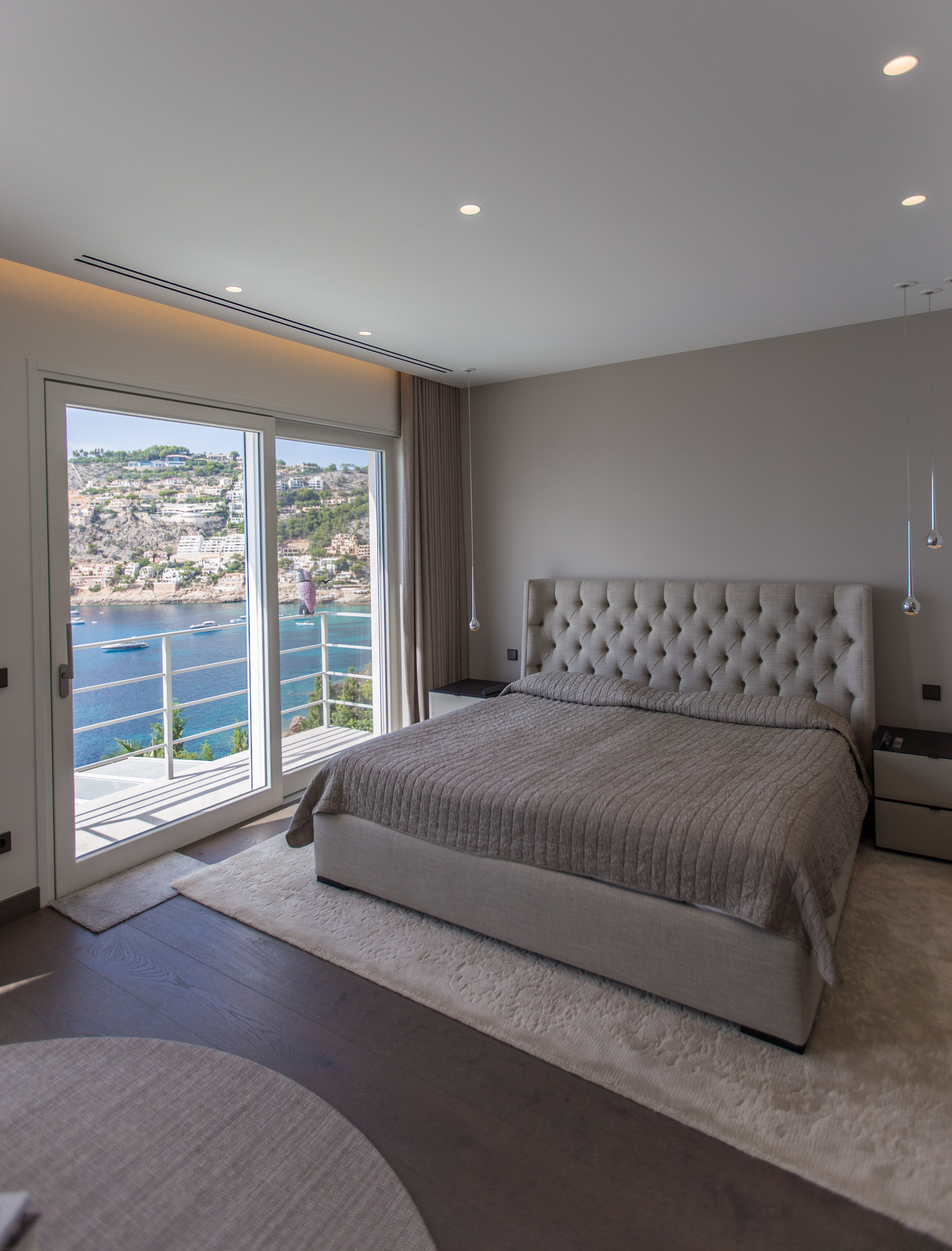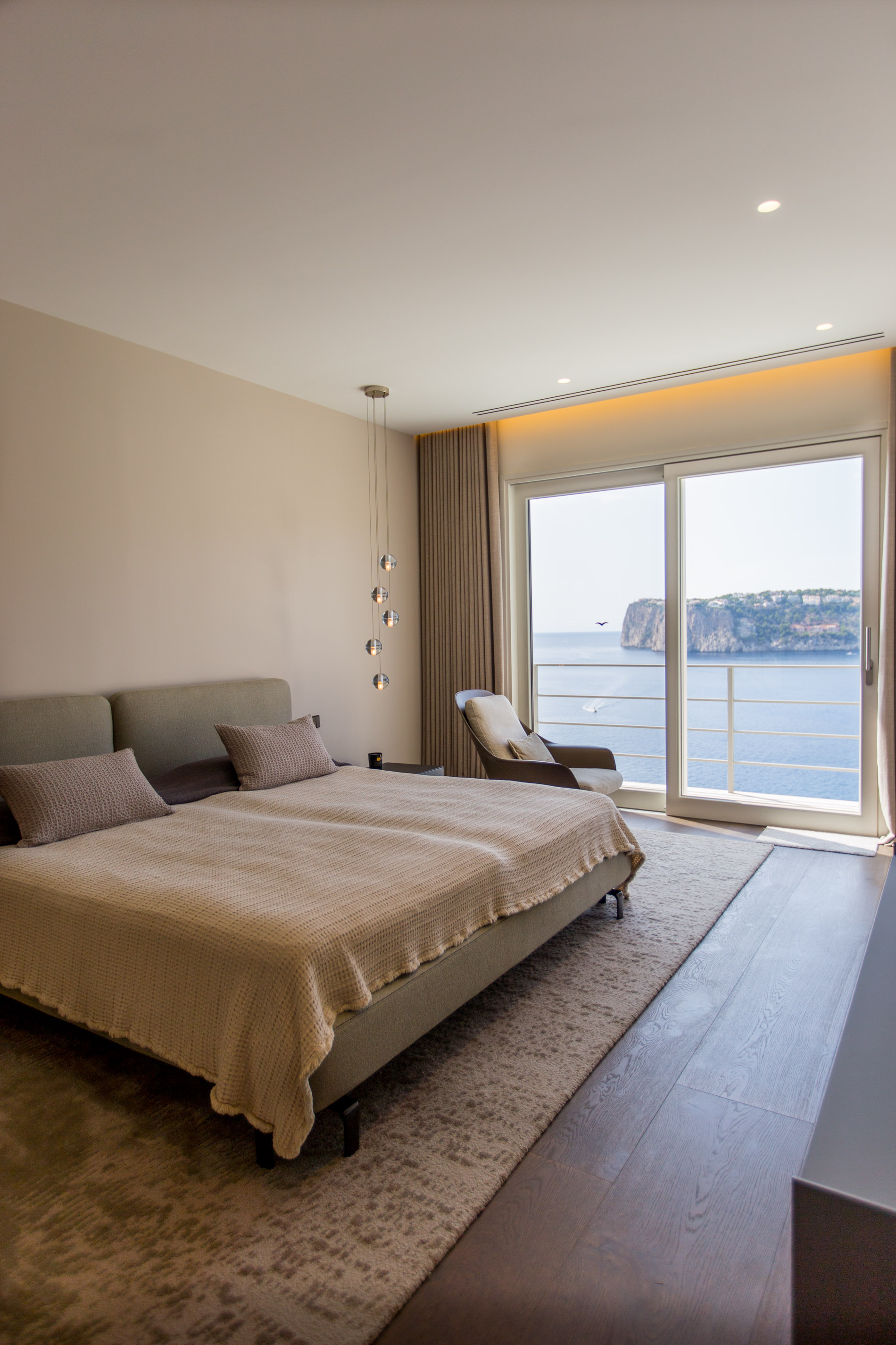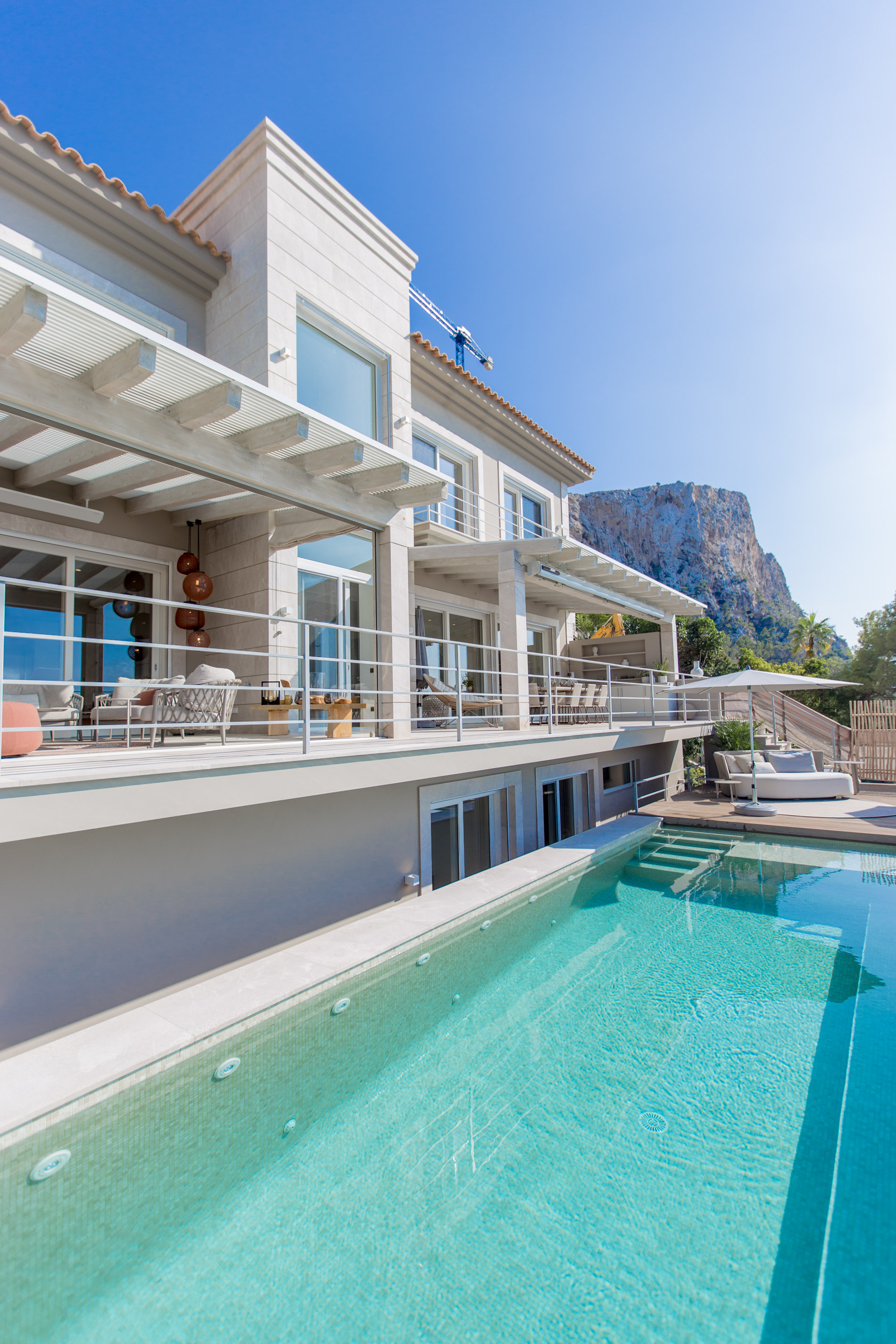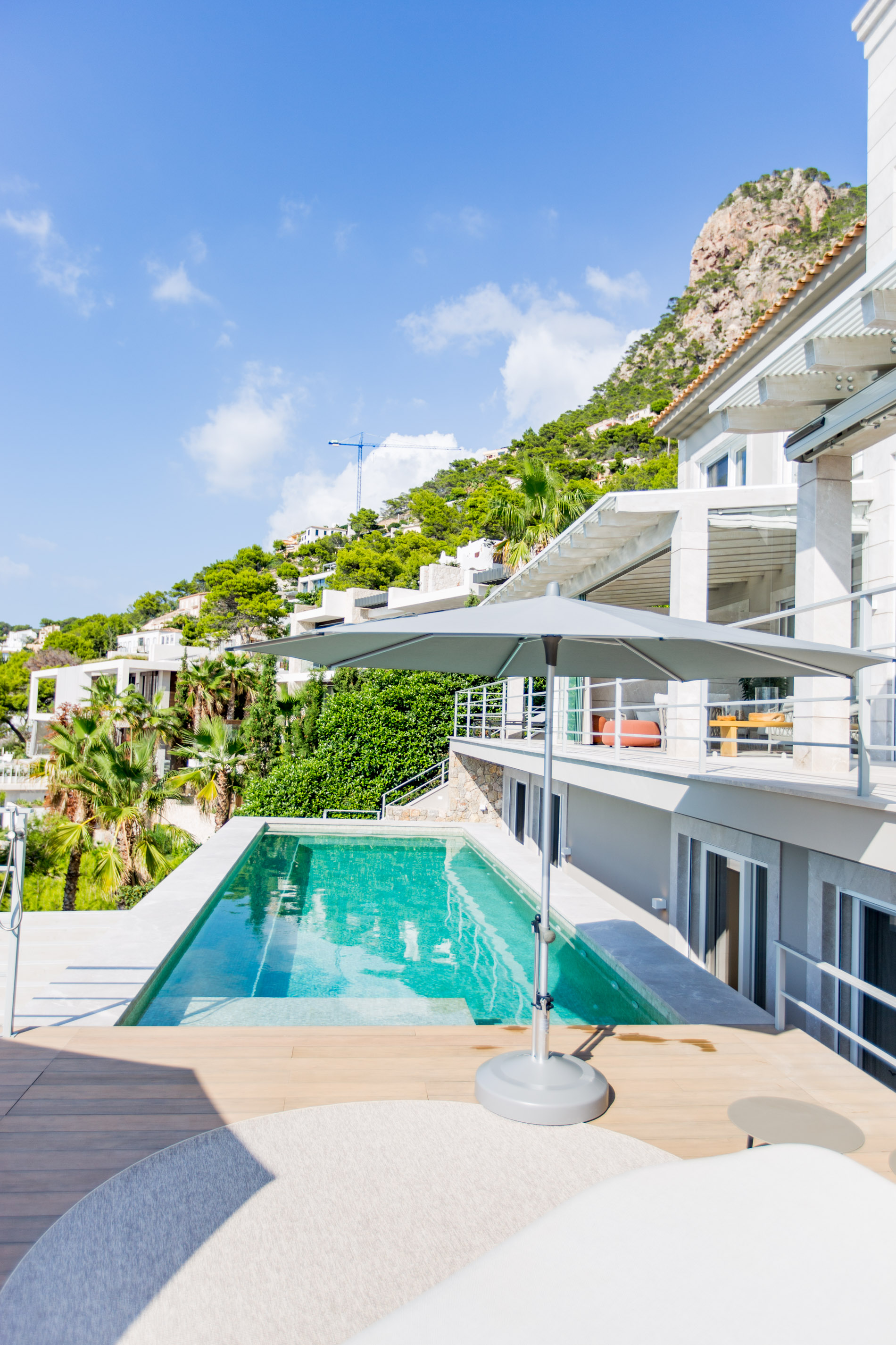 Exploring Elegance in Port d'Andratx: A Dream VillaLocated in one of the most stunning locations in Port d'Andratx, this property dazzles with its incomparable luxury and breathtaking panoramic views. From majestic ocean views to surrounding mountains and postcard-perfect sunsets, this villa offers a dream lifestyle.The villa, which extends over three levels, covers a generous constructed area of 810 square metres. Upstairs, two large master bedrooms with en-suite bathrooms and walk-in closets offer privacy and comfort. A third bedroom with a shower room completes this floor, guaranteeing space for the entire family or guests.On the ground floor, a spacious and exclusive kitchen merges harmoniously with an elegant living room, creating the perfect setting for modern living. A separate bedroom with en-suite bathroom and private terrace adds a touch of extra privacy and comfort.From the kitchen and living room, there is direct access to terraces that surround the pool area. Here, residents can relax and enjoy unrivaled panoramic views of the sea, creating the perfect setting for outdoor gatherings and entertaining.The basement of the villa houses two additional bedrooms, a bathroom and an additional living room with its own private terrace. Additionally, a spacious, fully equipped gym room provides the opportunity to stay active and fit without leaving home.A standout feature of this property is its separate sauna deck, offering the possibility of a relaxing sauna session with sea views, a truly unique experience.High-quality materials such as natural stone and oak parquet give the villa a warm and welcoming feel. Exclusivity and quality are elevated even further with premium furniture from brands such as January, B&B Italia, Flexform, Freifrau, Poliform, Minotti and Tribu.In short, this property in Port d'Andratx is a masterpiece of luxury and design, where elegance is combined with stunning views to create an exceptional lifestyle on the beautiful coast of Mallorca. It is an invitation to live life to its fullest.