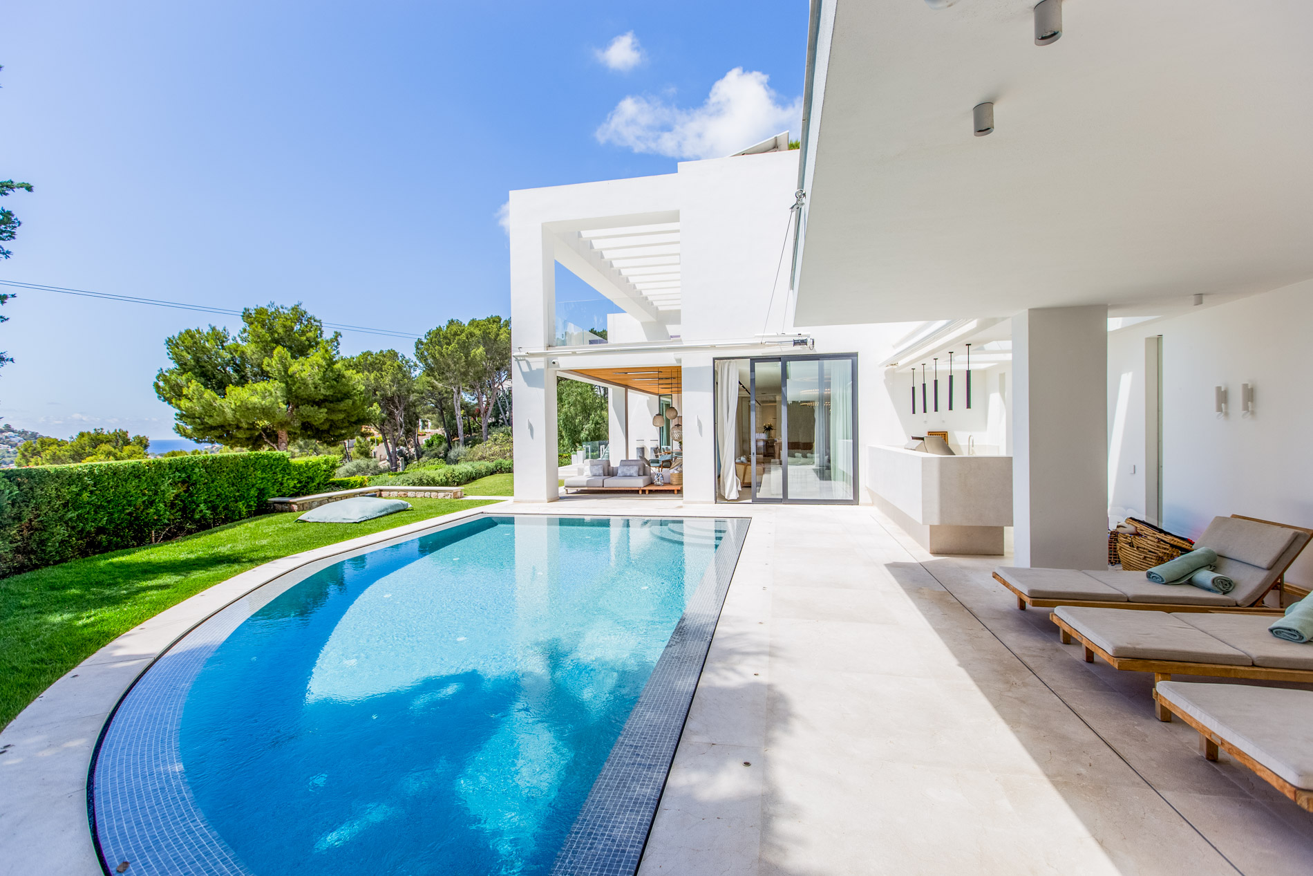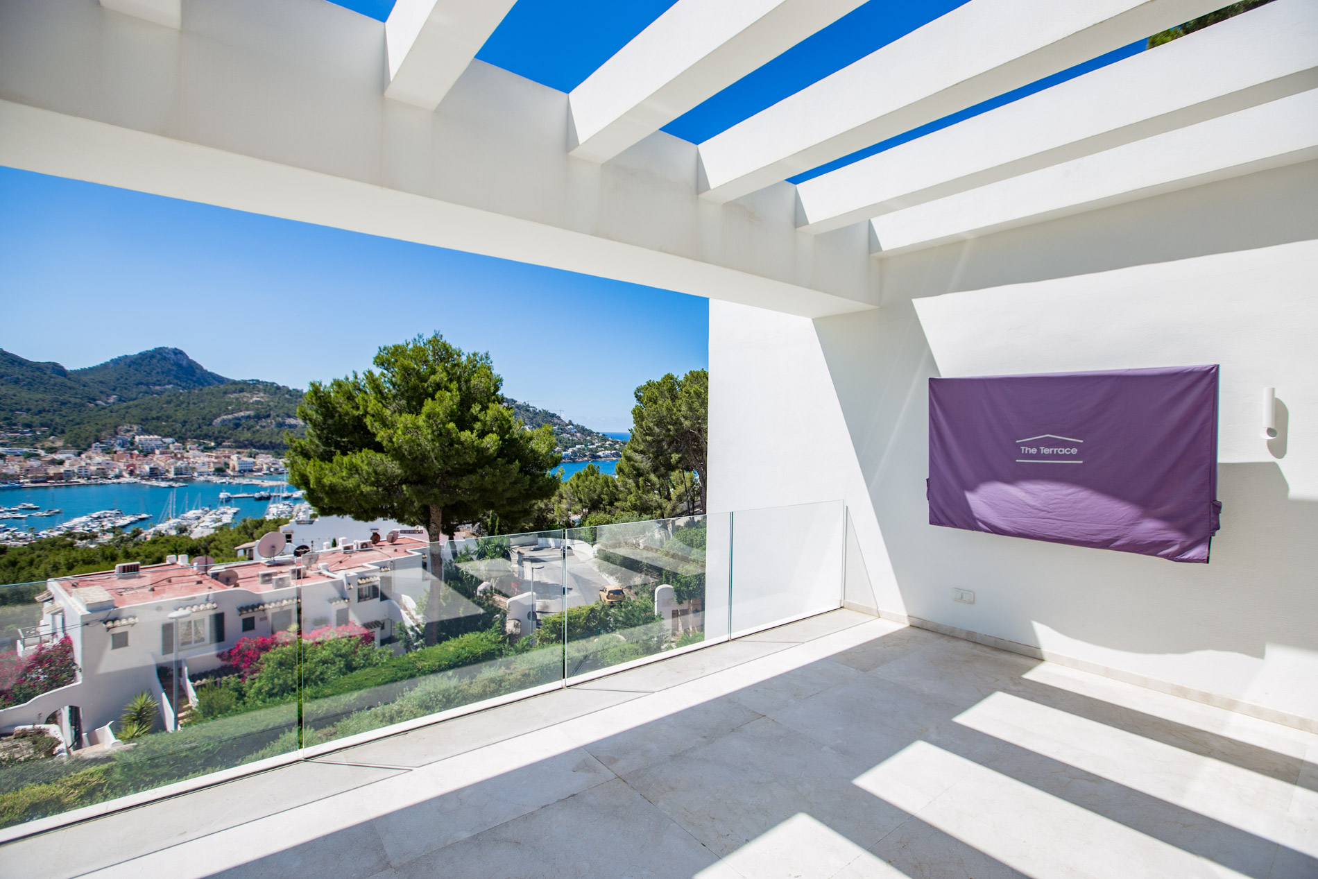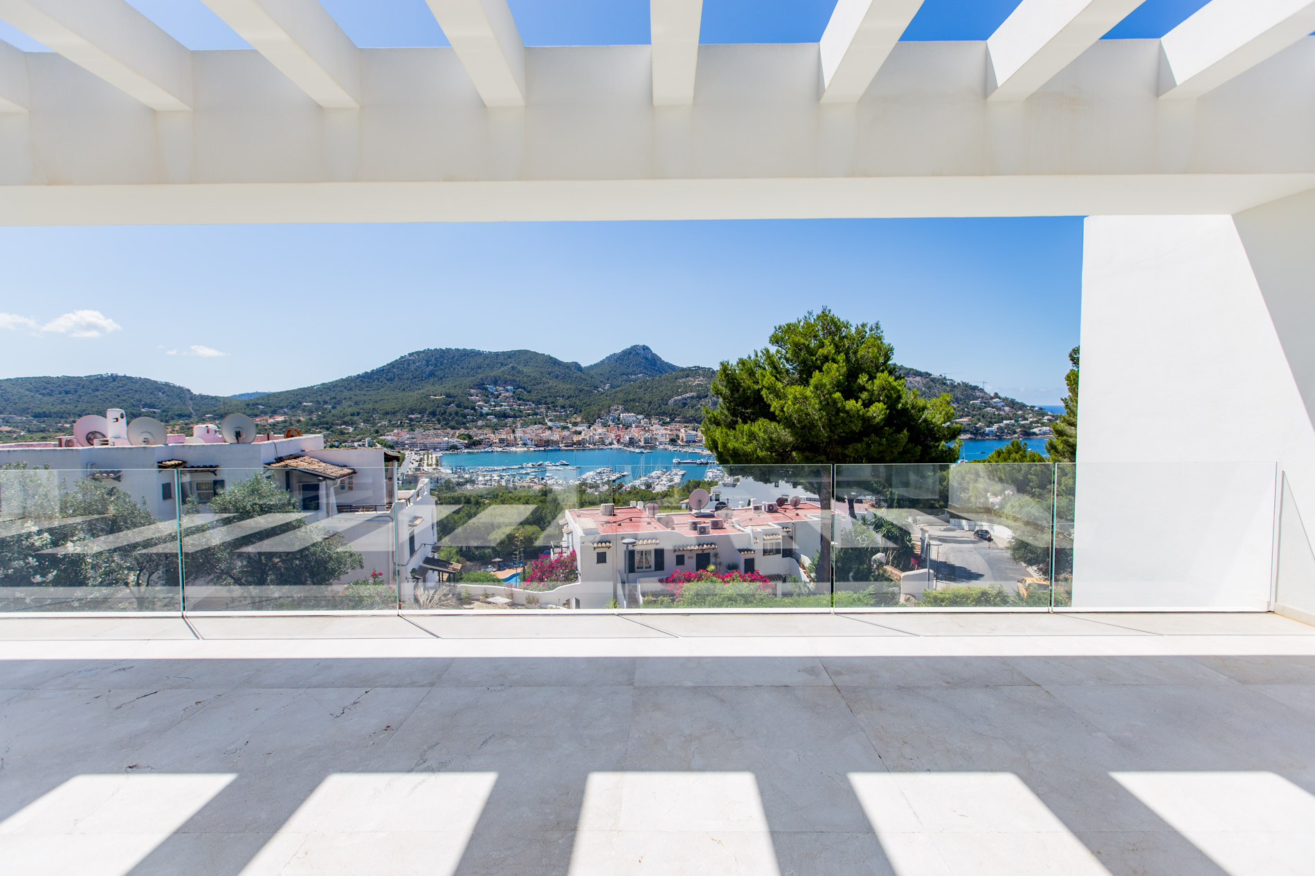 On the serene and exclusive hill of Montport, above the picturesque port of Port d'Andratx, stands a modern villa, completely renovated in 2020 with the finest materials available on the market. Just a few minutes from the prestigious Yacht Club and the vibrant promenade of the port, this residence offers the perfect combination of luxury, comfort, and contemporary style.