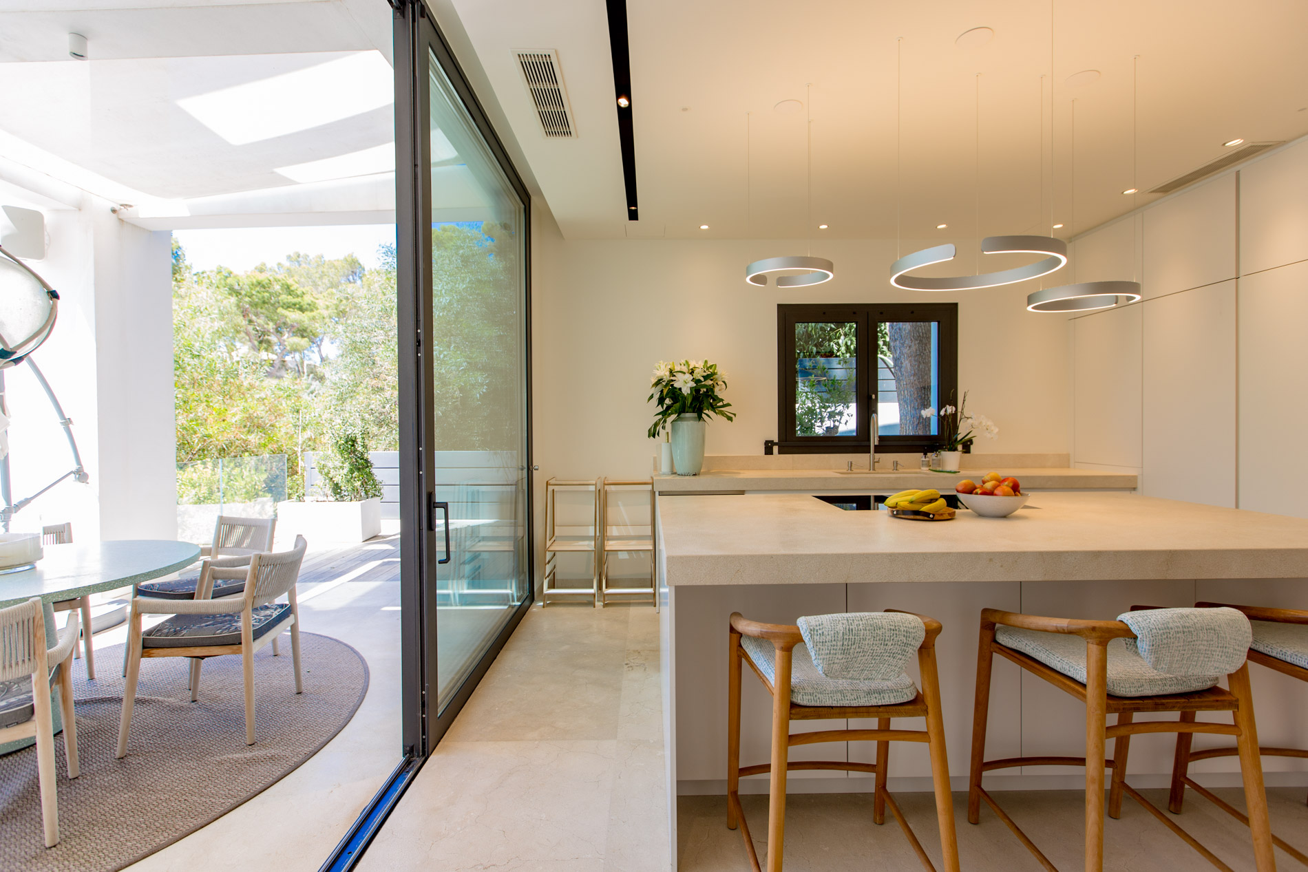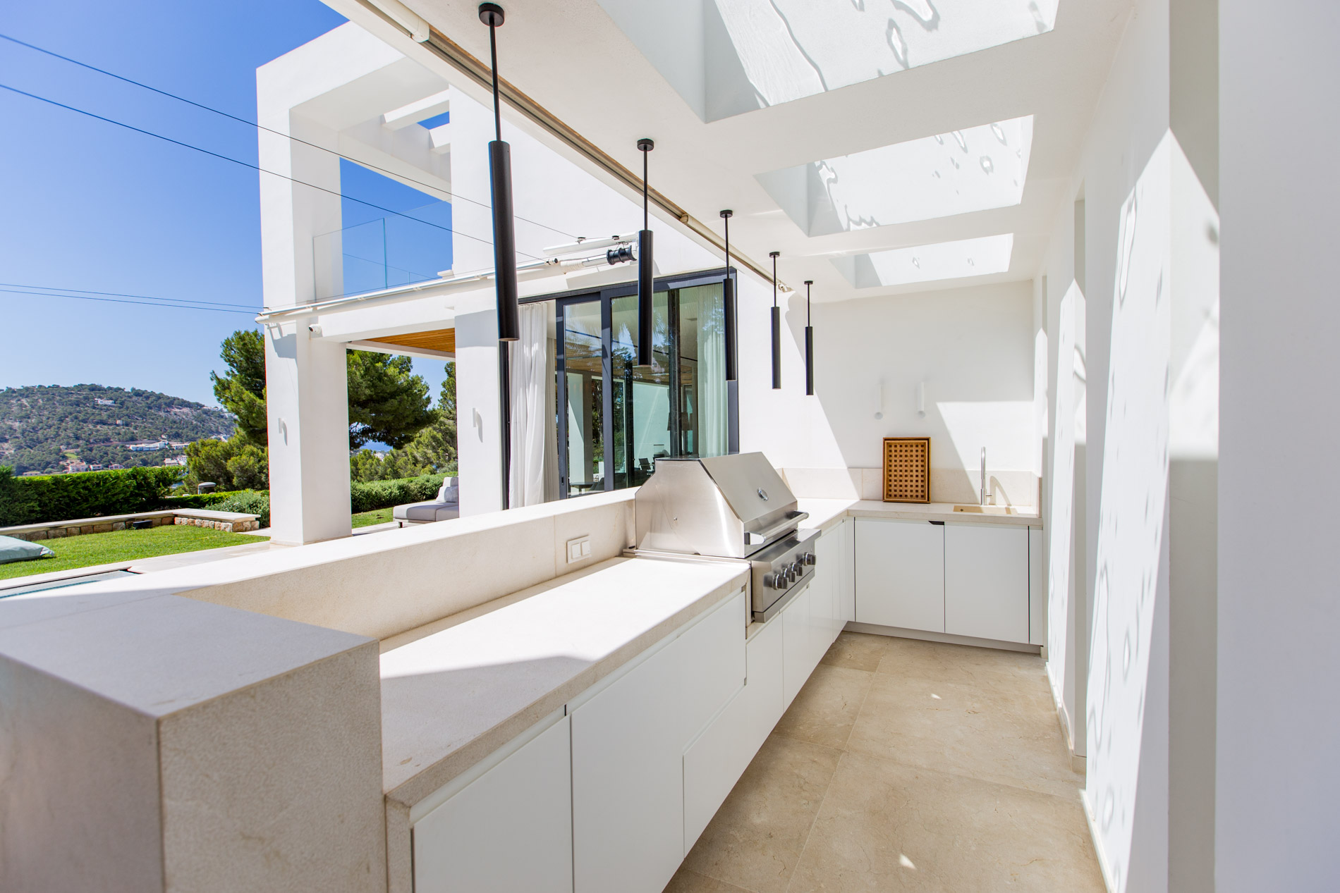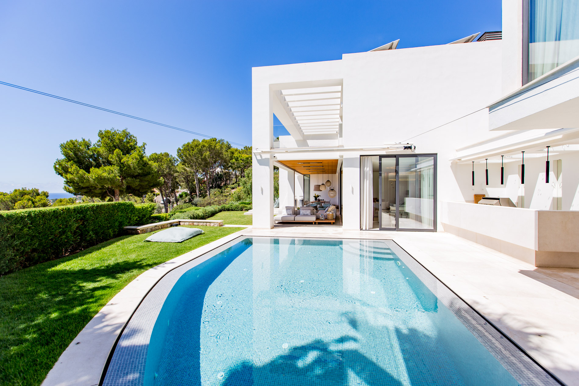On the serene and exclusive hill of Montport, above the picturesque port of Port d'Andratx, stands a modern villa, completely renovated in 2020 with the finest materials available on the market. Just a few minutes from the prestigious Yacht Club and the vibrant promenade of the port, this residence offers the perfect combination of luxury, comfort, and contemporary style.