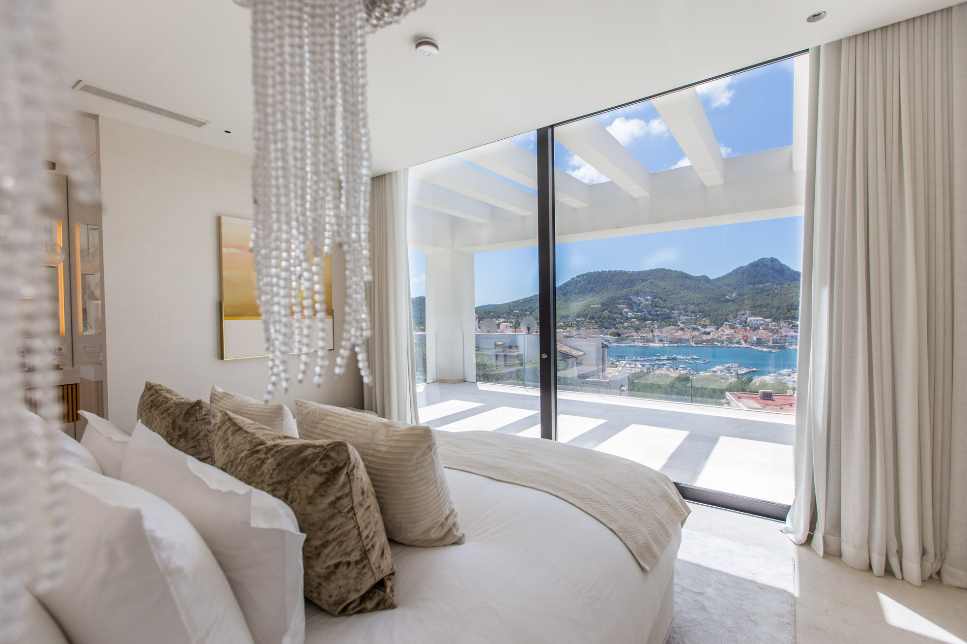 On the serene and exclusive hill of Montport, above the picturesque port of Port d'Andratx, stands a modern villa, completely renovated in 2020 with the finest materials available on the market. Just a few minutes from the prestigious Yacht Club and the vibrant promenade of the port, this residence offers the perfect combination of luxury, comfort, and contemporary style.The majestic façade of the villa, adorned with large windows, provides impressive panoramic views of the port and the Mediterranean Sea, allowing natural light to flood every corner of the house, creating a warm and welcoming atmosphere.On the upper floor, the master bedroom stands out for its elegance and privacy, featuring an en-suite bathroom and a walk-in closet designed to meet the highest expectations. Next to it, there are two additional bedrooms, each with its own en-suite bathroom, ensuring comfort and privacy for all residents. Two more bedrooms are strategically located in independent annexes, ideal for guests or to be used as an office.The ground floor, designed for entertainment and daily living, houses a large living room with direct access to a terrace that combines covered and open areas, ideal for enjoying the Mediterranean climate. The modern kitchen, equipped with state-of-the-art technology and a practical laundry room, is complemented by a dining room and a guest toilet, creating a functional and elegant space for daily life.The meticulously maintained garden becomes a private oasis with a heatable pool, perfect for year-round enjoyment. The villa also offers a series of extras that elevate its level of luxury, including a fitness area, a walk-in refrigerator, and an advanced KNX home automation system that allows various aspects of the home to be controlled with maximum comfort and efficiency.This villa in Montport is not just a home, but a statement of style and sophistication, designed for those who seek the best in terms of quality of life and exclusivity.MallorcaSite, your real estate agency in Mallorca, recommends this property for its location, its quality, and the views.