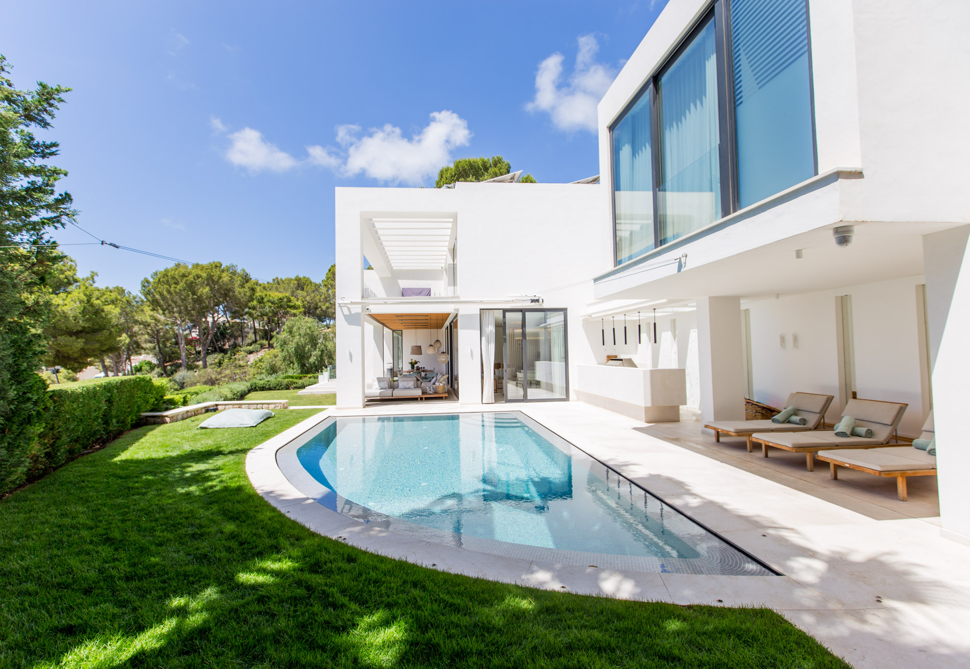Private pool / Garden / Unobstructed views / Terrace / Guest area / Private apartment / Air conditioning / Underfloor heating / Fireplace / Double-glazed windows / Parking / Home automation / Storage room / Laundry room / Natural stone floors / Gym / Security cameras / Water softener / Garage / Sonos sound system