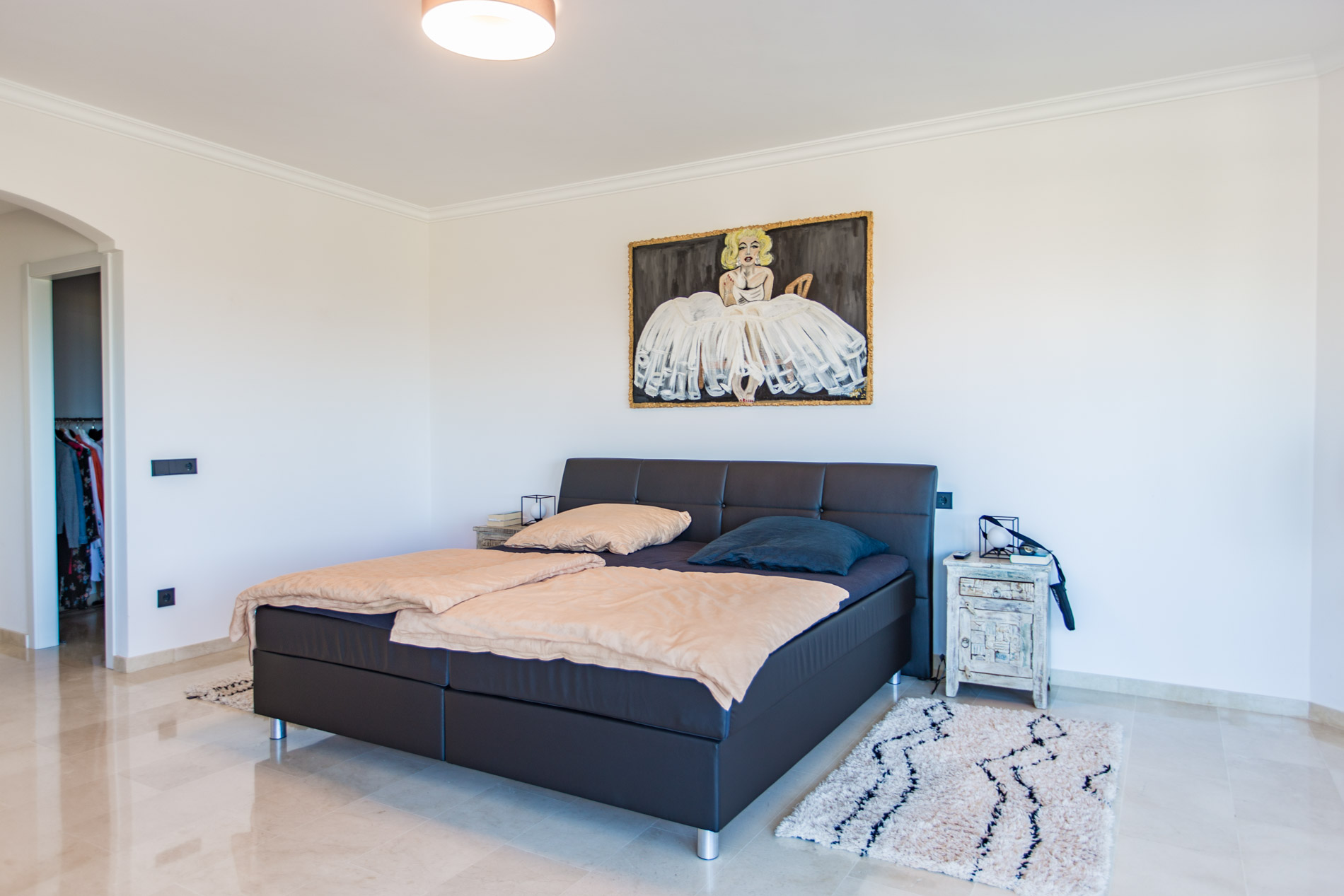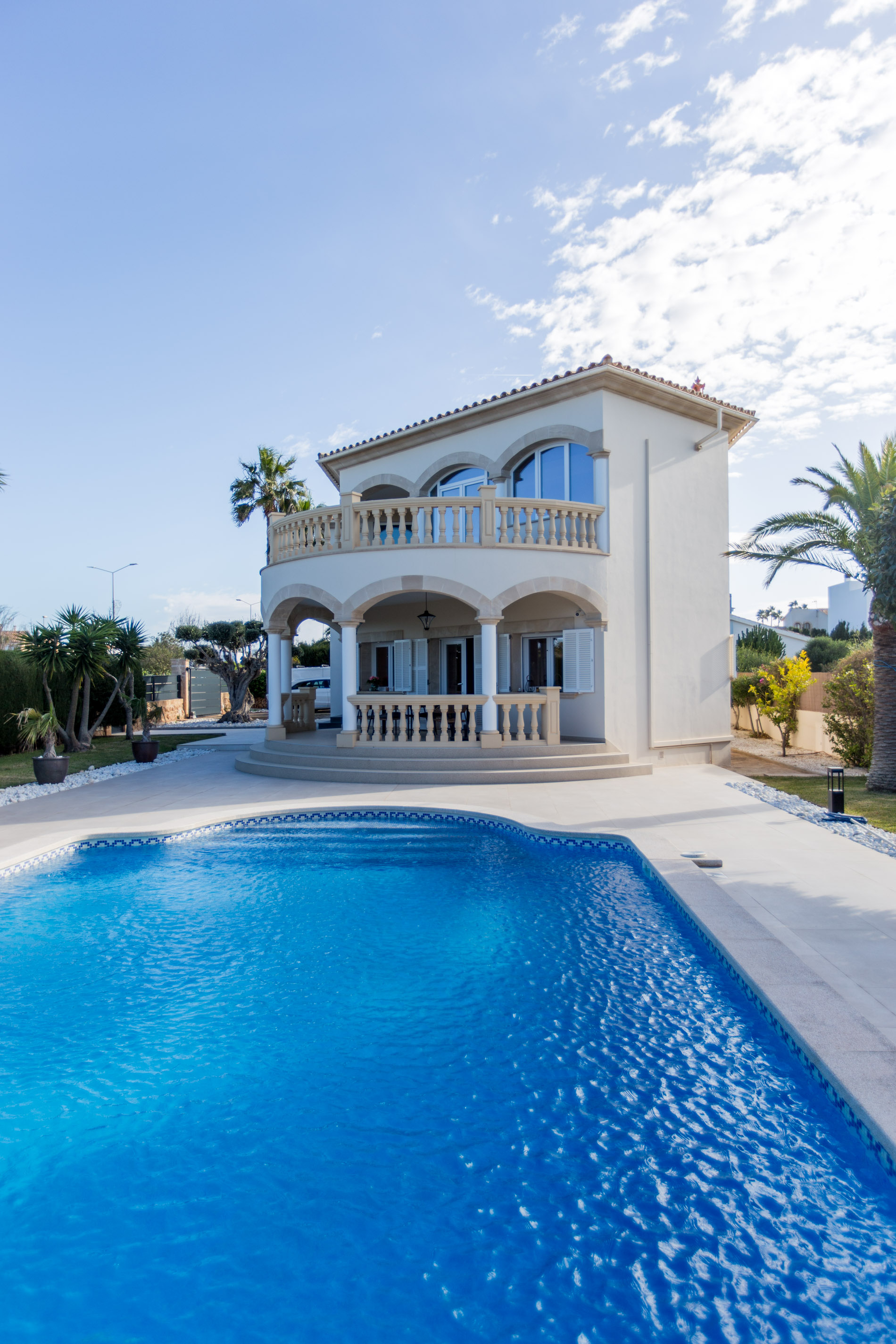This Mediterranean villa in Sa Torre is the ideal place for a relaxing family vacation. Located in a quiet residential area and just a few steps from the coast, it offers the perfect combination of comfort and authentic Mediterranean charm.With its Mediterranean-style architecture, this house stands out for its exterior surrounded by palm trees and lush vegetation, inviting you to enjoy outdoor living. The spacious terrace and garden provide the perfect space to relax by the 65 m² pool, designed with the whole family in mind. The villa features 321 m² of built space on a 1,075 m² plot, distributed across 4 bright bedrooms and 3 full bathrooms, one of which is en-suite with a bathtub in the master bedroom.On the upper floor, the master bedroom boasts a walk-in closet, private bathroom, and access to a terrace with views of the sea and the city of Palma. Another bedroom also has a terrace, ideal for children or guests.The open-plan living and dining area connects directly to the terrace, creating the perfect space for outdoor dining. A fireplace in the living room adds warmth on cooler days. The kitchen is functional and includes an adjoining utility room for added convenience.Located in second line from the sea, this villa offers clear views of the bay of Palma and the Tramuntana mountains. Sa Torre is a peaceful yet well-connected area, with easy access to amenities, golf clubs, and nearby bathing coves.With its practical location, ample spaces, and modern amenities, this villa in Sa Torre is an excellent choice for those seeking a comfortable and functional home with Mediterranean flair.MallorcaSite, your real estate agency in Mallorca, recommends this villa for its prime location and proximity to the sea.