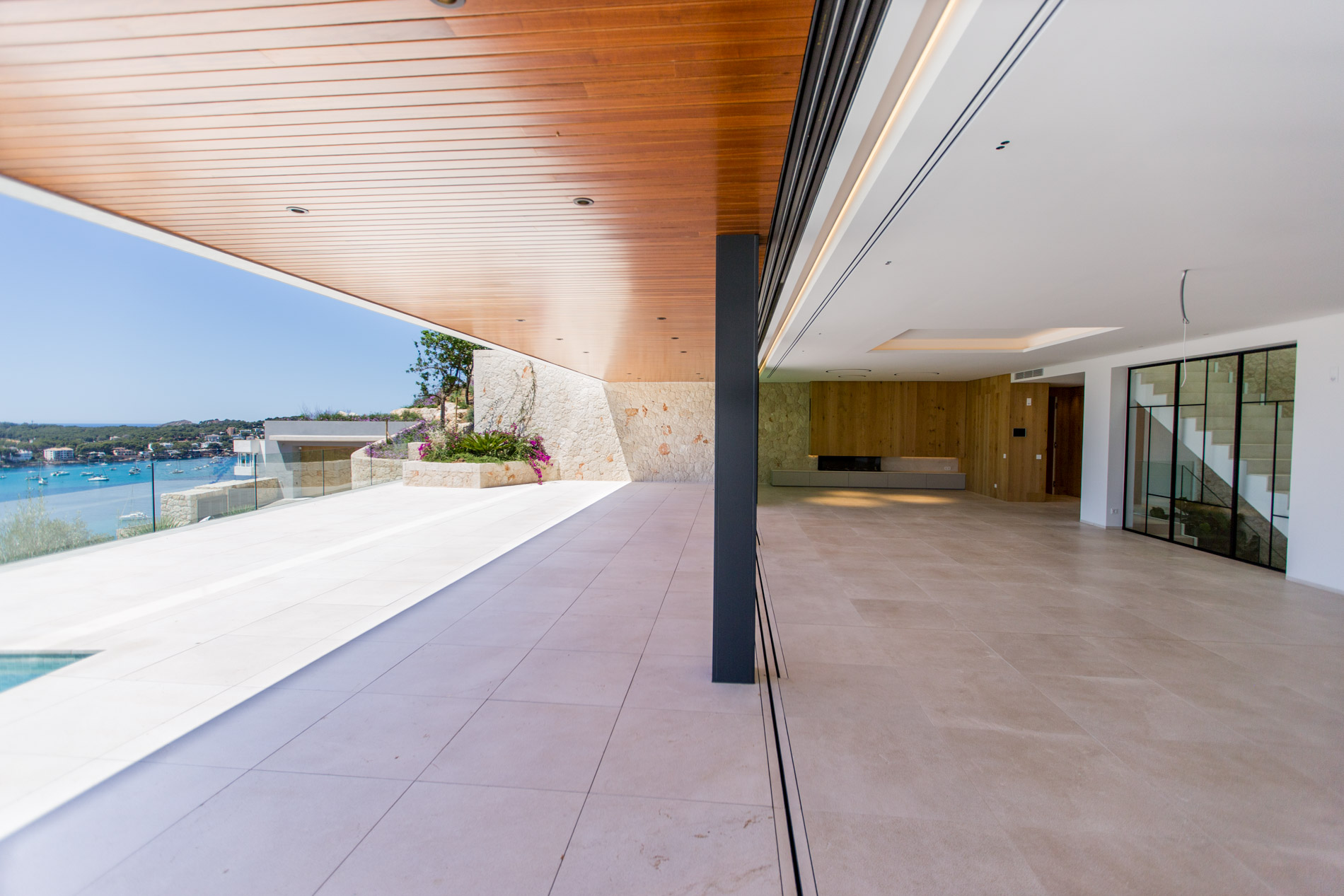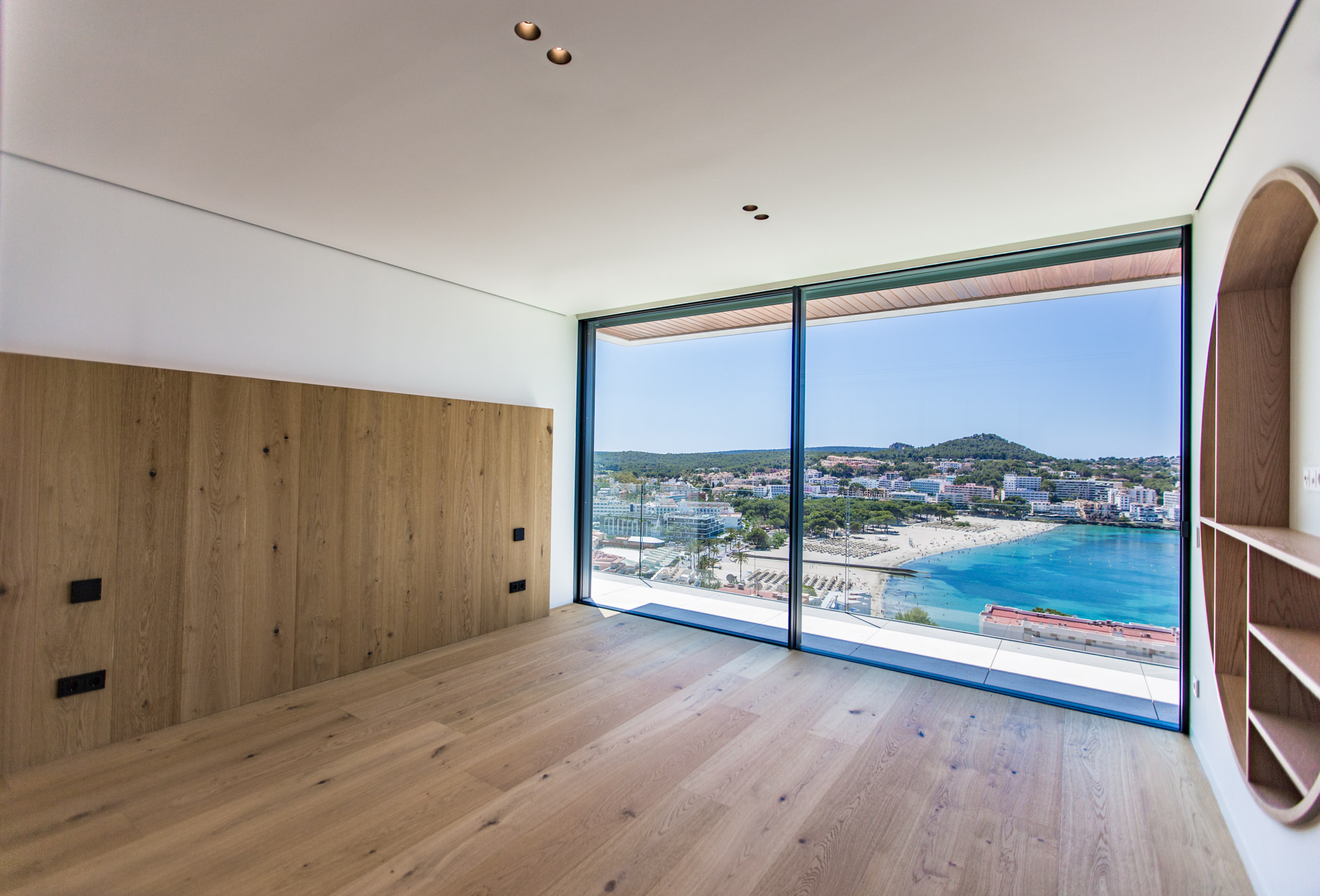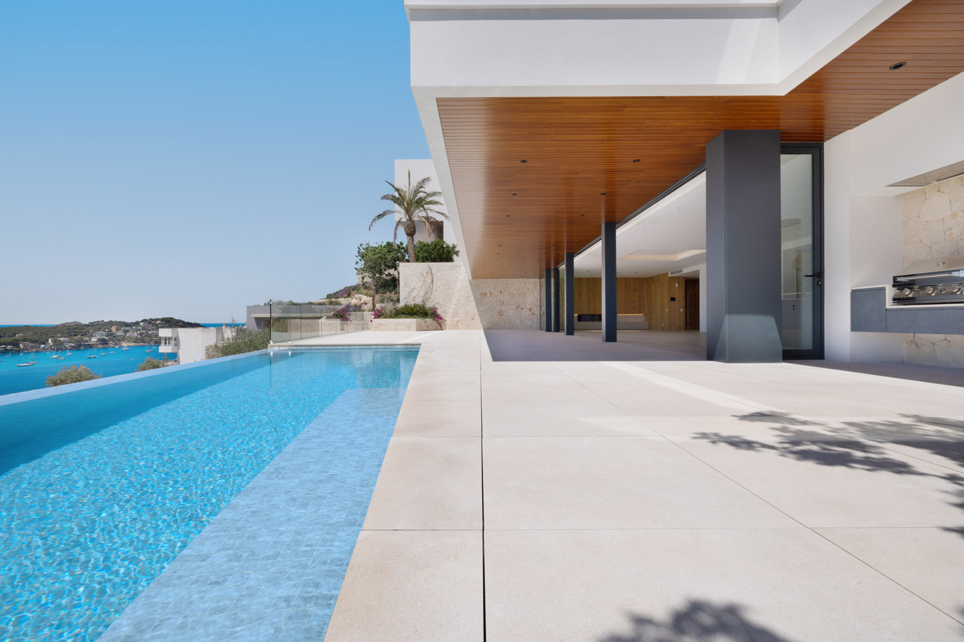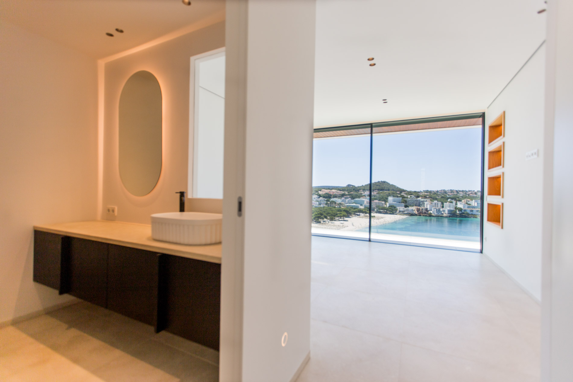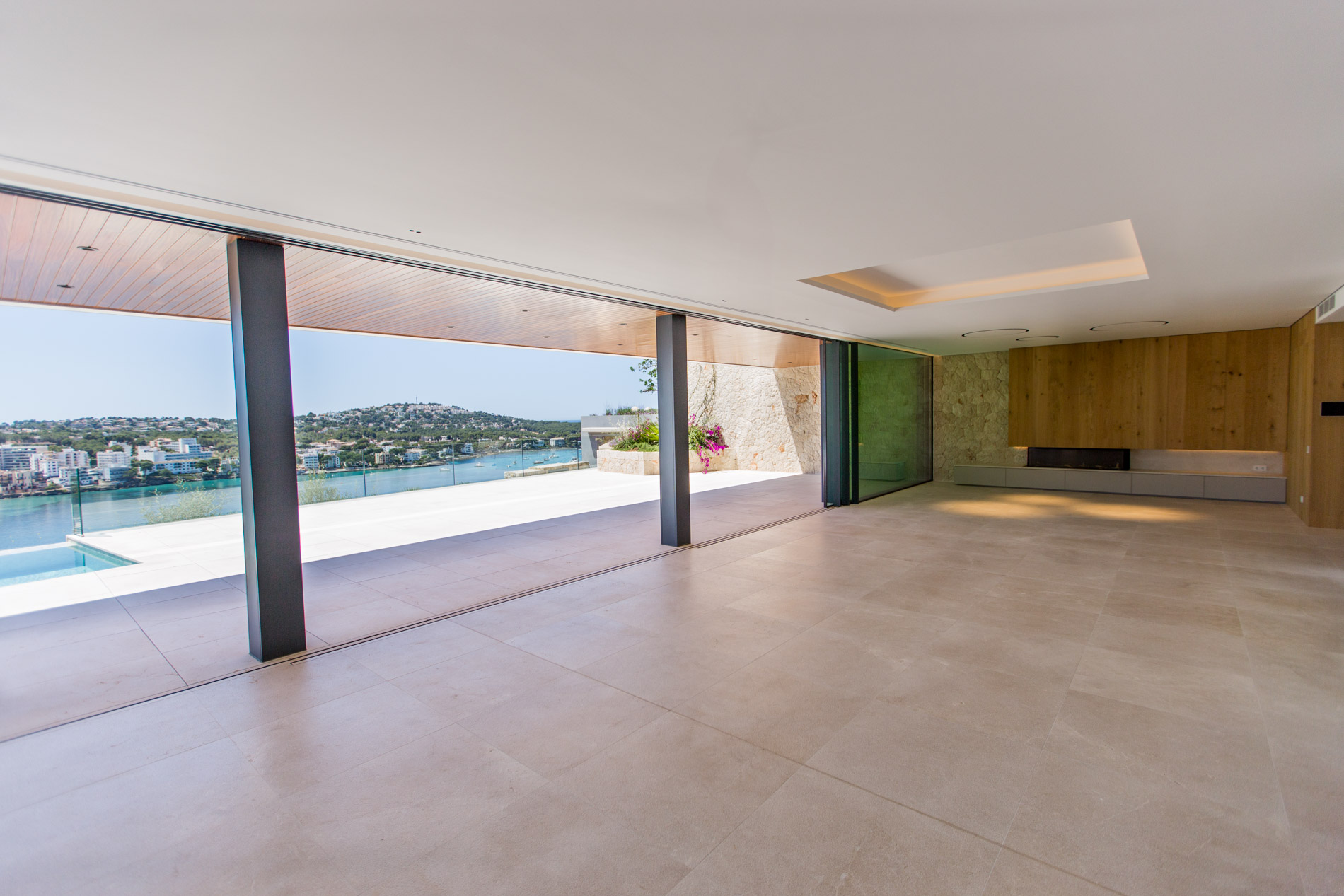 Nestled in the heart of Santa Ponsa, this stunning villa epitomizes contemporary luxury and timeless elegance. Ready for occupancy, the property stands out for its high-quality interior design and the use of exceptional materials, ensuring an unparalleled living experience.From the moment you cross the threshold of its majestic entrance, the villa envelops you in an aura of elegance and style. The ground floor, with its large climate-controlled wine cellar, luxury spa, and gym, invites wellness and relaxation. Every corner is carefully designed to offer an unparalleled living experience.On the first floor, an open-plan design harmoniously integrates the living room, kitchen, and dining area. Here, space is synonymous with freedom, and the panoramic sea views from any point are simply stunning. The kitchen, equipped with state-of-the-art appliances, is a gourmet’s paradise, while the living and dining areas provide the perfect setting for entertainment and family life.The second floor houses the bedrooms, each a sanctuary of comfort and tranquility. These rooms are designed with total energy efficiency in mind, thanks to an advanced thermal heating system and solar panels installed throughout the rooftop. Here, luxury meets sustainability, offering a home that is both elegant and eco-friendly.The spacious terrace and infinity pool seem to merge with the horizon, creating a private oasis from which to contemplate the splendor of the Mediterranean Sea. The south-facing orientation ensures an abundance of natural light throughout the day, making this villa a warm and welcoming retreat in any season.MallorcaSite, your real estate agency in Mallorca, recommends this property for its views, design, and location.