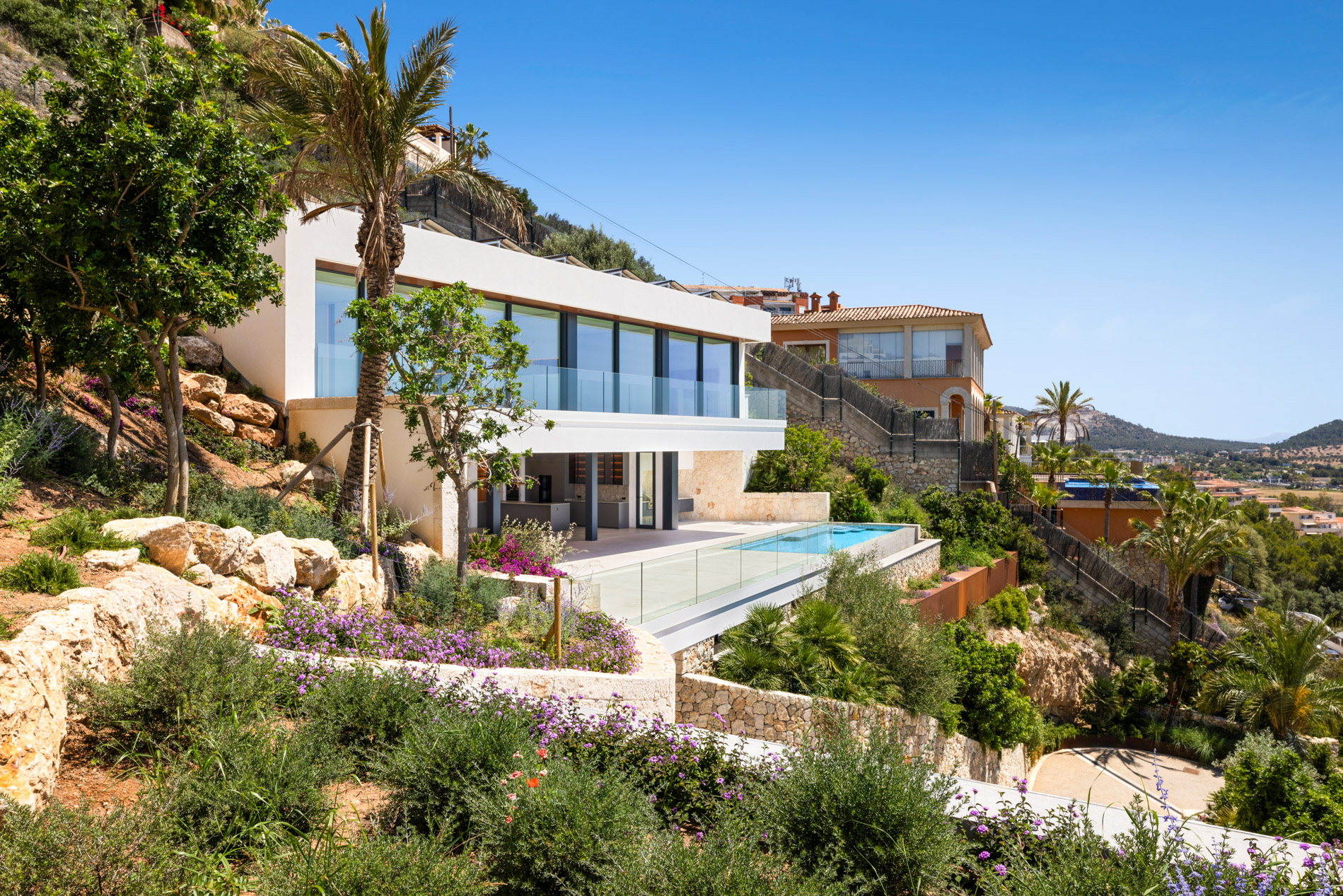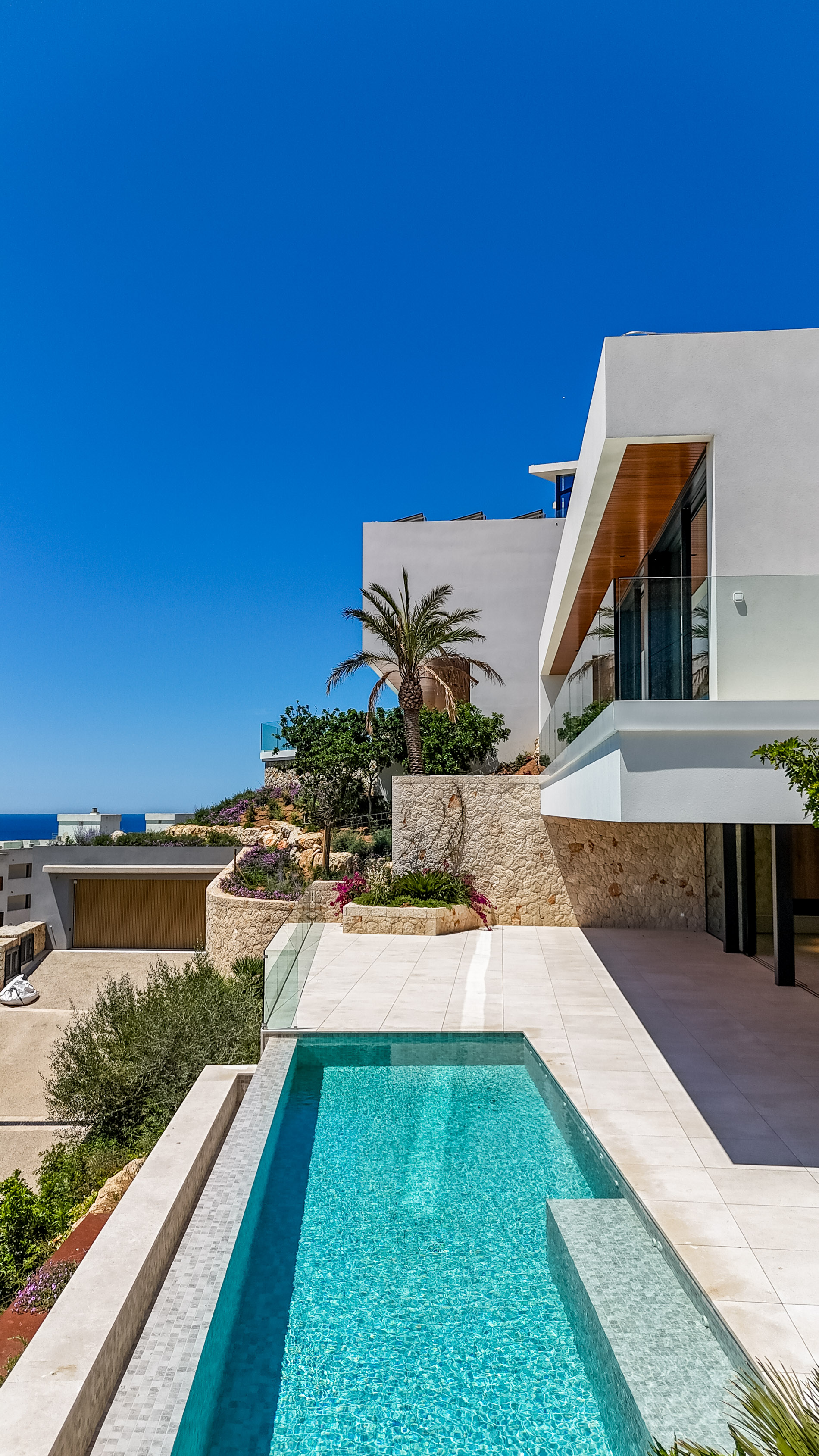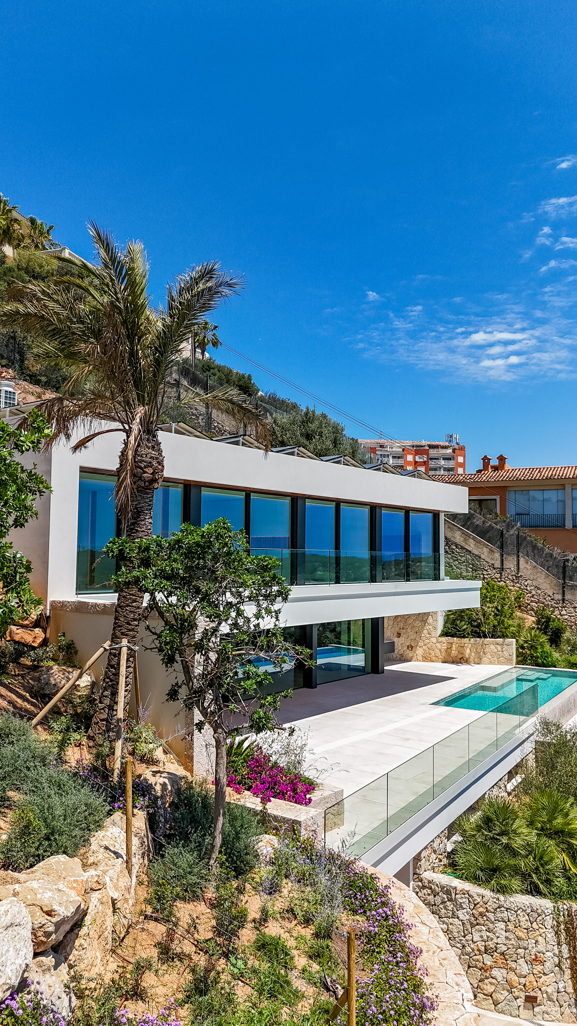 This architectural gem is located in a prime location, just steps away from golf courses, the vibrant city of Palma, a variety of exquisite restaurants, and the area's dreamy beaches. The proximity to these amenities makes this villa the perfect choice for a permanent residence or a holiday retreat.