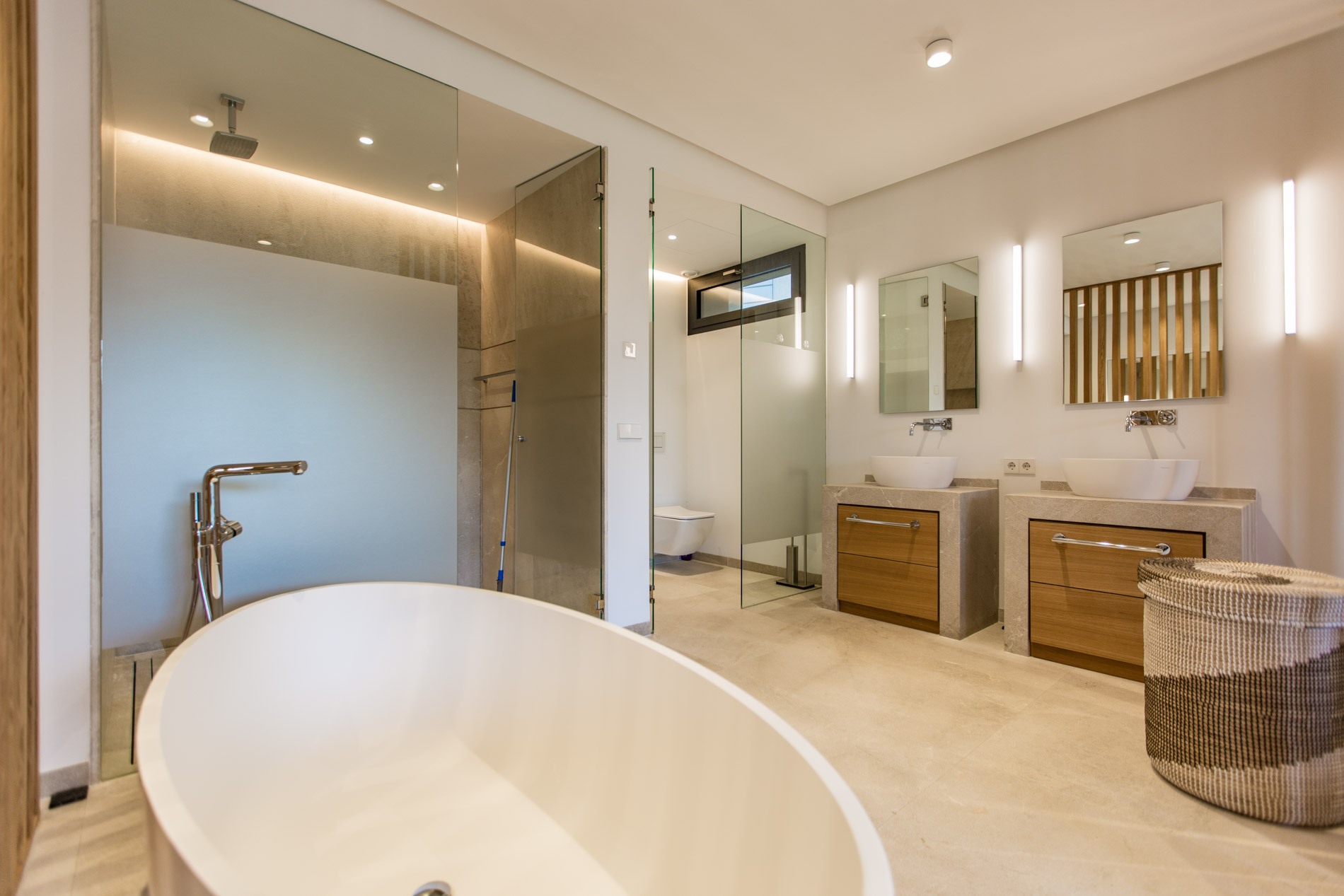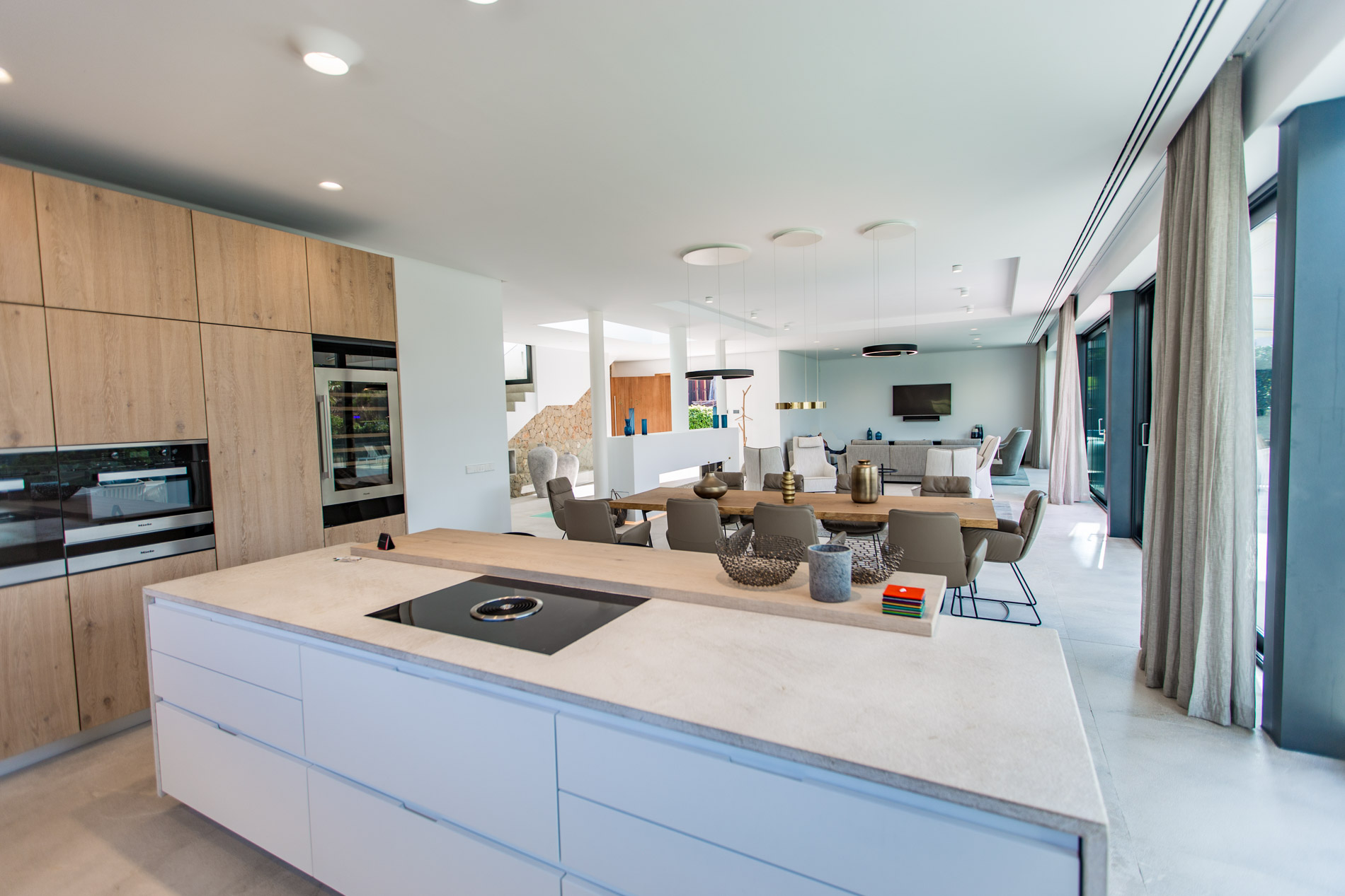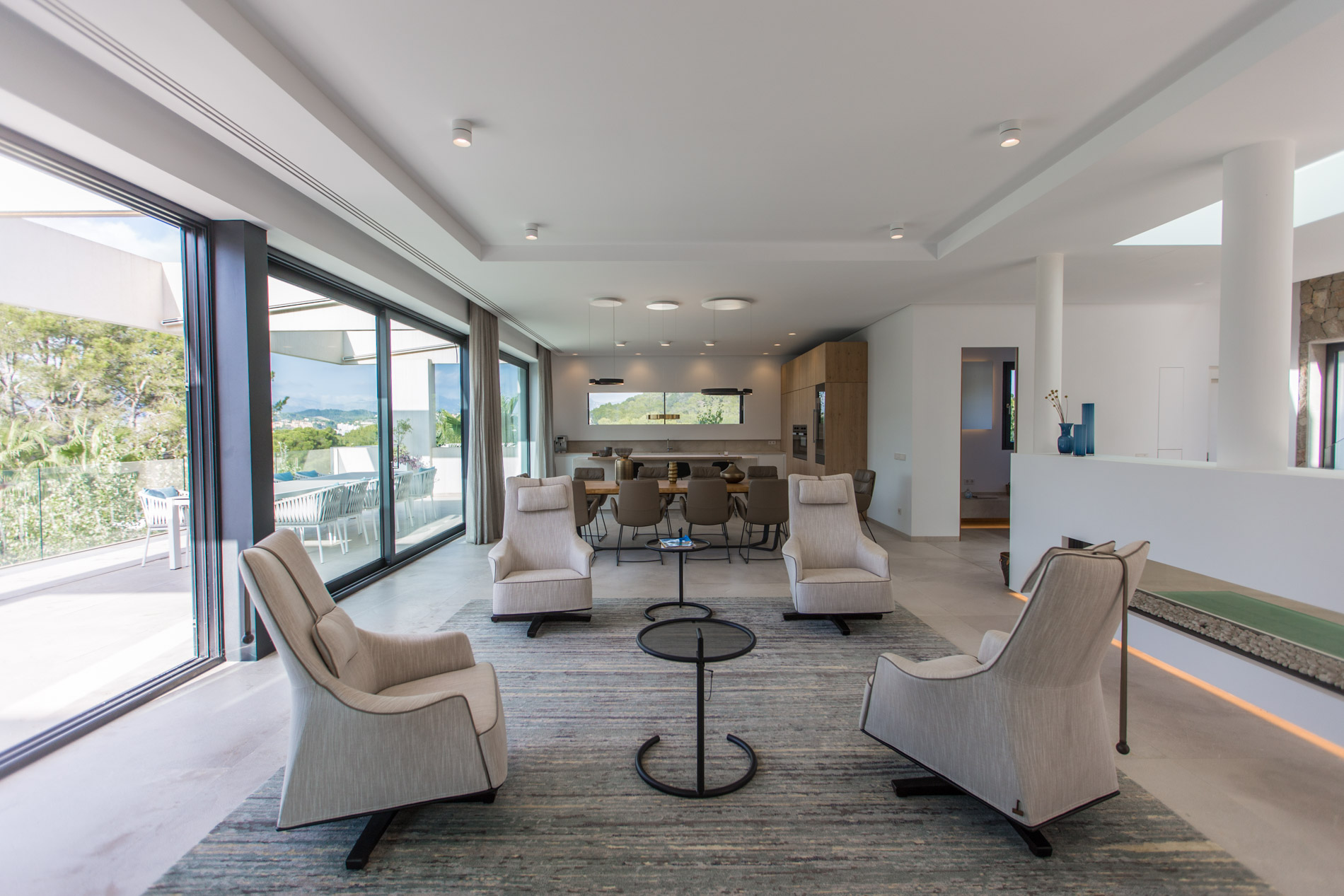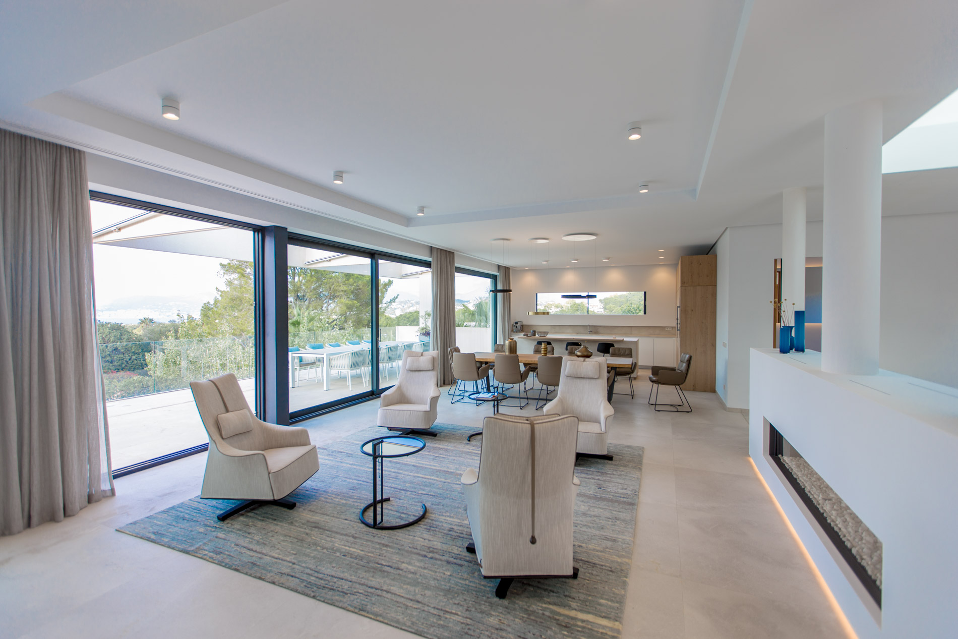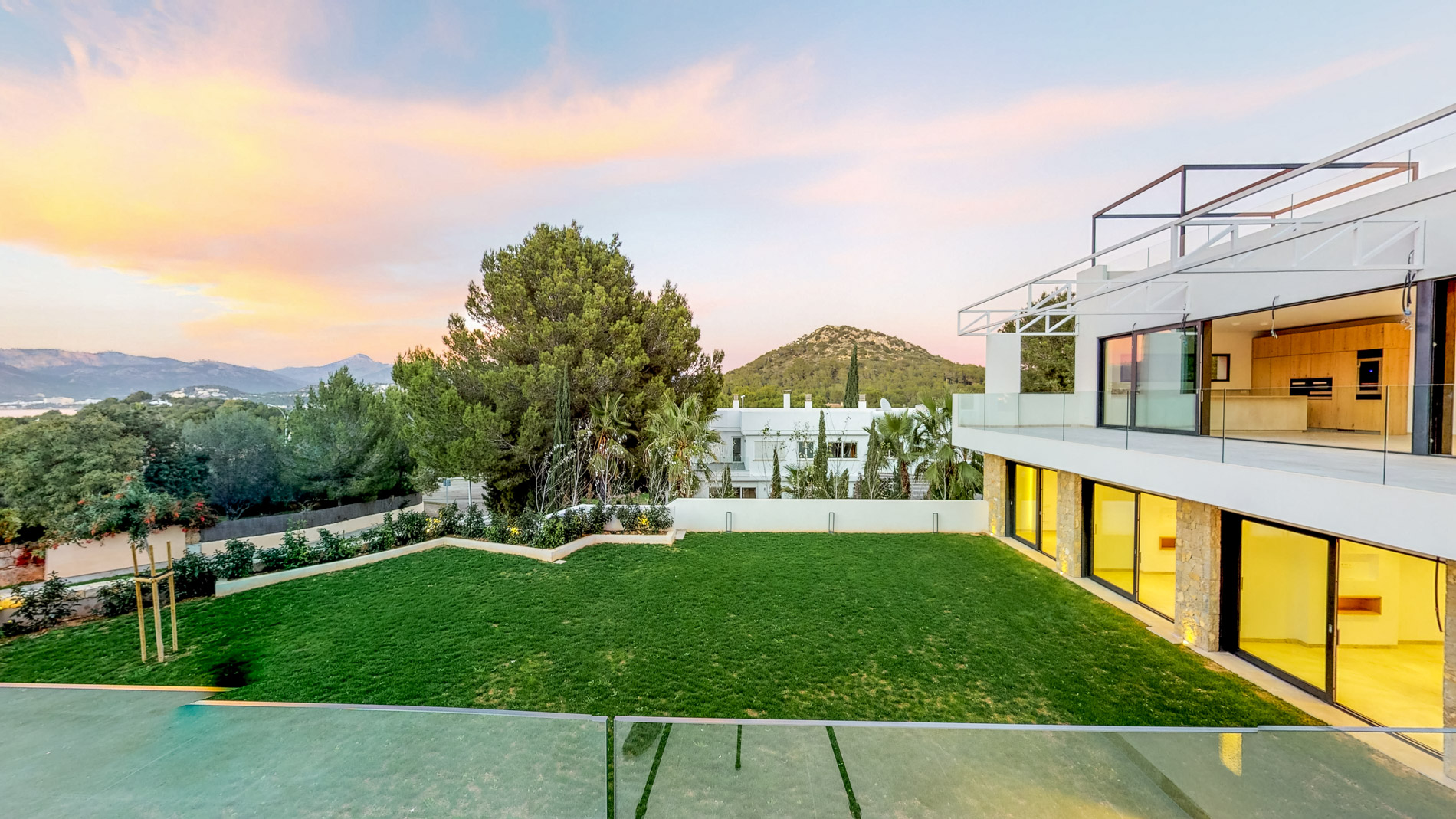 Family villa with sea views and with a nice flat garden, ideal for families with children, quiet location in Santa Ponsa. A modern design combined with Mediterranean elements.