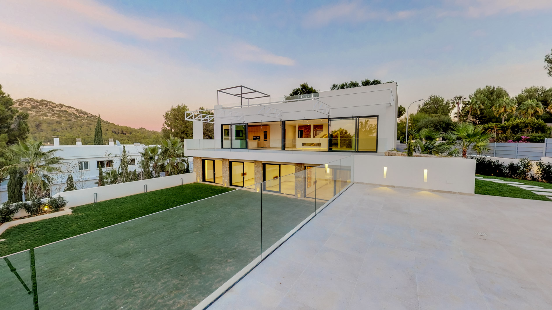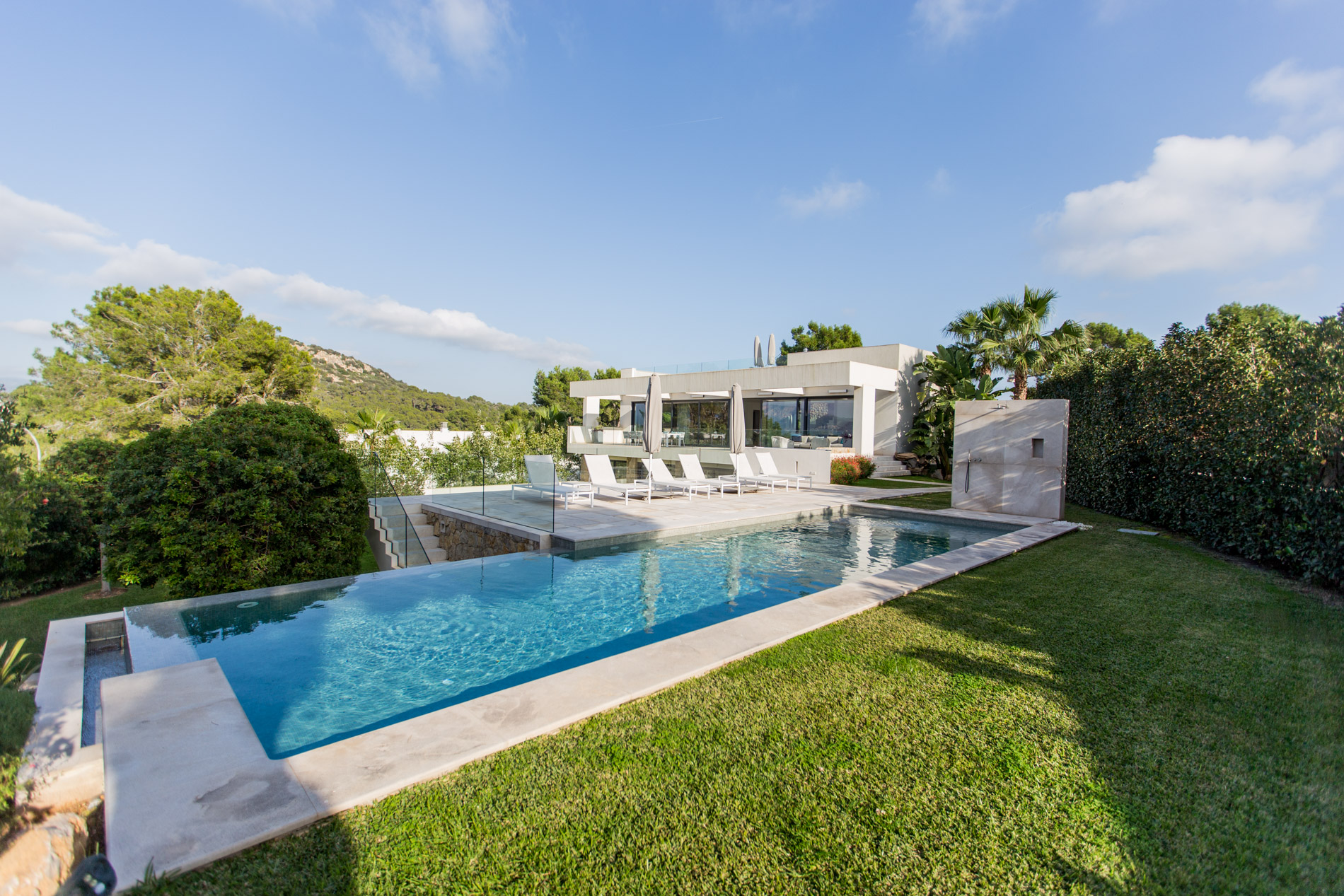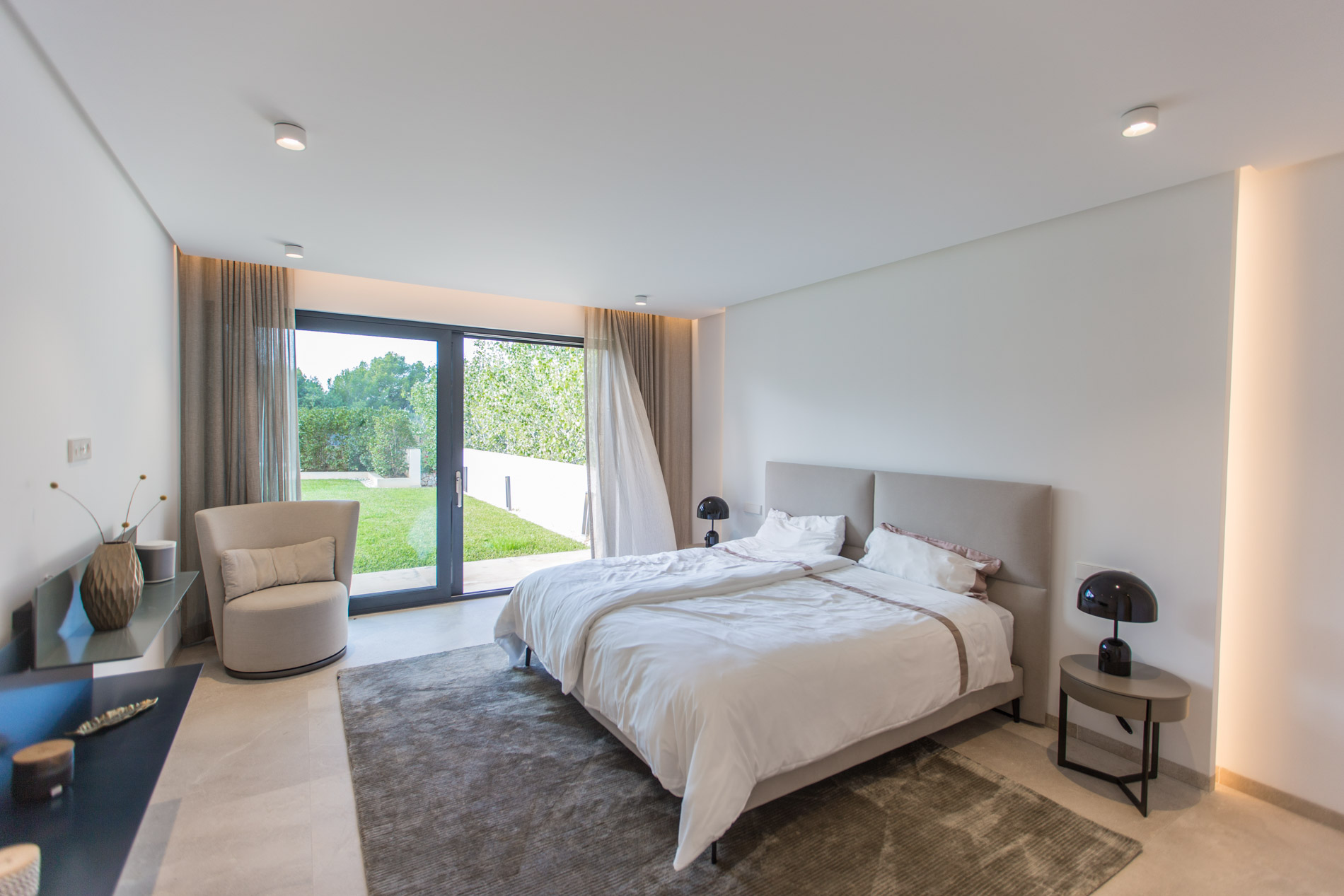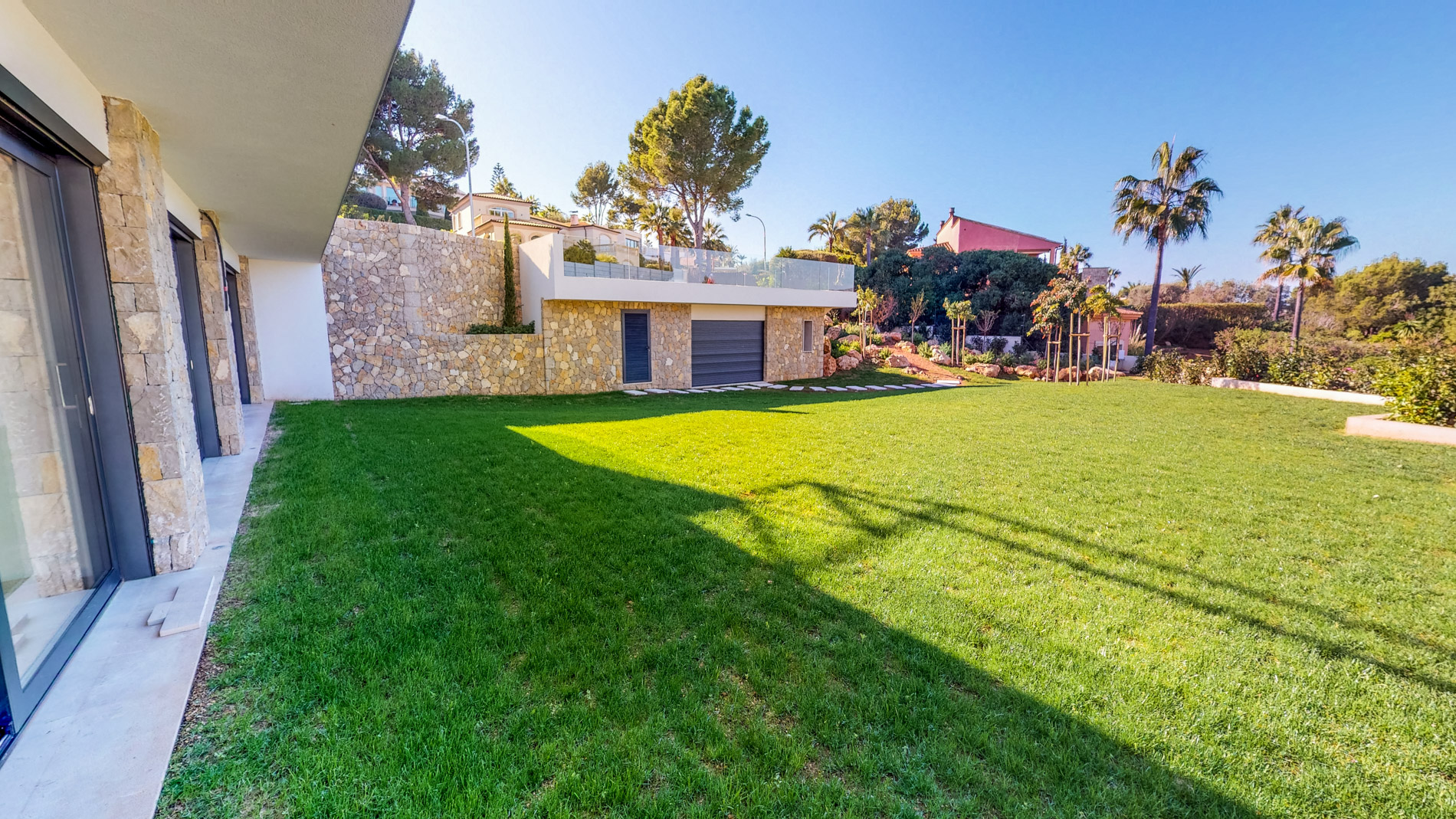This modern house with excellent finishes was finished middle of 2018 and is located in Santa Ponsa, 18 km from Palma. It is a house built with open and spacious spaces, on a plot with 2 levels, ideal to enjoy the garden, overlooking the sea. It is located in a very quiet area, within walking distance to the golf course of Santa Ponsa and less than 5 minutes from Port Adriano.On the ground floor we find 4 bedrooms, each with its bathroom en suite and direct access to the garden and an office that could be converted into another bedroom. On the first floor there is a large living room with access to the porch which also overlooks the garden, dining room and fully equipped kitchen, with sea views. On this same floor there is the possibility of making another bedroom.Under the pool we find a guest apartment with a bathroom, that could be converted into 2 bedrooms. In addition it has a very large basement, where we find a garage for two cars, a large room that could be used as a cinema, gym, ... and the laundry room and a toilet.MallorcaSite, your real estate agency, recommends this property for its excellent location, its qualities, its design, its spaciousness and its views.