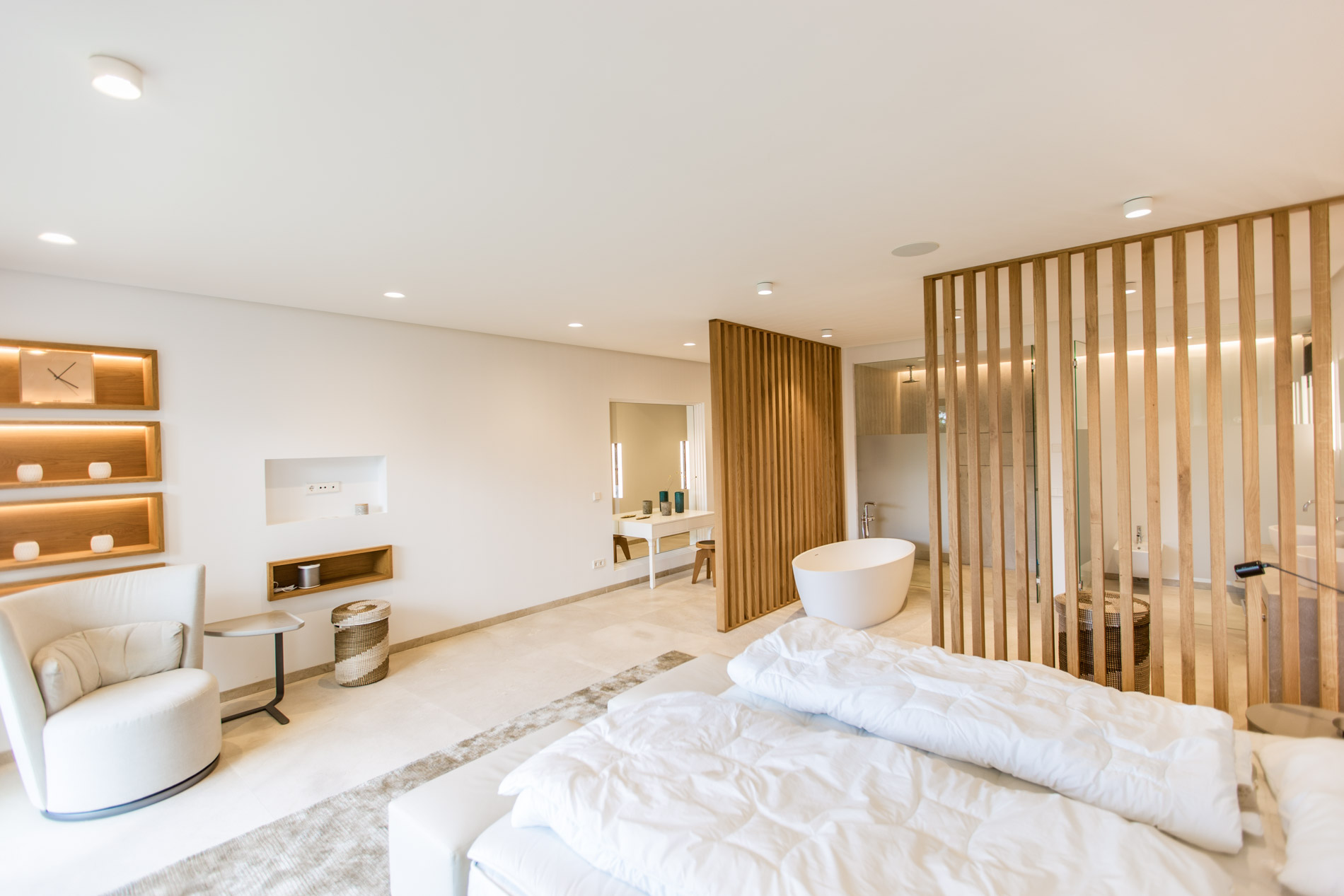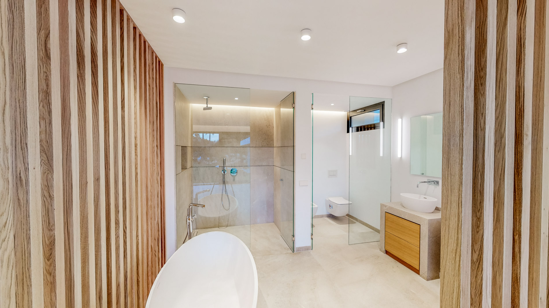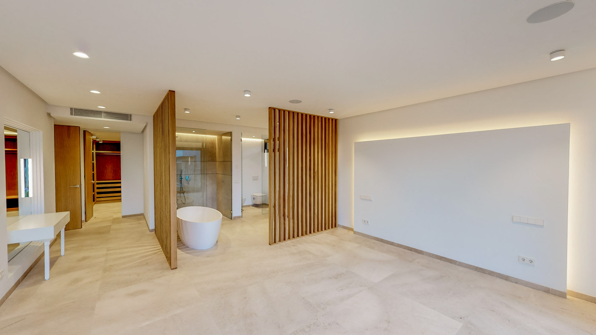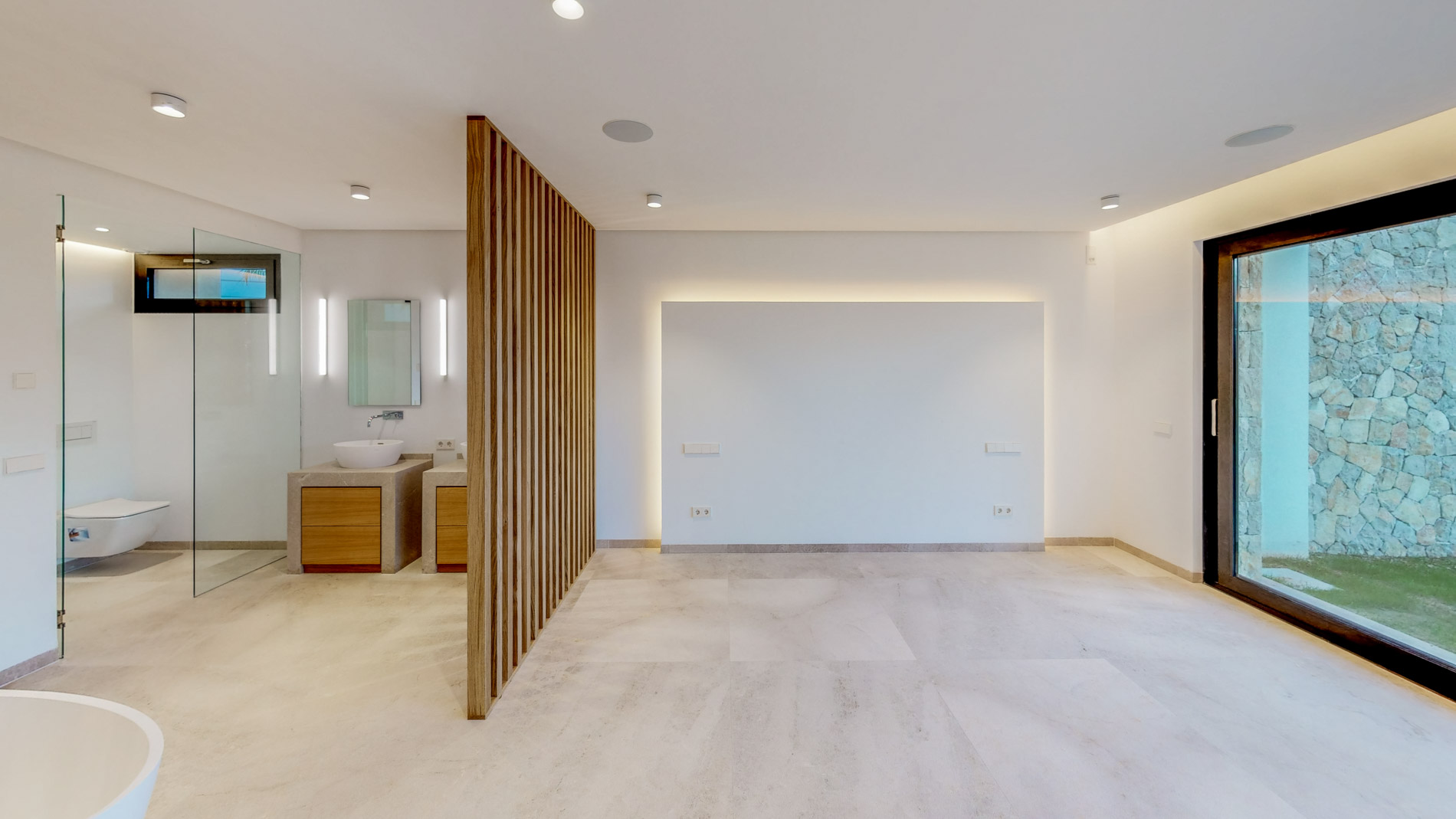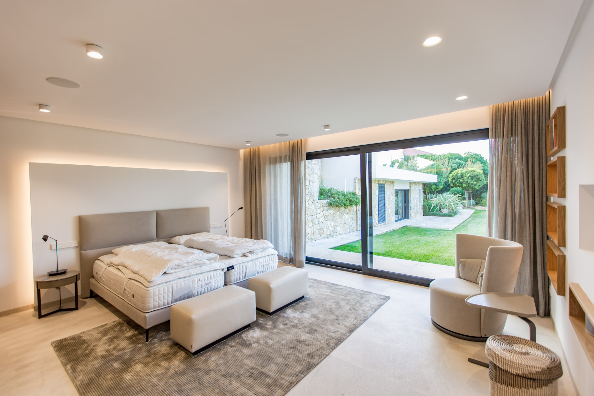 This modern house with excellent finishes was finished middle of 2018 and is located in Santa Ponsa, 18 km from Palma. It is a house built with open and spacious spaces, on a plot with 2 levels, ideal to enjoy the garden, overlooking the sea. It is located in a very quiet area, within walking distance to the golf course of Santa Ponsa and less than 5 minutes from Port Adriano.On the ground floor we find 4 bedrooms, each with its bathroom en suite and direct access to the garden and an office that could be converted into another bedroom. On the first floor there is a large living room with access to the porch which also overlooks the garden, dining room and fully equipped kitchen, with sea views. On this same floor there is the possibility of making another bedroom.Under the pool we find a guest apartment with a bathroom, that could be converted into 2 bedrooms. In addition it has a very large basement, where we find a garage for two cars, a large room that could be used as a cinema, gym, ... and the laundry room and a toilet.MallorcaSite, your real estate agency, recommends this property for its excellent location, its qualities, its design, its spaciousness and its views.