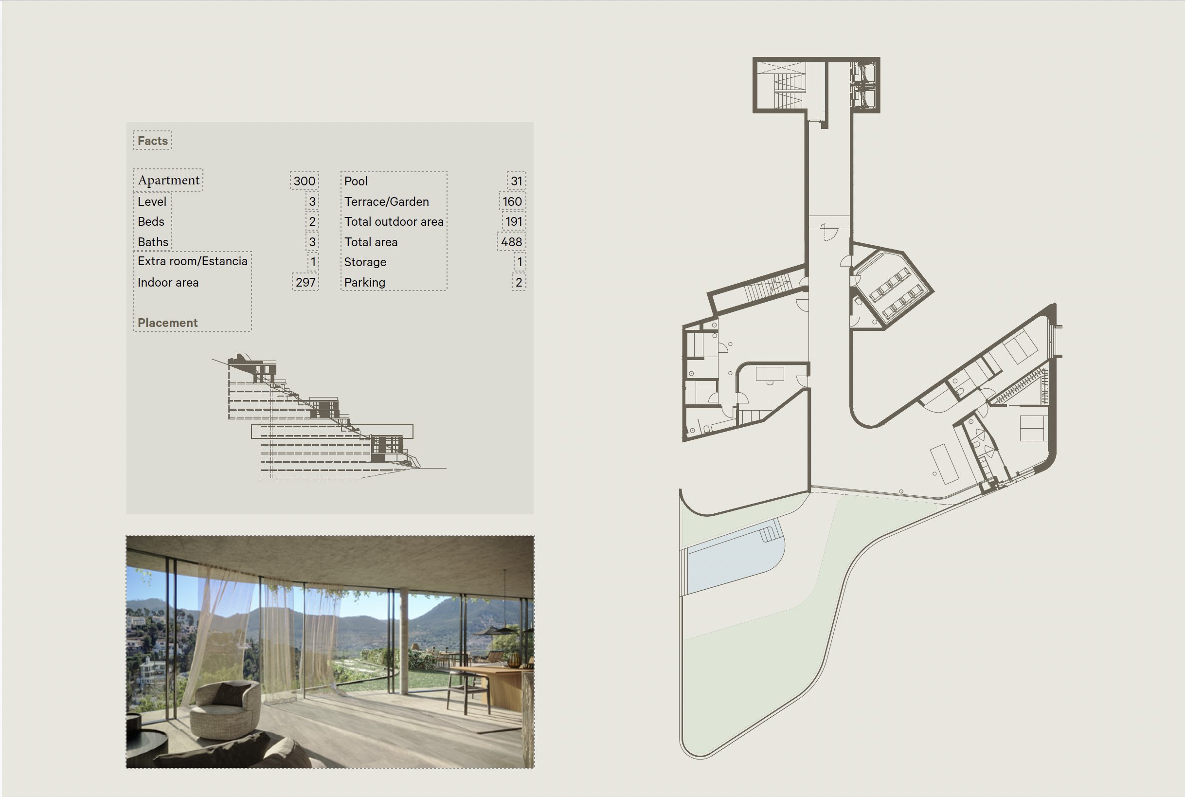 Set into the lush hillside above Port d’Andratx, this remarkable ground-floor residence offers a tranquil retreat that embraces both design and landscape. As part of an intimate collection of nine architect-designed homes, it offers the rare opportunity to enjoy expansive private gardens and outdoor living in a location that feels worlds away—yet just minutes from Mallorca’s most celebrated marina.With a total of approximately 297 m² of interior space, this residence is designed for spacious, comfortable living. A standout feature is its extra-large private garden and terrace area of 191 m², complemented by a 31 m² swimming pool, perfect for sun-soaked days and elegant evening gatherings. Surrounded by mature greenery and panoramic views, the home provides a sanctuary of privacy and peace.Contemporary Living Rooted in ComfortDesigned with ease and flow in mind, the interior layout includes three en-suite bedrooms, offering refined privacy for residents and guests alike. The heart of the home is a generous open-plan lounge, dining, and kitchen area that opens directly onto the garden through wide-format glass sliding doors, allowing the outside to become part of the living experience.The kitchen is sleek and fully equipped with top-tier appliances from Gaggenau, Miele, and Bora, creating a modern culinary environment that is both practical and beautifully integrated into the design language of the home. Custom-made wardrobes, high-quality materials, and refined detailing are evident throughout.Comfort is prioritized year-round, with underfloor heating and centralized air conditioning, and the apartment includes three indoor parking spaces—each with electric vehicle charging—catering to today’s lifestyle demands.Private Oasis in a Mediterranean SettingNatural elements such as wood, textured stone, and soft neutral tones tie the home to its environment. This ground-floor unit excels in offering indoor-outdoor fluidity, with its large garden becoming a true extension of the living area. From morning yoga on the lawn to evening wine beside the pool, this residence invites a slower, more intentional way of living.Ideal Location, Just Above It AllSituated just above the charming bustle of Port d’Andratx, the residence enjoys peace and privacy without sacrificing convenience. From fine dining and boutique shopping to outdoor sports and yachting, the area offers an unparalleled lifestyle. Coastal paths, golf courses, and hidden beaches are just minutes away.MallorcaSite, your real estate agency in Mallorca, recommends this home for its exceptional outdoor space, tranquil setting, and generous, well-appointed interior design.
