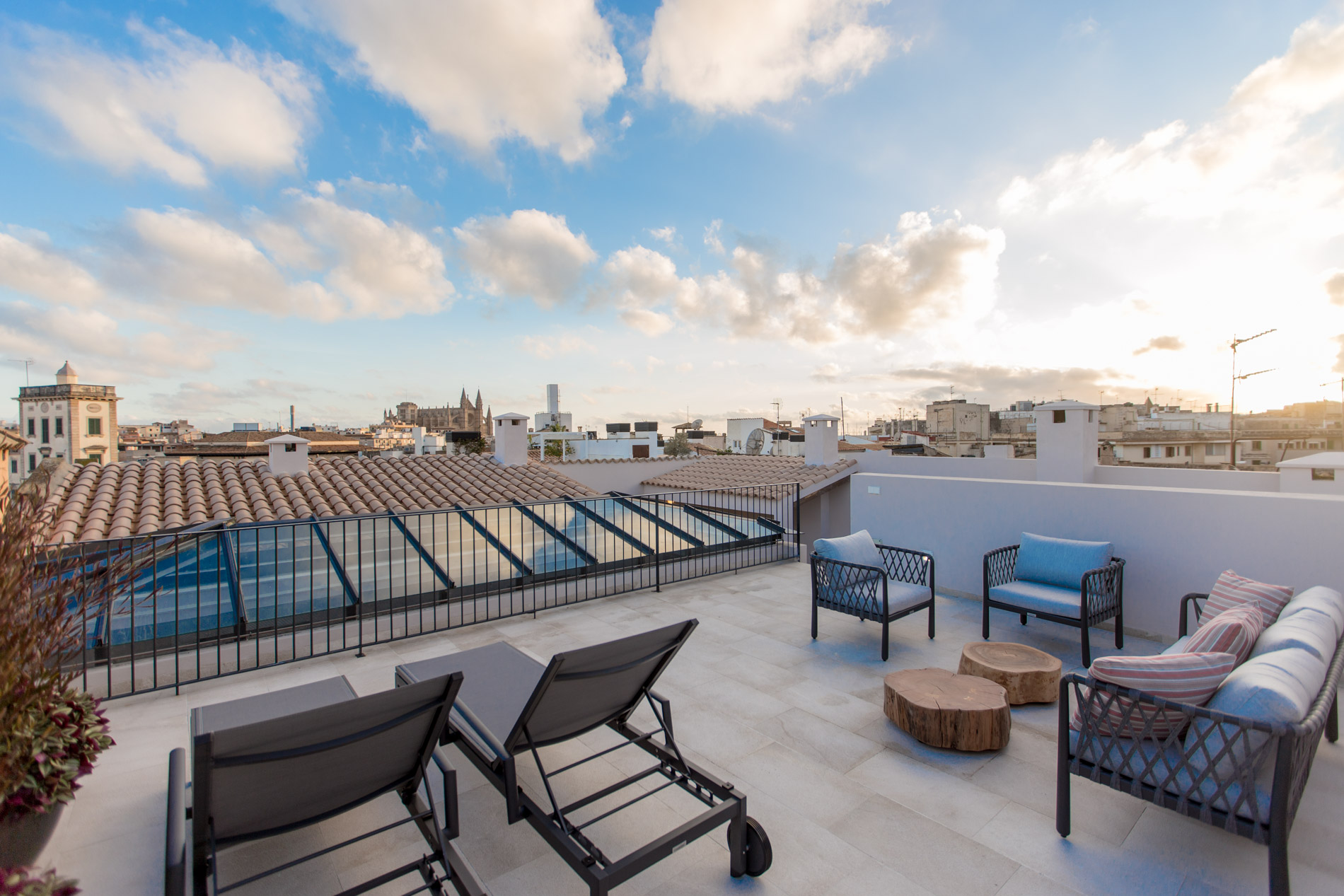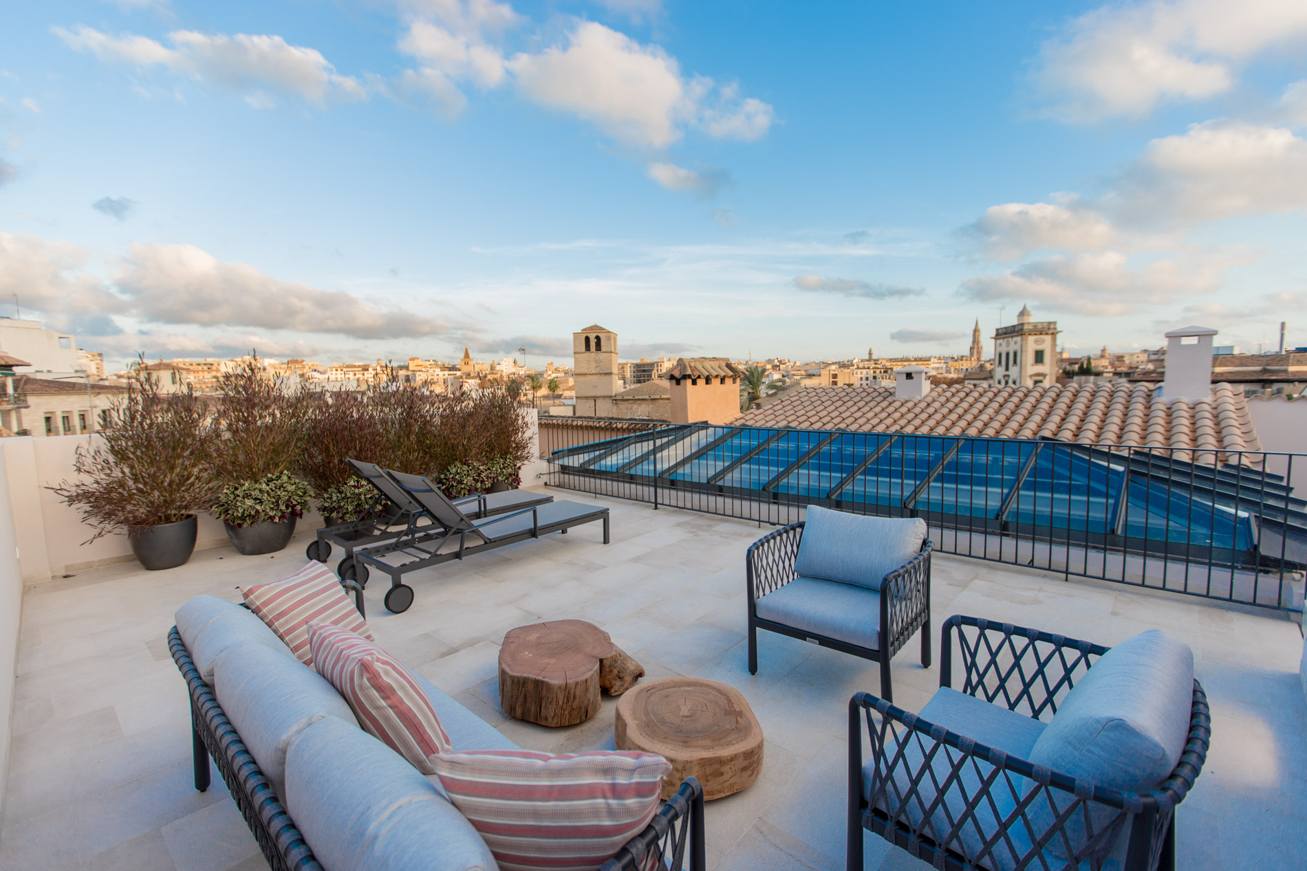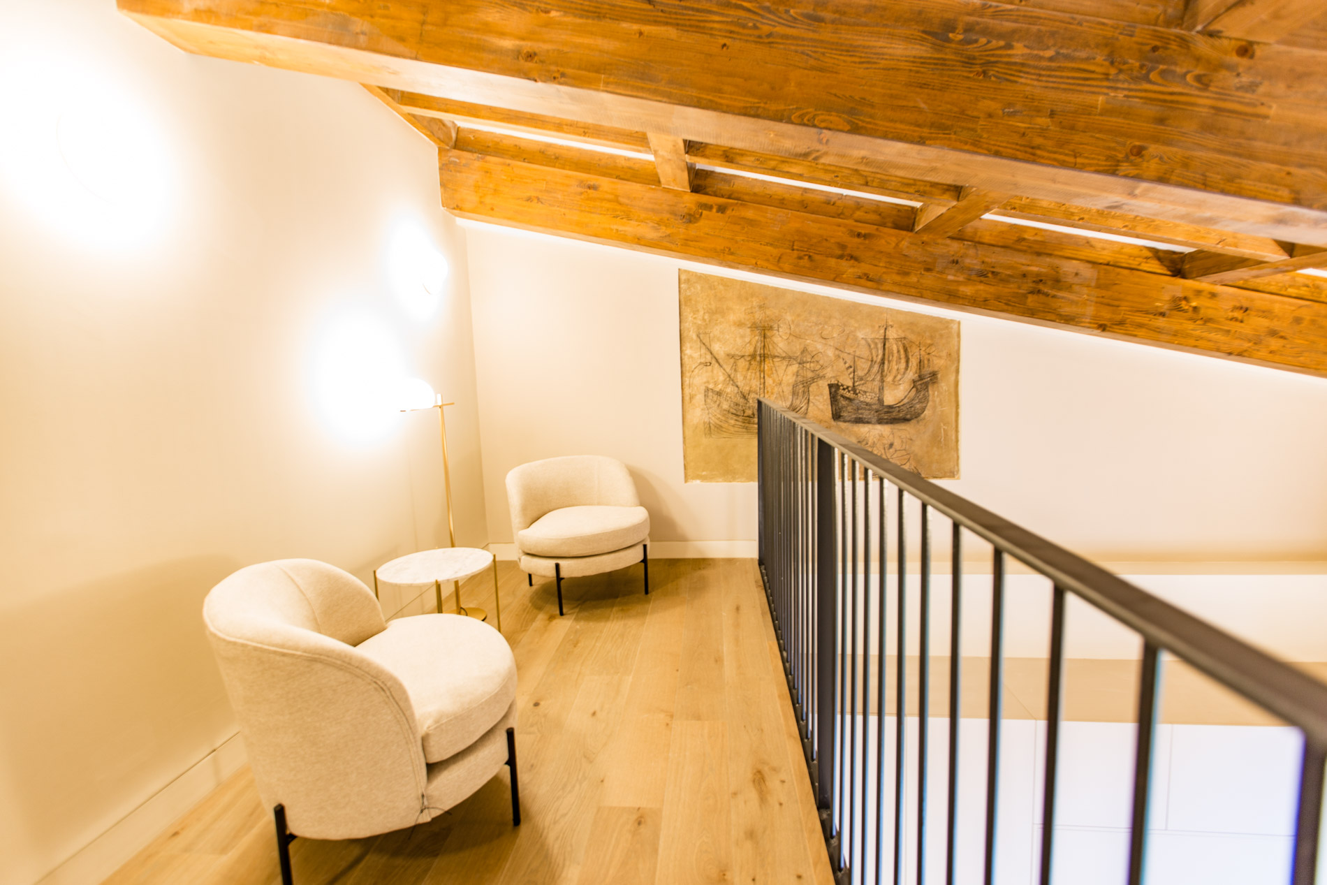 S'ARTISTA, ático duplex dentro del Palacio Can Serra Cavallería en el Casco antiguo de Palma en modalidad de alquiler de larga temporada en este palacete del siglo XIV. Vive en un Palacio del alquiler y experimenta la historia y disfruta de los extras comunitarios exclusivos que la vivienda aporta: spa, bodega, apartamento comunitario.