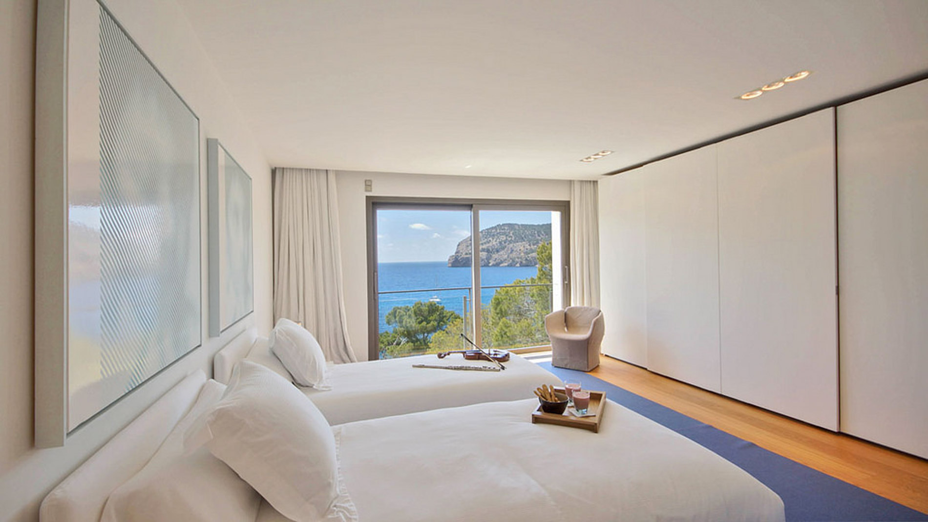 Desde el primer instante, la vivienda transmite una sensación de paz y sofisticación. Las vistas al mar, completamente despejadas, acompañan al visitante desde la entrada y se convierten en las auténticas protagonistas, presentes desde casi todas las estancias. La conexión directa con el mar ofrece una experiencia única: despertar con el sonido de las olas, nadar en aguas cristalinas a solo unos pasos del jardín o disfrutar de puestas de sol irrepetibles desde la comodidad de la terraza. En la planta principal se encuentra un gran salón-comedor que se abre a una amplia terraza con orientación sur y vistas panorámicas al mar, ideal tanto para reuniones íntimas como para eventos sociales. La cocina, de la prestigiosa firma Bulthaup, equipada con electrodomésticos Gaggenau, combina tecnología de vanguardia con una estética impecable, perfecta para los amantes de la gastronomía. Un aseo de cortesía completa esta planta y da paso, a través de una elegante escalera, a la primera planta, donde se sitúa la impresionante suite principal. Este espacio ha sido concebido como un verdadero refugio privado, con baño doble para él y para ella, un vestidor generoso y una terraza privada que se convierte en un escenario perfecto para contemplar el horizonte. En la planta superior, tres dormitorios más, todos con baño en suite, ofrecen espacio y privacidad a familiares o invitados, cada uno con acceso a otra gran terraza desde la que se disfruta una perspectiva elevada y aún más espectacular del mar. El exterior de la propiedad está pensado para sacar el máximo partido al entorno mediterráneo: una piscina desbordante se funde visualmente con el mar, rodeada por amplias zonas de solárium y un jardín mediterráneo perfectamente integrado en el paisaje. El acceso privado al mar es un privilegio poco común en la isla, que convierte esta vivienda en una oportunidad realmente excepcional. MallorcaSite, su agencia inmobiliaria en Mallorca, recomienda esta propiedad por su ubicación privilegiada en Camp de Mar y sus espectaculares vistas al mar.