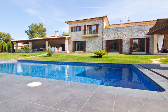 Espectacular villa con acabados de inmejorable calidad, amplia, muy luminosa y combinado estilo rústico con las modernidades de hoy en día. La casa cuenta con grandes ventanales que le dan mucha luminosidad. Localizada en la urbanización de Nova Santa Ponsa a 18 Km. de Palma, junto a la zona de Campos de Golf y del nuevo puerto ampliado de Port Adriano. En la planta baja se encuentra un vestíbulo. A mano derecha del recibidor hay un gran despacho. En frente hay un gran salón con chimenea con acceso a uno de los 2 porches con los que cuenta la vivienda. A un lado del salón tenemos el comedor y una amplia cocina (con lavadero y despensa) totalmente amueblada que dan a otro gran porche con cocina exterior que da a la piscina y el jardín. Al otro lado del recibidor, se encuentran tres amplios dormitorios con baño, vestidor y acceso al jardín. En la primera planta encontramos dos grandes suites muy espaciosas. Ambas cuentan con baño en suite y acceso a una amplia terraza con bonitas vistas. El dormitorio principal cuenta con baño en suite, sala de estar y vestidor, así como acceso a otra terraza privada. MallorcaSite, su agencia inmobiliaria en Mallorca, recomienda esta propiedad por su ubicación, su estilo y sus calidades.
