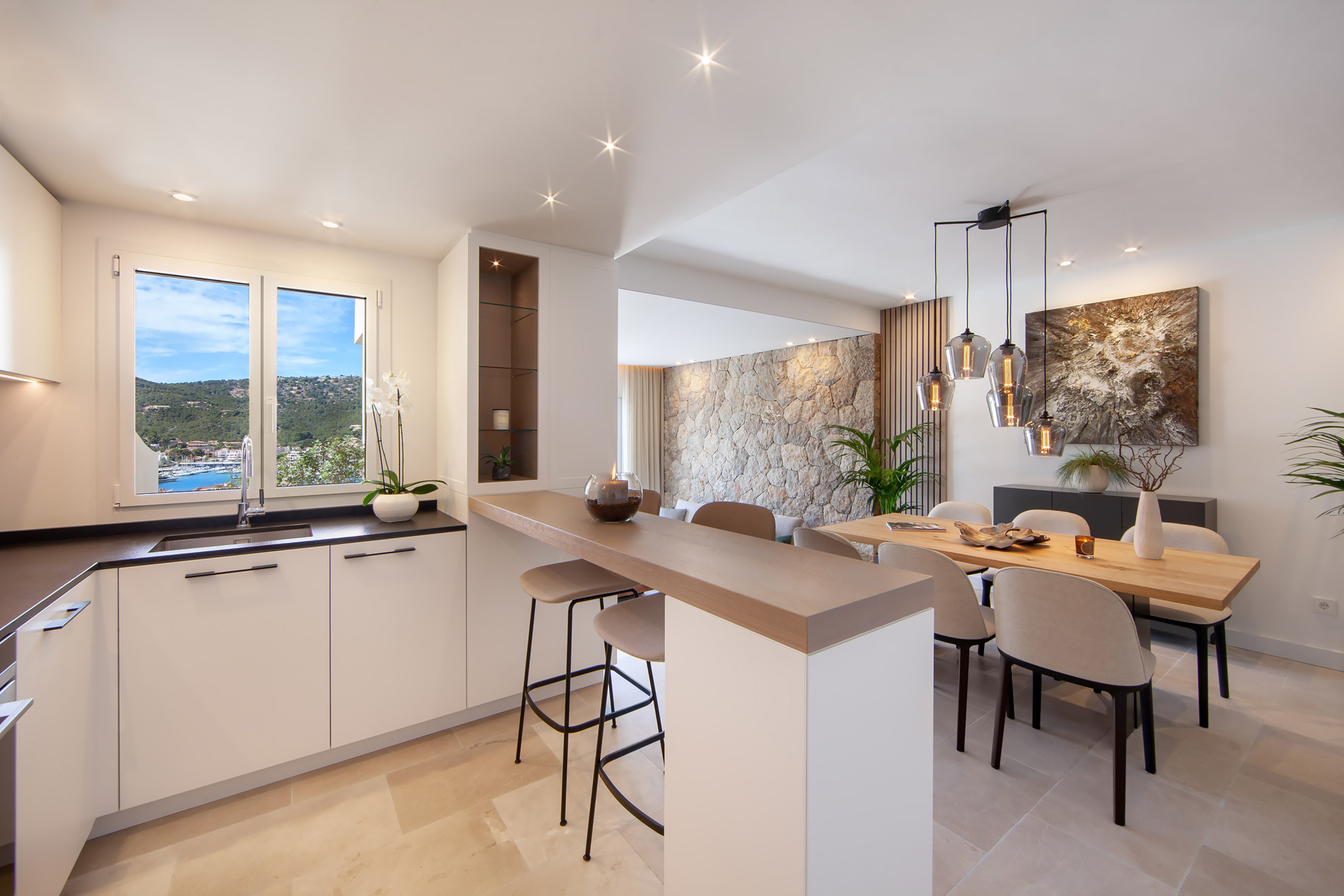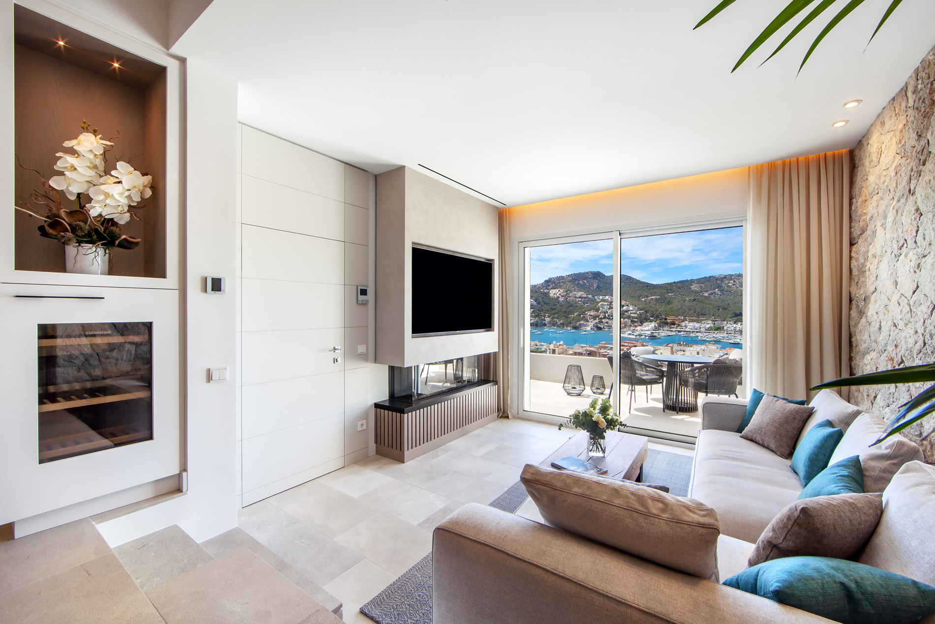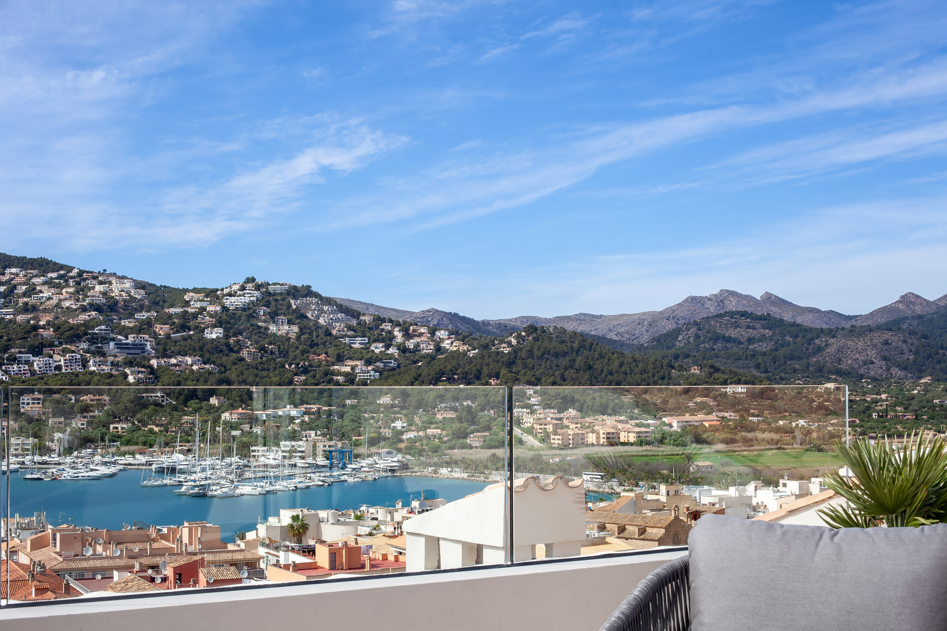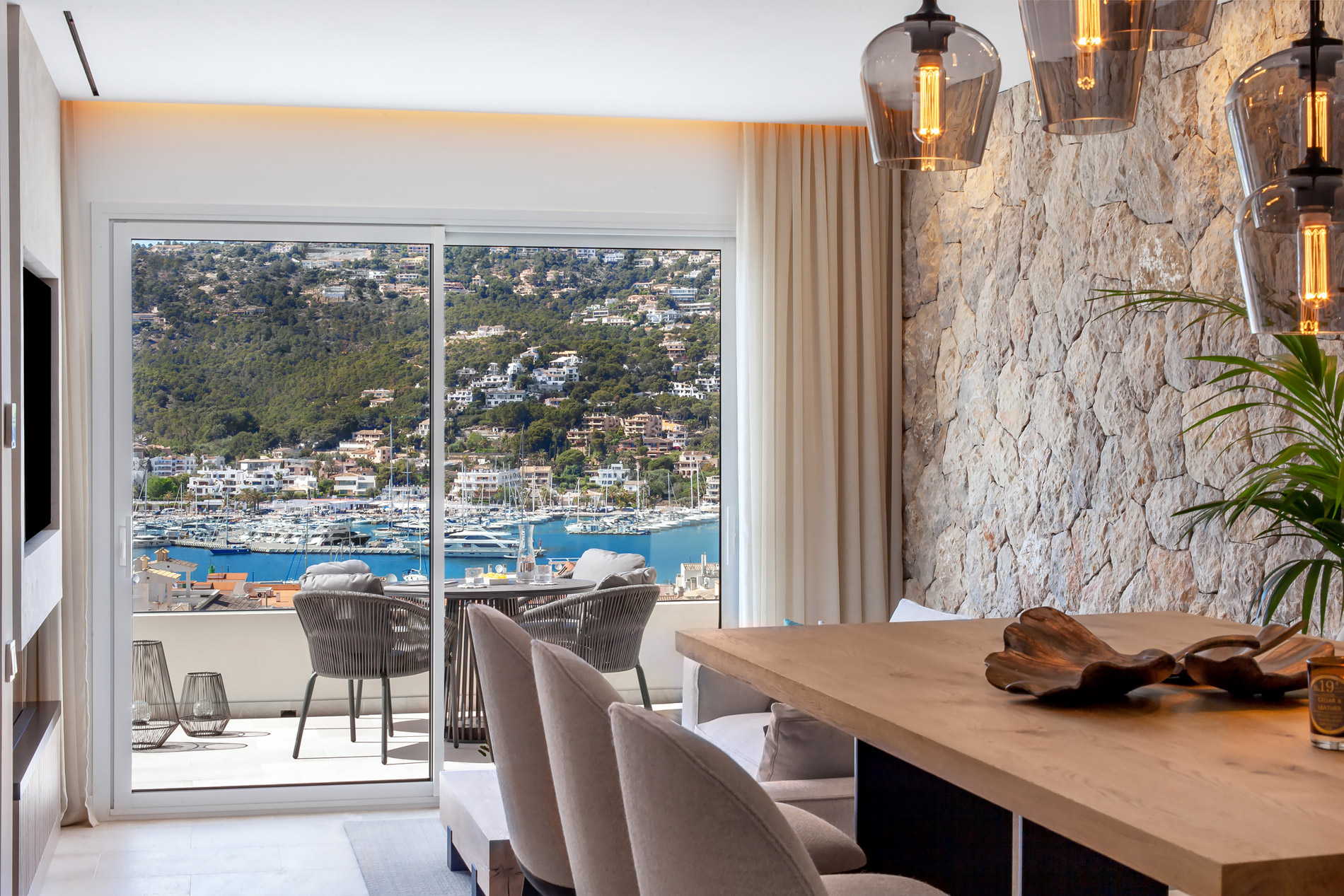 El sofisticado y exclusivo puerto deportivo de Port d'Andratx está justo enfrente de su puerta y el centro con sus restaurantes, bares, cafeterías y tiendas es fácilmente accesible en unos pocos minutos a pie. A Palma o al aeropuerto son solo 25-35 minutos.Una magnífica casa adosada recientemente renovada en el moderno y elegante Puerto de Andratx. Esta casa adosada esconde una armonía perfectamente equilibrada de diseño moderno contemporáneo y características mediterráneas rústicas para esa sensación única de vacaciones. Su arquitectura minimalista es vanguardista y brinda relajación y tranquilidad. Una casa adosada realmente llamativa, con vistas panorámicas al mar sobre todo el puerto deportivo, el pueblo de Andratx y la sierra de Tramuntana.