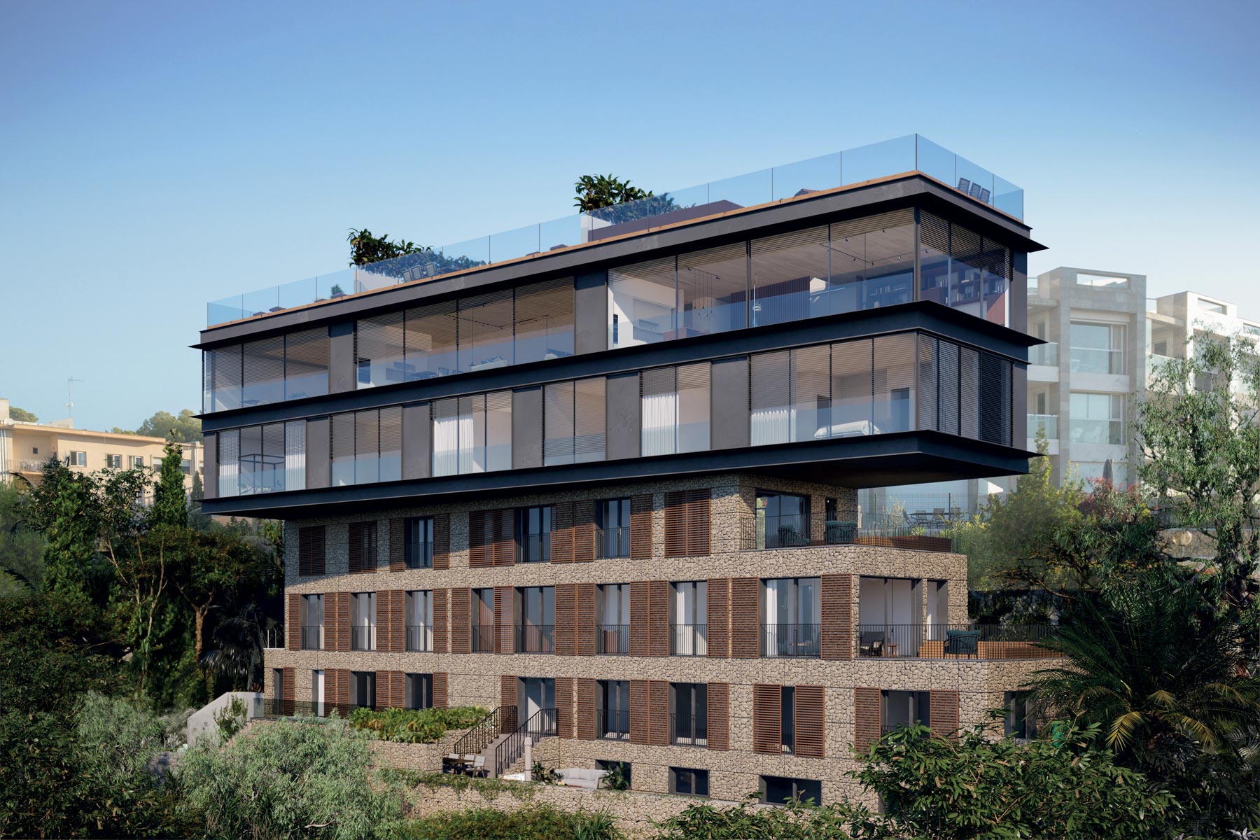 Ático de diseño interior nórdico con increíbles vistas al mar Mediterraneo, en Cala Mayor. El icónico diseño arquitectónico  destaca en la costa panorámica como una expresión moderna que conecta a sus residentes con el Mediterráneo. La forma y la orientación del edificio, las ventanas del suelo al techo y el diseño de sus terrazas tienen como objetivo optimizar esta conexión. Las plantas inferiores, cuentan con frondosos jardines con un claro estilo mallorquín.  La ubicación en Cala Major proporciona un fácil acceso a todo lo que Palma tiene para ofrecer, mientras que el Mediterráneo se encuentra a sus pies.  La propiedad ofrecen una vida de ensueño: desde nuestros conceptos de diseño hasta la innovación arquitectónica y todos los materiales de alta calidad. Se han reinterpretado los materiales locales para un uso moderno, funcionando dentro de la gran extensión de áreas de estar de planta abierta. Este proyecto es el lujo mediterráneo en su forma más moderna. Este es tu hogar, a pocos minutos de la cosmopolita Palma, en su zona costera más próxima, Cala Mayor.  MallorcaSite, su agencia inmobiliaria en Mallorca, le recomienda esta propiedad por su diseño, por las vistas, por su amplitud, por su proximidad a la playa y a Palma.