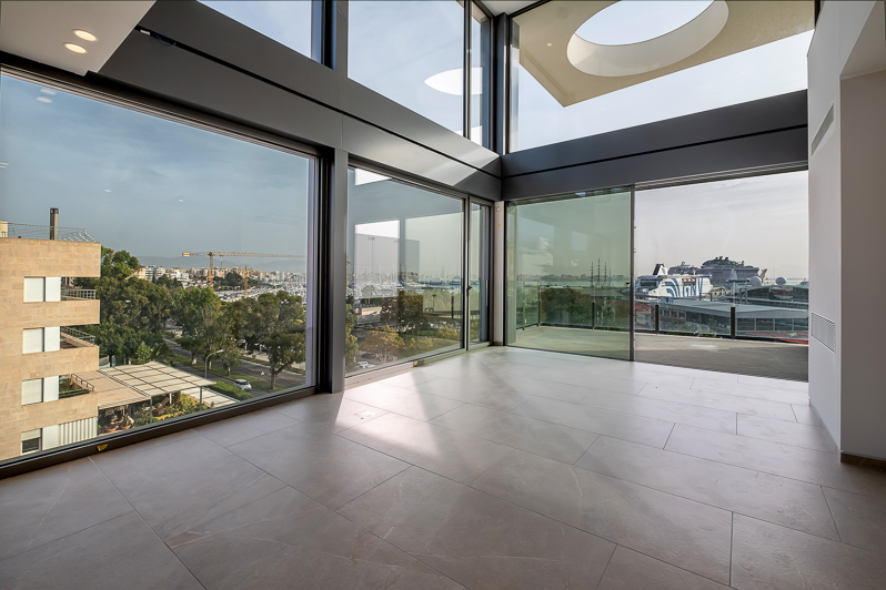 Este complejo establecerá nuevos estándares en el mercado inmobiliario de lujo en la capital de Mallorca debido a su diseño especial y los materiales seleccionados. La forma asimétrica del edificio se caracteriza por una fachada de vidrio de alta calidad y un revestimiento de piedra especial. El equipamiento de cada apartamento incluye su propia terraza, un garaje, una cocina de diseño de alta calidad, armarios empotrados, calefacción por suelo radiante, aire acondicionado h / c, un sistema domótico y mucho más. Cada ático dúplex tiene su propia terraza con piscina y absoluta privacidad y maravillosas vistas del puerto, la ciudad de Palma, el mar y la bahía.