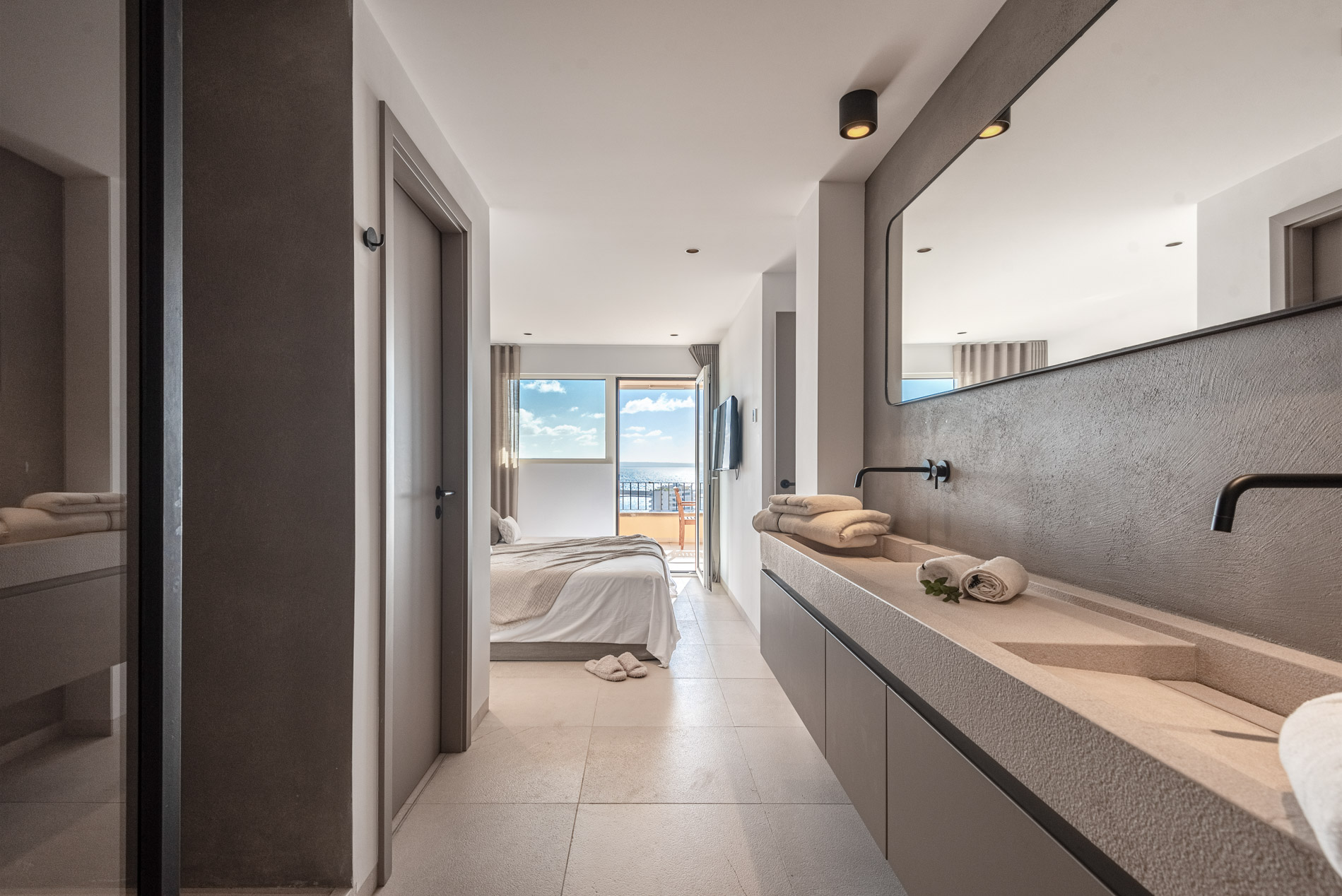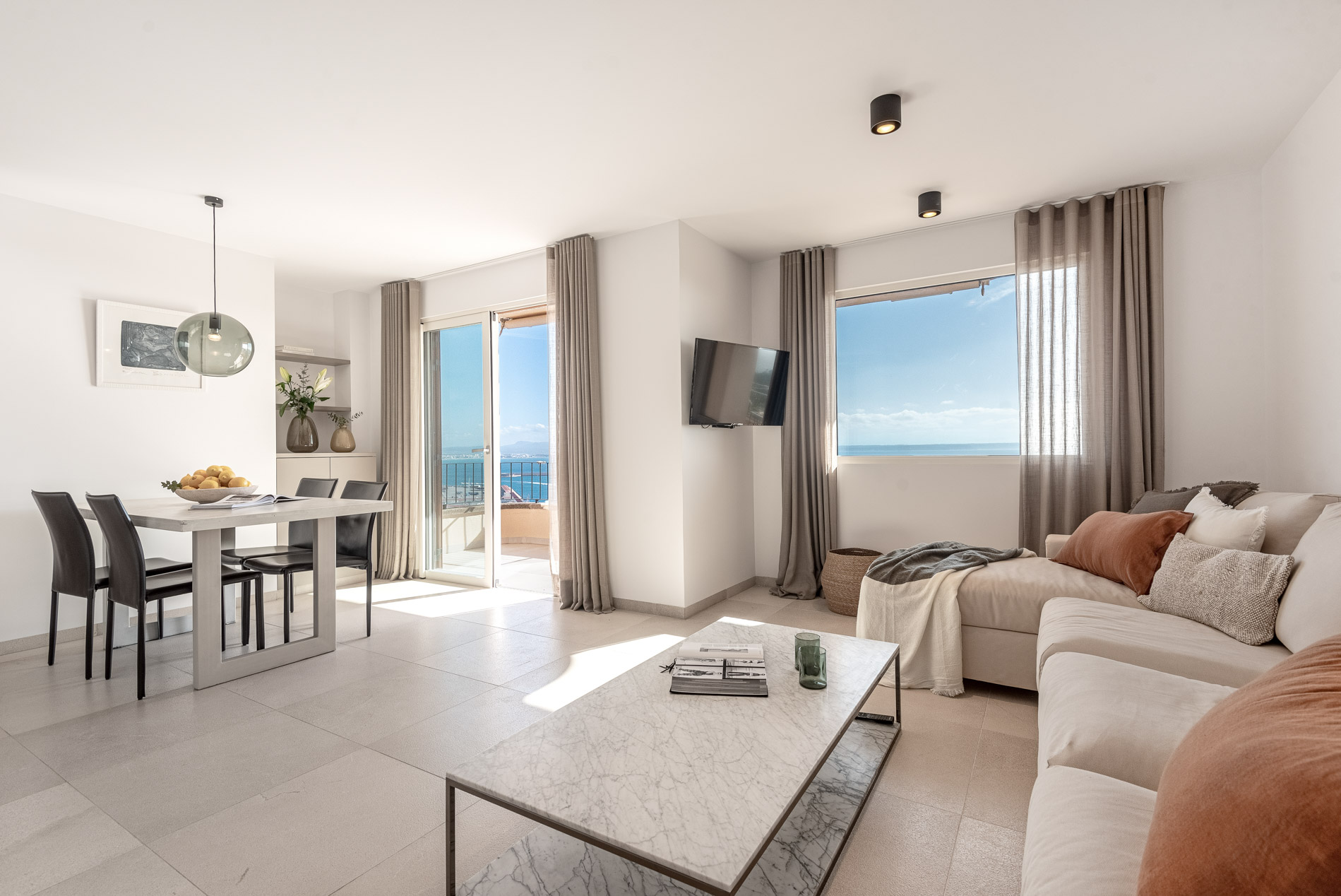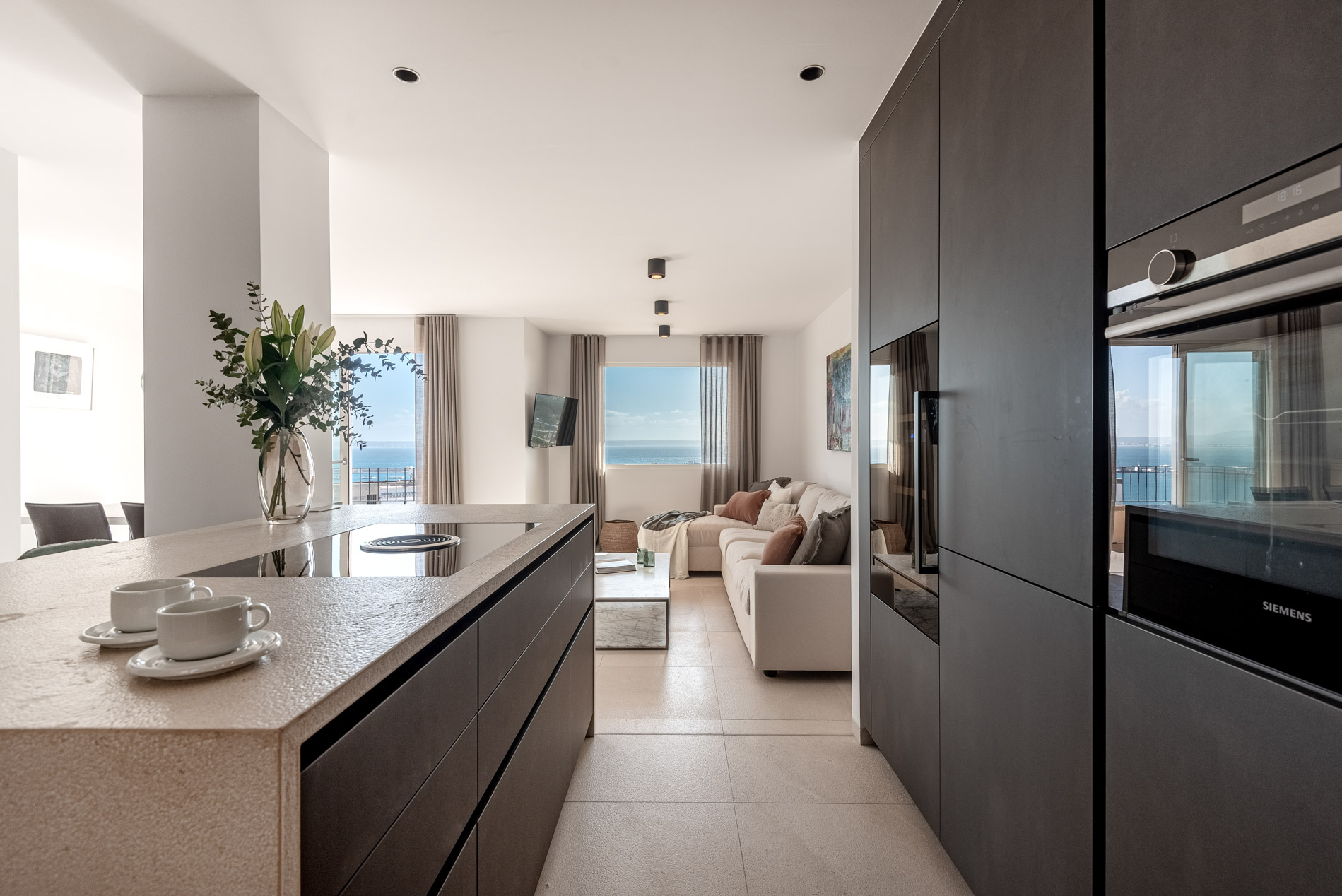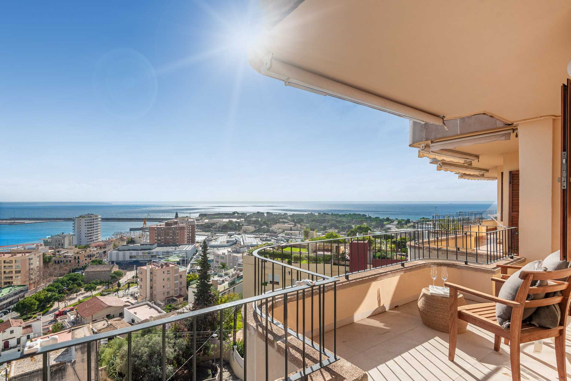 Este extraordinario ático se encuentra en la codiciada zona residencial de La Bonanova, una de las más exclusivas y tranquilas de Palma, dentro de una pequeña y cuidada comunidad de solo 18 viviendas que ofrece privacidad y confort al más alto nivel. Situado en una posición elevada, ofrece una impresionante vista panorámica de 180 grados que abarca el casco antiguo de Palma con su majestuosa catedral, el elegante puerto deportivo y el mar abierto más allá de la bahía – un espectáculo mediterráneo fascinante tanto de día como de noche, que alcanza su máxima belleza al atardecer. El ático destaca por sus calidades de alto nivel como calefacción por suelo radiante, aire acondicionado, ascensor moderno, sistema de alarma y domótica avanzada que combinan seguridad y confort. Una amplia piscina comunitaria invita al relax, mientras que una plaza de aparcamiento cubierta, un práctico trastero en la planta baja y detalles cuidadosamente pensados completan esta atractiva oferta. La Bonanova seduce por su entorno verde, ambiente tranquilo y familiar, y la cercanía al Parque Bellver, al colegio internacional Queen’s College, al puerto y al centro de Palma – una combinación perfecta de tranquilidad, exclusividad y vida urbana que convierte esta propiedad en una auténtica joya sobre los tejados de la ciudad. MallorcaSite, su agencia inmobiliaria en Mallorca, le recomienda esta propiedad por sus vistas y su excelente reforma.