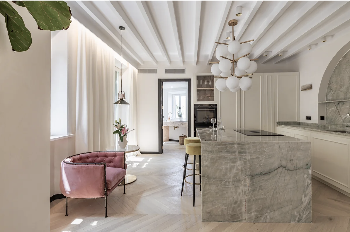 Al entrar en este extraordinario ático en la icónica La Rambla, prepárese para quedar completamente cautivado por las magníficas vistas panorámicas que lo envuelven sin obstáculos. Las amplias ventanas del apartamento no solo inundan el espacio con una abundancia de luz natural, sino que también lo integran sin problemas en el paisaje urbano vibrante, ofreciendo una experiencia de vida verdaderamente armoniosa. Cada día, al despertar con esta vista impresionante, se le recordará constantemente el extraordinario privilegio de residir en esta ubicación privilegiada. Este apartamento meticulosamente diseñado es una obra maestra en todos los sentidos. Dos chimeneas, adornadas con exquisito mármol rosa y ónix verde, irradian un aire de grandeza atemporal que no es menos que impresionante. La devoción al detalle es evidente en cada rincón, con opulentos suelos de roble en espiga bajo sus pies y paredes pintadas de piedra caliza que emanan una atmósfera tranquila. La artesanía en exhibición es verdaderamente inigualable, con carpintería hecha a mano que eleva el espacio a un nivel completamente nuevo de vida de lujo. Enclavado en un edificio de mediados del siglo XIX, este ático combina elegantemente el encanto de la tradición con las comodidades de la modernidad, convirtiéndolo en una propiedad única y deseable. Cada rincón de este apartamento da fe de un estilo de vida sofisticado que armoniza sin esfuerzo el atractivo histórico con la sofisticación contemporánea. Sin embargo, no es solo el apartamento lo que es verdaderamente excepcional; la ubicación en sí es destacada. La Rambla es famosa por su animado ambiente y aquí, se encontrará en el corazón mismo de todo. Las boutiques de alta gama y las tiendas de moda lo invitan a explorar el mundo de las delicias de las compras y los mejores restaurantes de Palma están a un tiro de piedra de su puerta, listos para saciar sus deseos gastronómicos. En resumen, este ático en esquina presenta una rara y codiciada oportunidad de ser dueño de un pedazo de la rica herencia de Palma. Con su ubicación privilegiada en La Rambla, las vistas hechizantes, los acabados suntuosos y la proximidad a las amenidades más excepcionales de la ciudad, esta residencia promete un estilo de vida que combina una elegancia inigualable con una comodidad incomparable. No pierda la oportunidad de llamar a esta casa verdaderamente extraordinaria la suya en una de las direcciones más buscadas de Palma. MallorcaSite, su agencia inmobiliaria en Mallorca, recomienda esta propiedad por su excelente ubicación y su impecable y completa renovación.