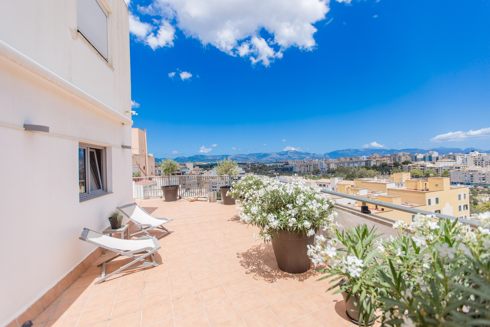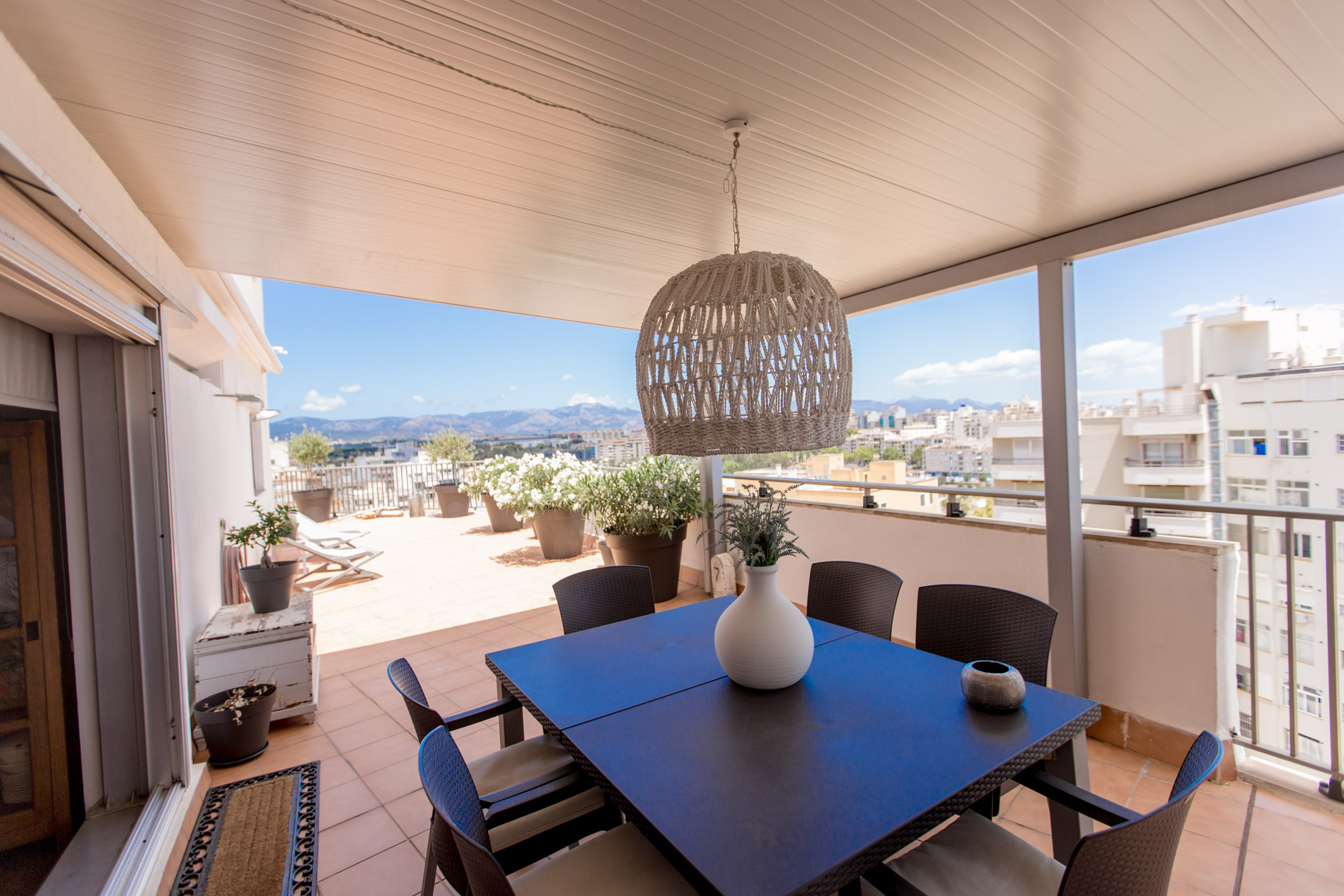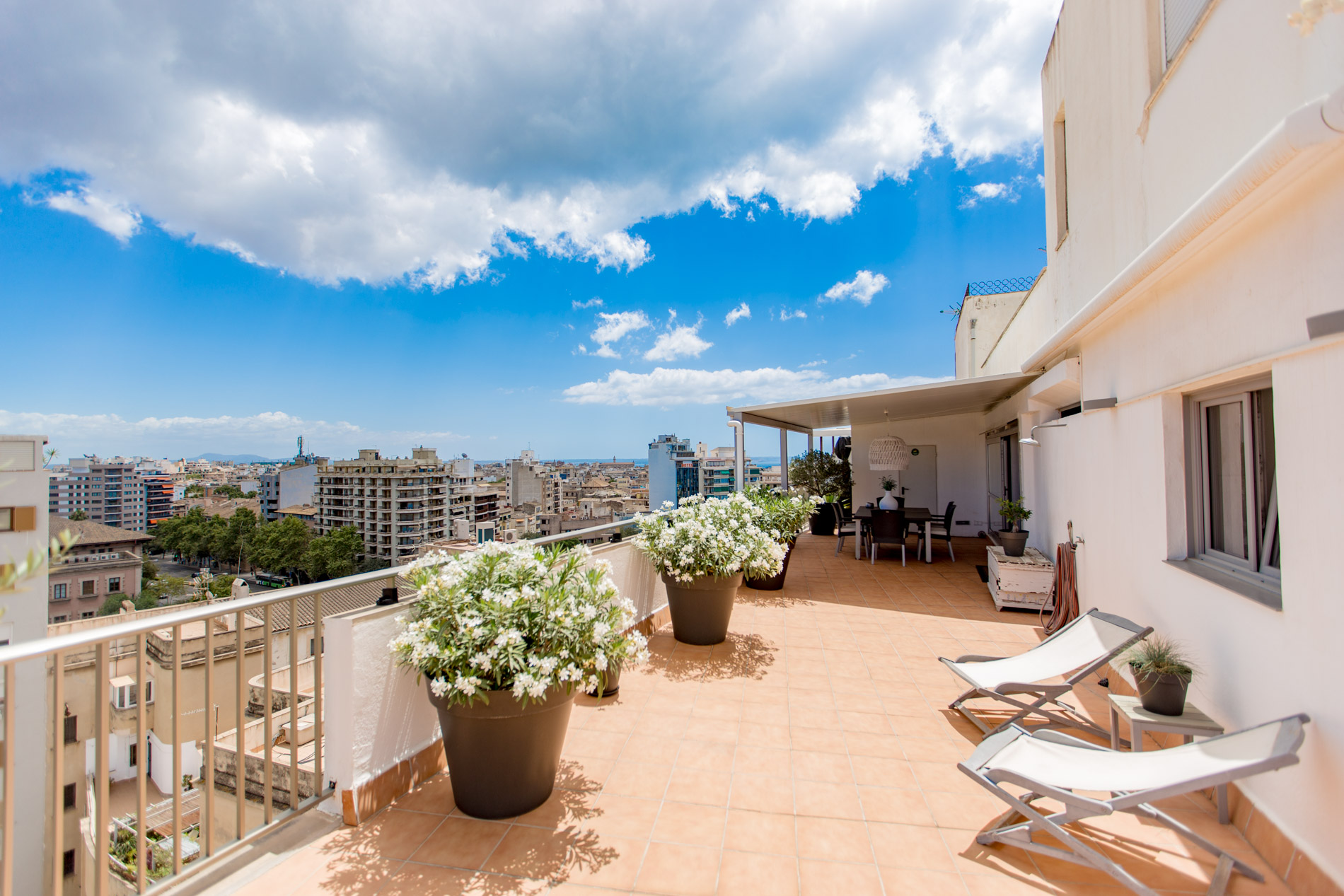 Descubre este ático excepcional con vistas espectaculares sobre Palma, estratégicamente ubicado a solo unos pasos del popular Paseo del Borne, Jaime III y el Paseo Marítimo.