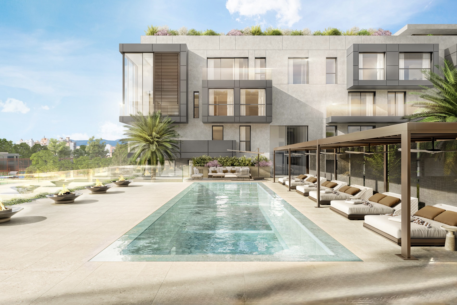 En lo alto de la ciudad, donde la luz y el cielo se encuentran, estos áticos redefinen la vida urbana con una mirada serena y contemporánea. Concebidos con líneas limpias, amplias terrazas privadas y ventanales panorámicos, cada vivienda invita a disfrutar del Mediterráneo desde una perspectiva elevada, abierta y luminosa. Disponibles en versiones de uno y dos dormitorios, los áticos se distinguen por su equilibrio entre diseño y funcionalidad. Las cocinas abiertas se integran con el salón y se prolongan hacia el exterior, creando un espacio fluido donde interior y terraza se funden en una experiencia de calma y libertad. La luz natural envuelve cada rincón, realzando los materiales nobles, las texturas suaves y los tonos cálidos que definen los interiores. Cada detalle refleja una elegancia sutil y una conexión profunda con el entorno. Los residentes disfrutan, además, de todos los espacios comunes del conjunto: piscina con fondo de cristal, spa con sauna y área de relajación, gimnasio Technogym, cine privado, simulador de golf y servicio de conserjería 24 horas. Una experiencia de bienestar completa, en el corazón más inspirador de Palma. Estos áticos representan la esencia del vivir mediterráneo: luminoso, sofisticado y naturalmente equilibrado. MallorcaSite recomienda estas viviendas por su diseño contemporáneo, su conexión con el paisaje y su manera única de disfrutar Palma desde las alturas.