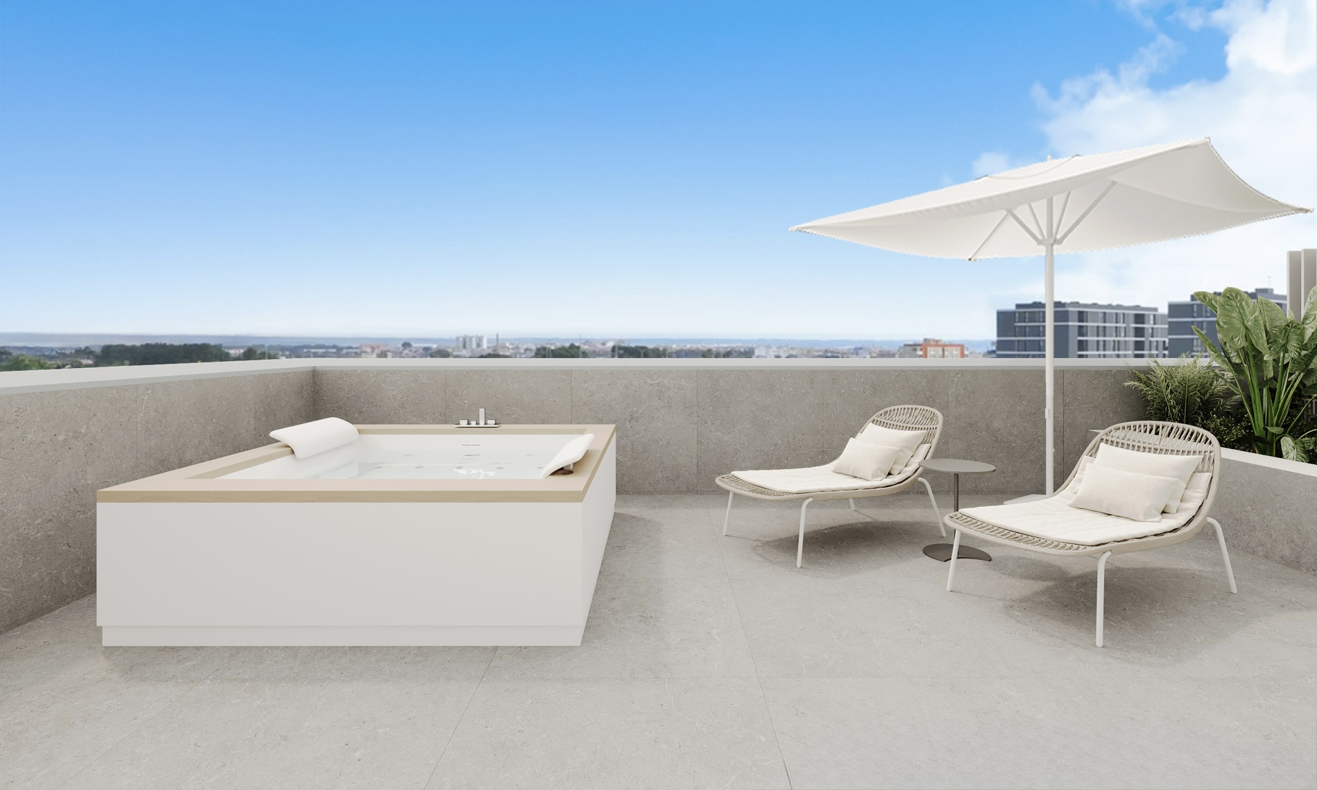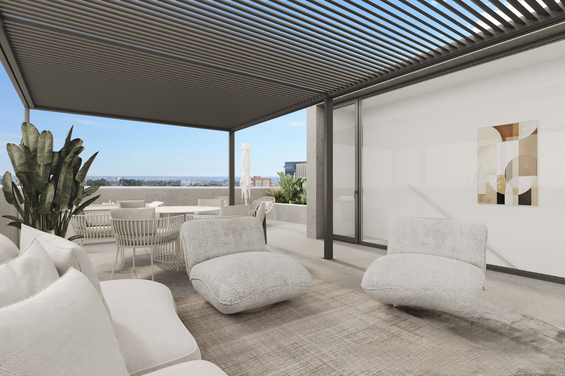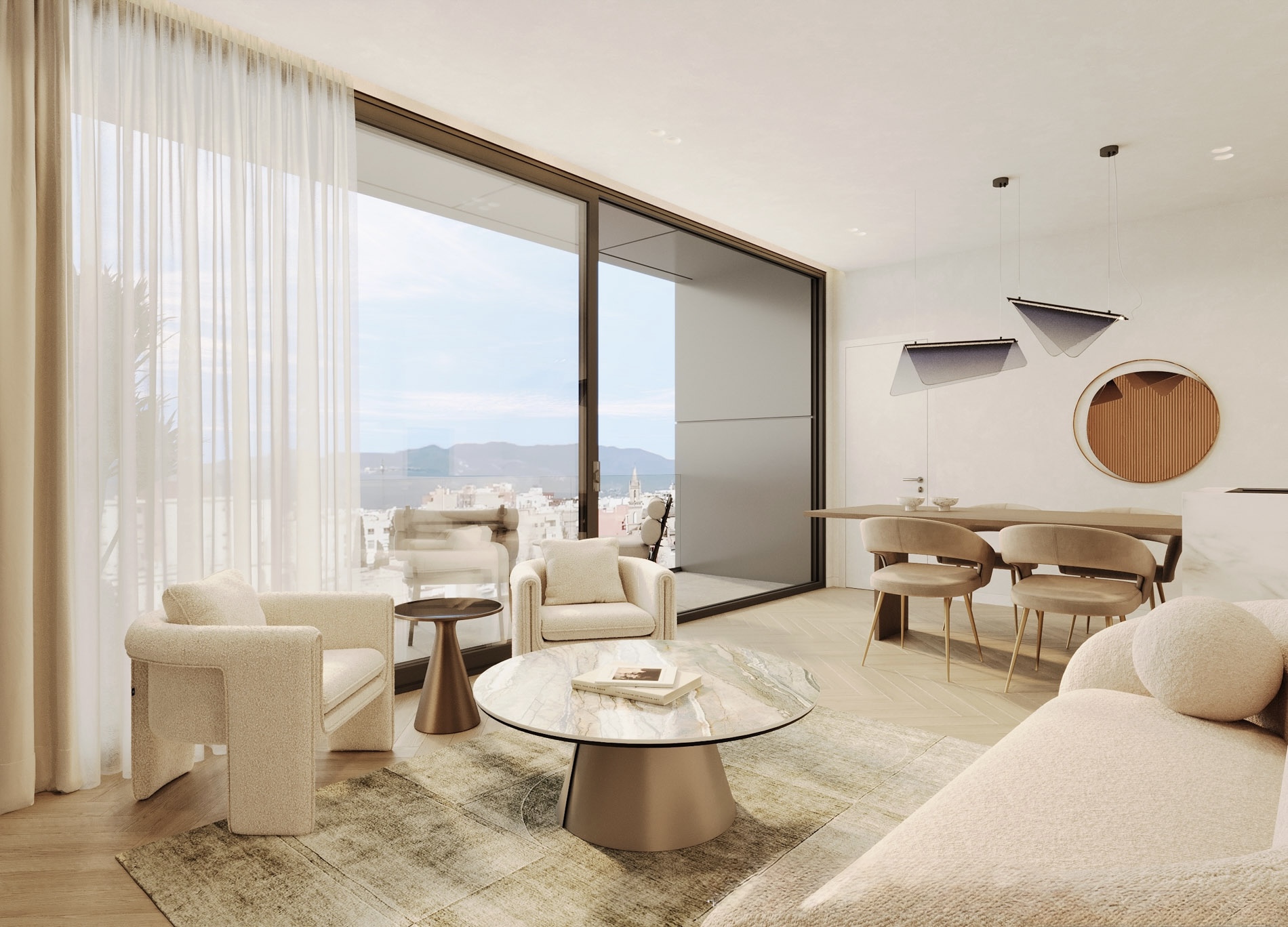 En lo alto de la ciudad, donde la luz y el cielo se encuentran, estos áticos redefinen la vida urbana con una mirada serena y contemporánea. Concebidos con líneas limpias, amplias terrazas privadas y ventanales panorámicos, cada vivienda invita a disfrutar del Mediterráneo desde una perspectiva elevada, abierta y luminosa.