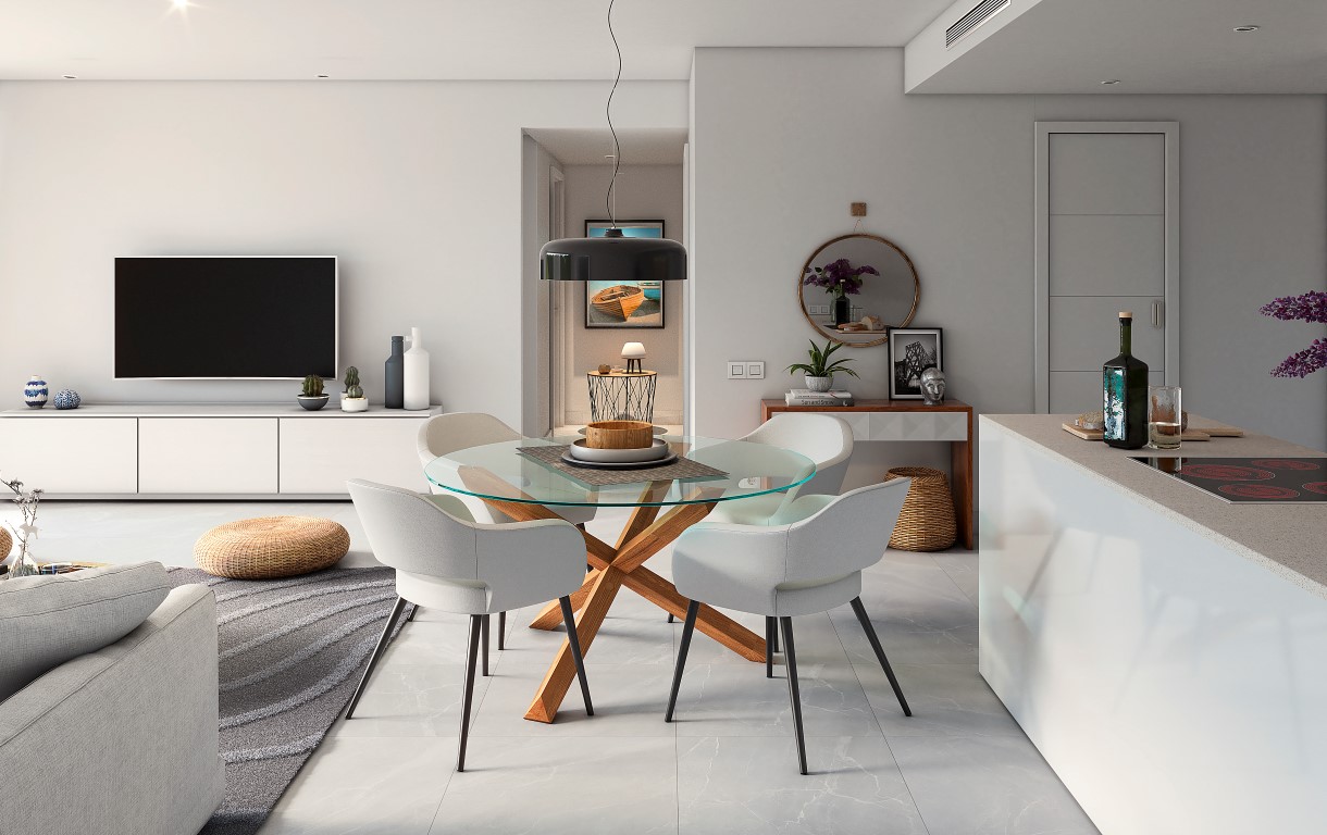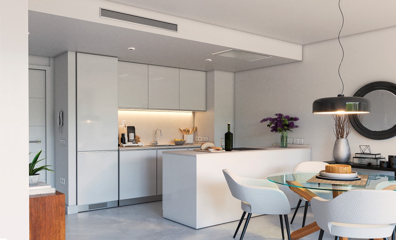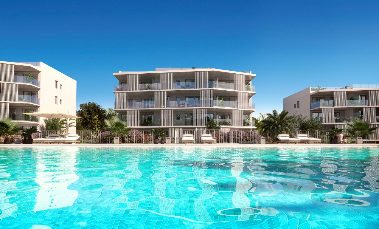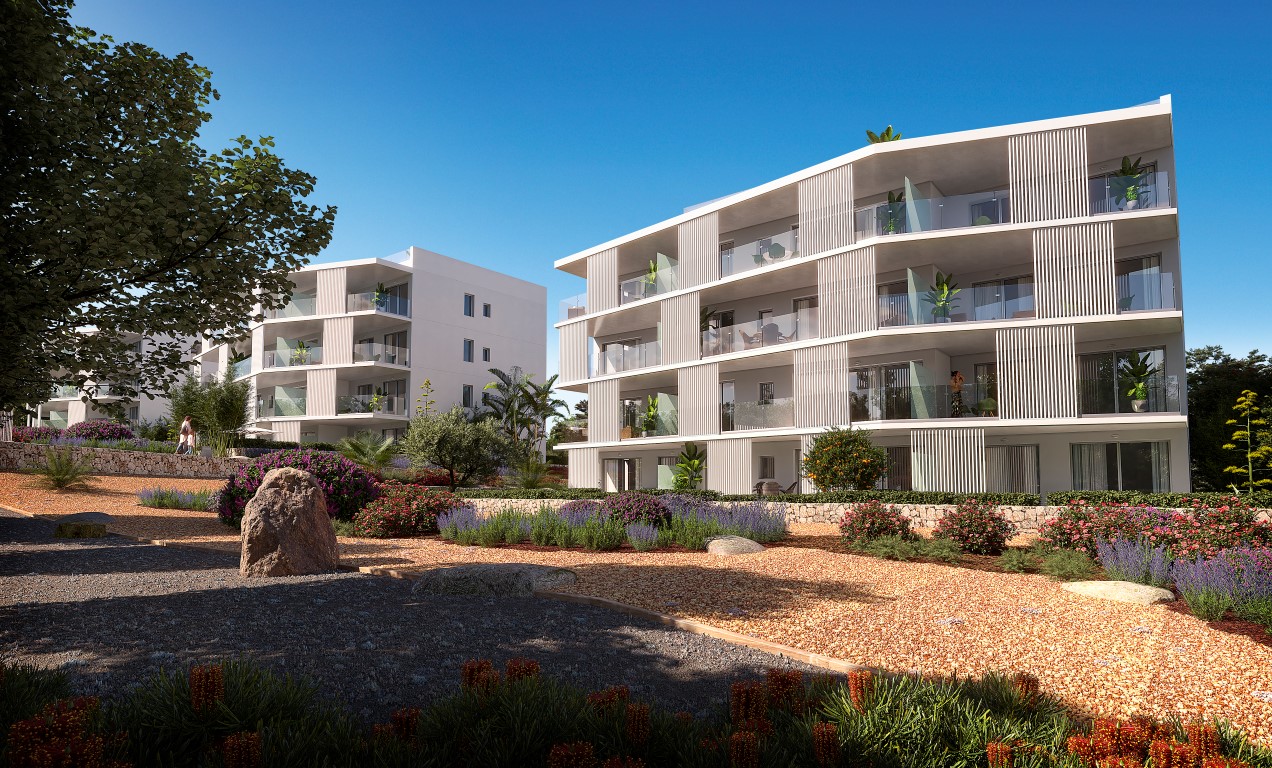 Este impresionante desarrollo ofrece 36 apartamentos modernos con una arquitectura de vanguardia, caracterizados por líneas limpias y blancas y un diseño elegante. Rodeado de jardines meticulosamente paisajísticos, el complejo también cuenta con una gran piscina comunitaria, proporcionando el lugar perfecto para relajarse y disfrutar del sol mediterráneo.