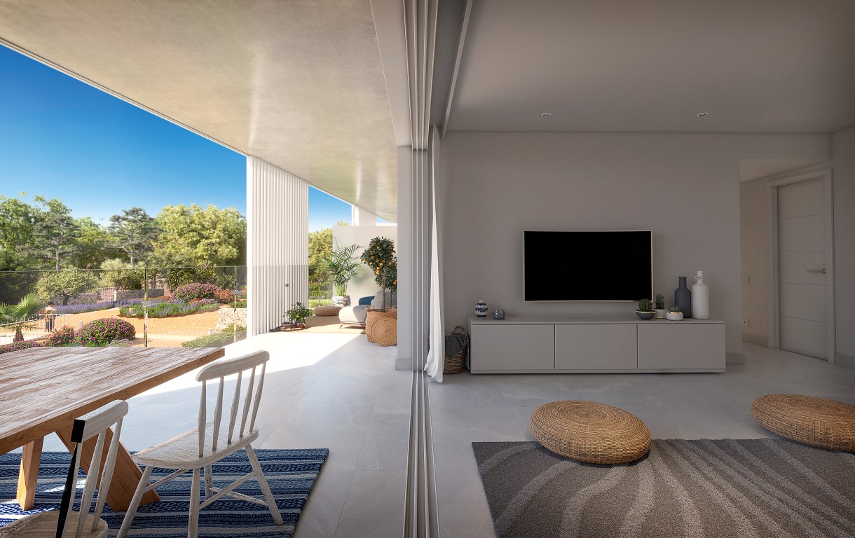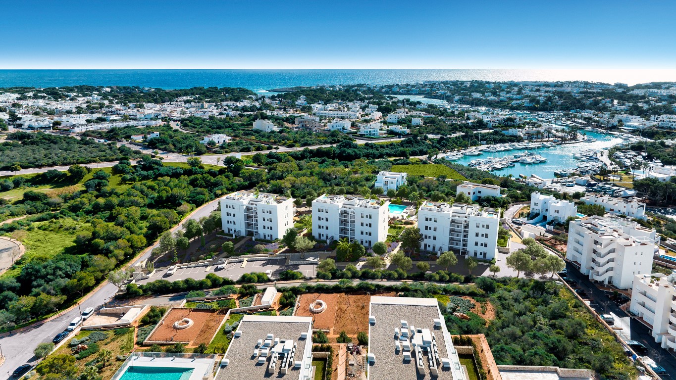 Este impresionante desarrollo ofrece 36 apartamentos modernos con una arquitectura de vanguardia, caracterizados por líneas limpias y blancas y un diseño elegante. Rodeado de jardines meticulosamente paisajísticos, el complejo también cuenta con una gran piscina comunitaria, proporcionando el lugar perfecto para relajarse y disfrutar del sol mediterráneo. Los apartamentos de la planta baja cuentan con amplias terrazas con porche y jardín privado, mientras que las viviendas en los niveles superiores ofrecen generosas terrazas con cautivadoras vistas al puerto deportivo de Cala d’Or o a las zonas comunes. Para aquellos que buscan algo especial, los áticos disponen de acceso privado a la azotea, que incluye un solárium y la preinstalación para una piscina privada. Cada residencia está diseñada para maximizar la luz y el espacio, con una sala de estar y comedor de concepto abierto que se integra perfectamente con la cocina. Los dos dormitorios dobles y dos baños, uno de ellos en suite, garantizan comodidad y privacidad. Los residentes también se beneficiarán de un espacio de estacionamiento exterior asignado y un trastero en el sótano. Las cocinas están elegantemente diseñadas, con muebles de tonos claros, una encimera complementaria y electrodomésticos de alta calidad, que incluyen una placa de inducción, horno y campana extractora. En los baños, encontrarás características elegantes como lavabos simples o dobles en unidades de madera suspendidas, grifos empotrados y duchas amplias con platos de ducha a ras de suelo. En todas las viviendas se han elegido baldosas cerámicas de gran formato de Saloni para un aspecto refinado y coherente, que continúa sin interrupciones en las terrazas en su versión antideslizante. El control climático se gestiona a través de un sistema altamente eficiente de bomba de calor de fuente de aire, con aire acondicionado distribuido a través de conductos discretos en el techo, mientras que el agua caliente doméstica también se produce mediante una bomba de calor. Ubicado en la idílica costa sureste de Mallorca, en la codiciada zona de Cala d'Or, este desarrollo es ideal para los amantes del mar y las actividades al aire libre. A pocos pasos del puerto deportivo de Cala d’Or y el prestigioso Club Náutico, es una ubicación privilegiada para disfrutar de la cocina mediterránea en restaurantes de primer nivel y terrazas pintorescas cercanas. Para los amantes del golf, el campo de golf de 18 hoyos Vall d’Or está a solo un corto trayecto en coche, ofreciendo la oportunidad de disfrutar de una ronda en esta hermosa parte de la isla. Además, la región alberga numerosas calas espectaculares, como Cala Mondragó, Cala Esmeralda y Caló d’Es Pou, con sus aguas cristalinas y su belleza natural serena, perfectas para pasar días tranquilos junto al mar. MallorcaSite, su agencia inmobiliaria en Mallorca, recomienda esta propiedad por su cercanía al mar y a los restaurantes, y por ser de nueva construcción.