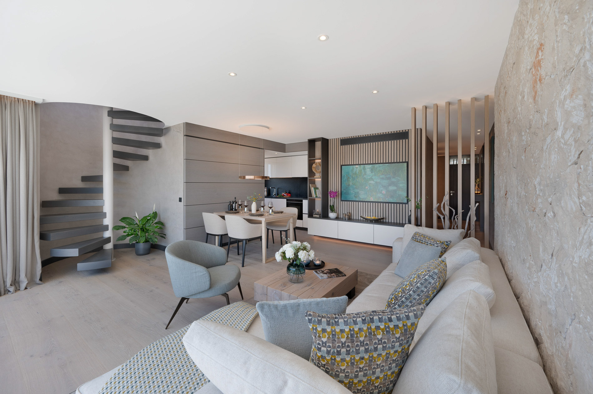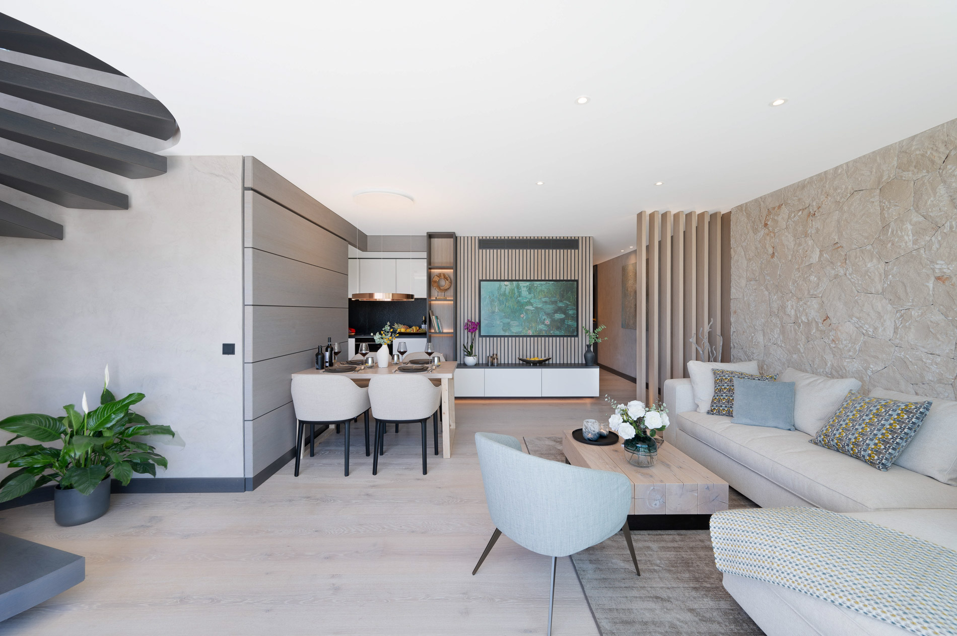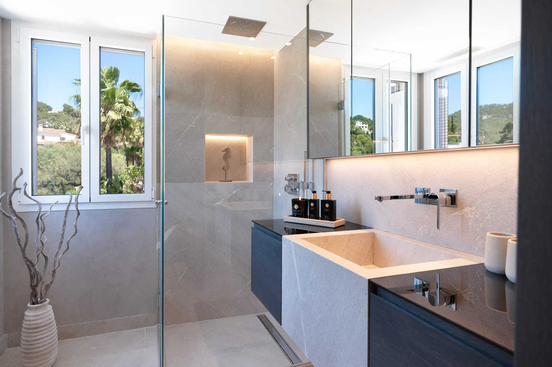 Vistas despejadas / Terraza / Solarium / Aire acondicionado / Calefacción por suelo radiante / Ventanas con doble seguridad / Parking / Sistema sonido Sonos / Suelos de piedra natural