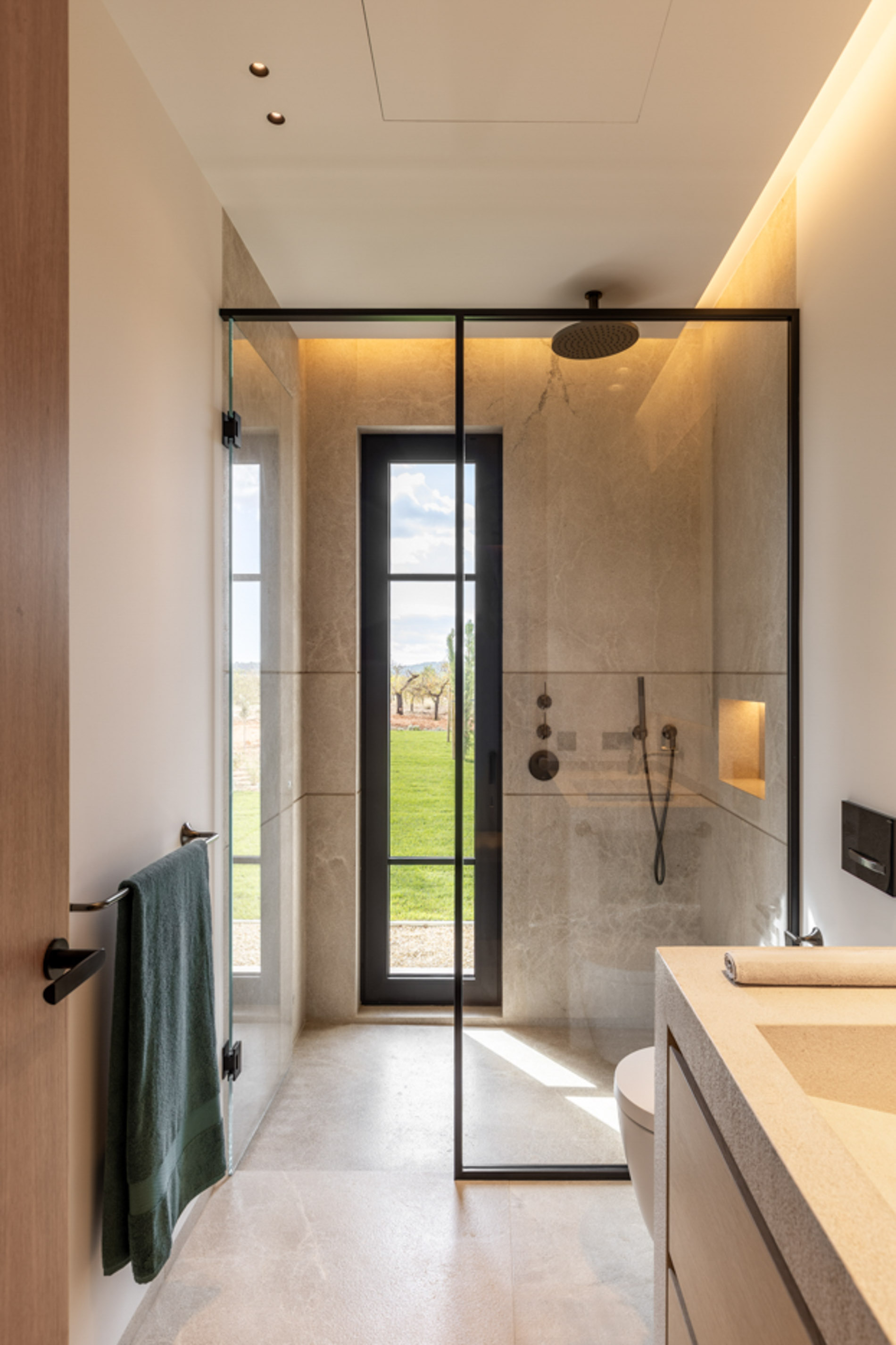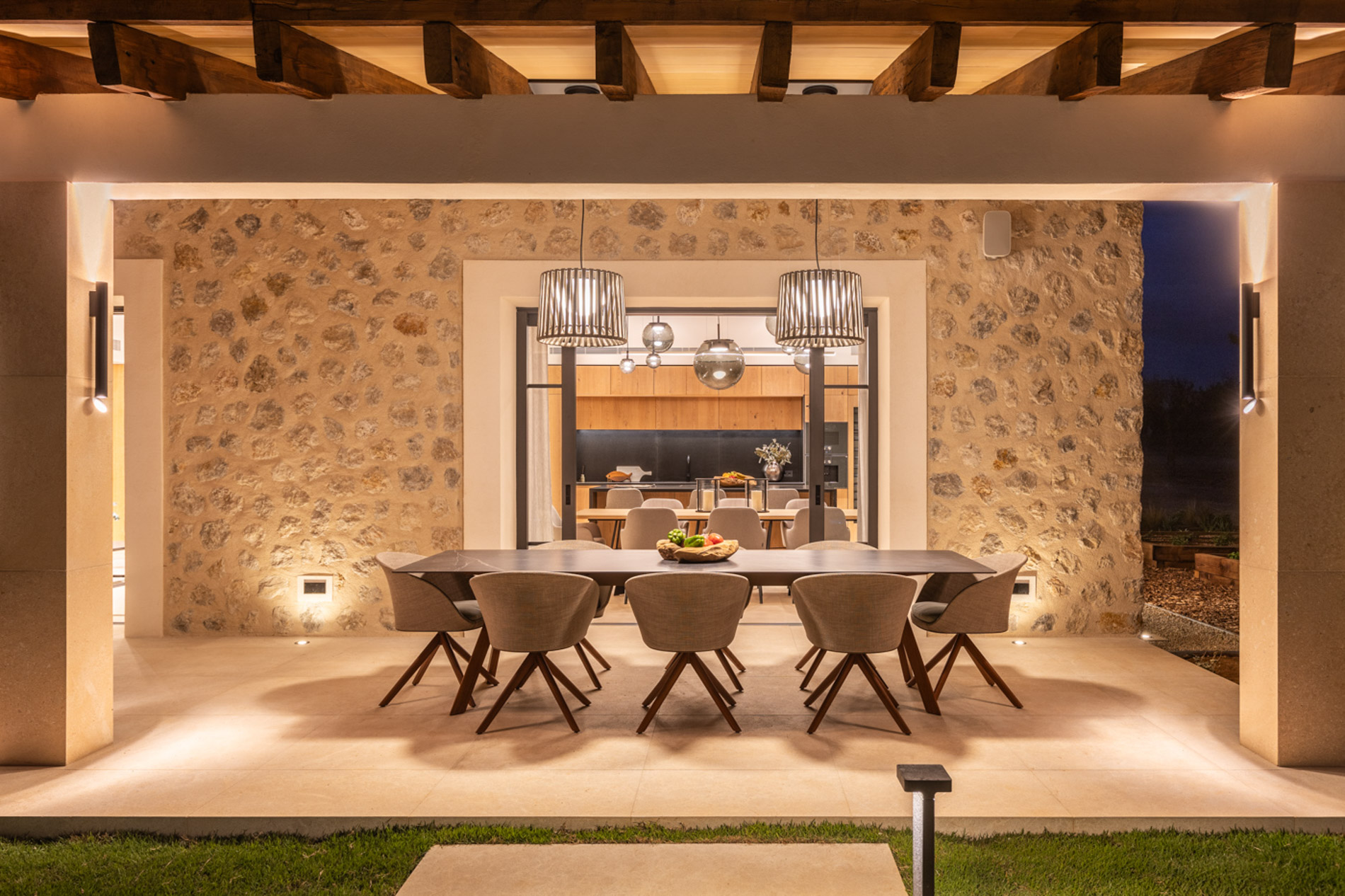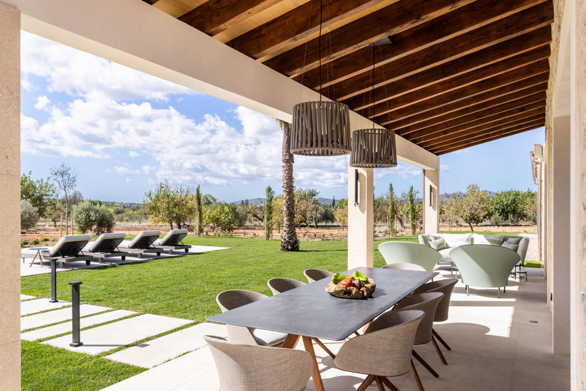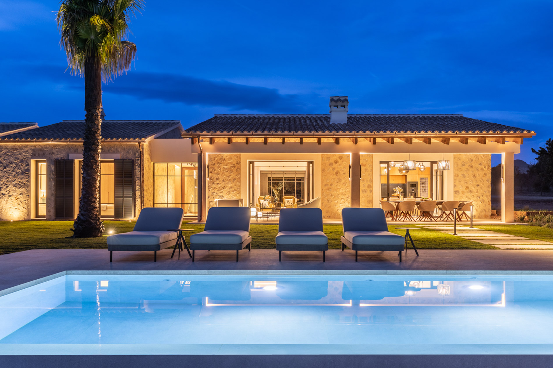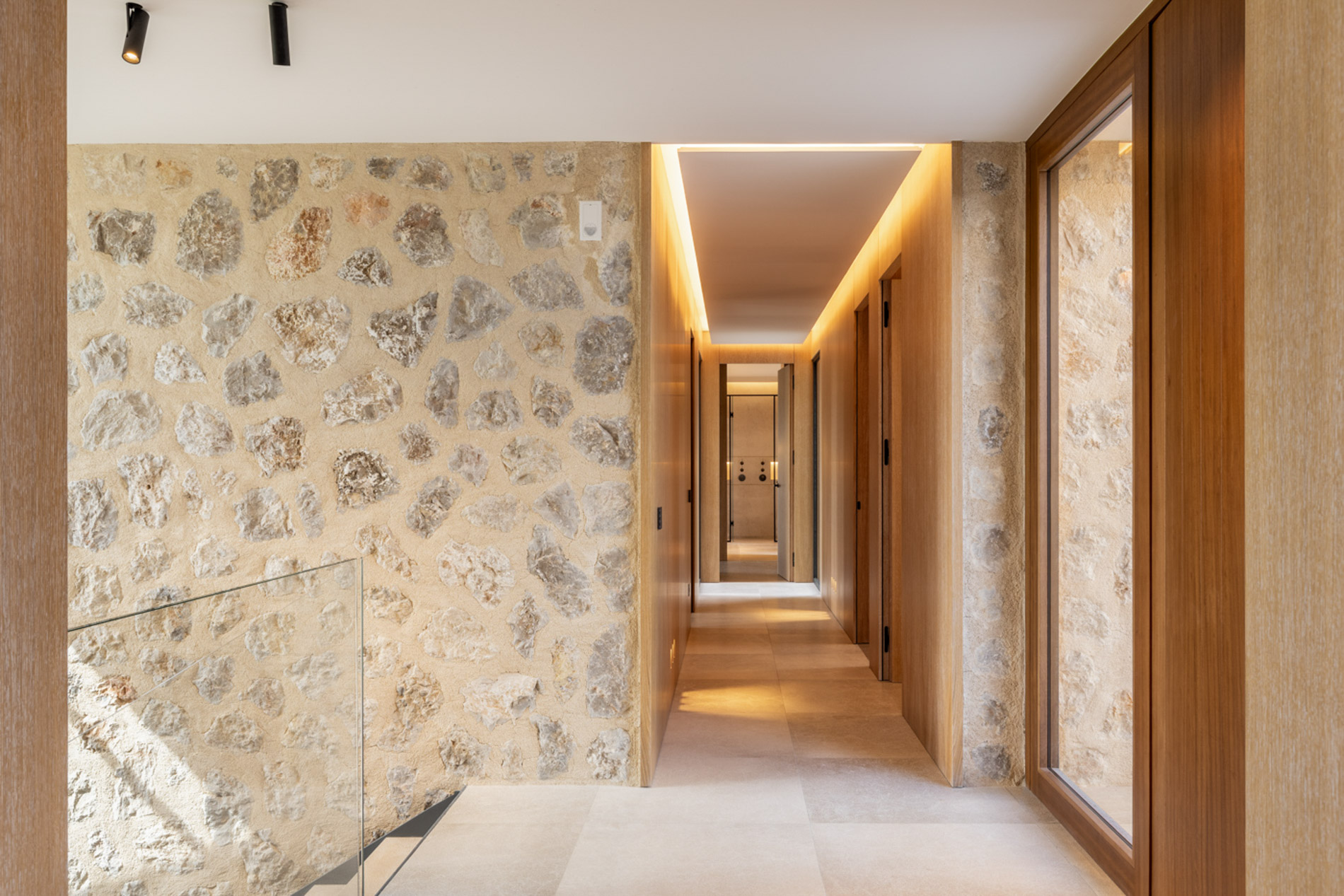 En el pintoresco pueblo de Santa Maria del Camí se encuentra una espectacular finca de nueva construcción que combina lujo y serenidad en un entorno natural privilegiado. Esta propiedad goza de una ubicación estratégica en el corazón de la isla, a tan solo 20 minutos de Palma, el aeropuerto y las playas más cercanas. Situada en una extensa parcela de 16.239 m², la finca ofrece una experiencia de vida exclusiva. En la planta baja, destaca una amplia zona de cocina-comedor de concepto abierto junto a una sala de estar, ambas sutilmente separadas por una elegante chimenea. Los tres dormitorios de la casa, todos con baños en suite, ofrecen acceso directo a los jardines, brindando vistas relajantes del entorno natural. Además, la propiedad cuenta con un aseo adicional para invitados. El nivel subterráneo incluye un garaje, una bodega, un baño, una sala de lavandería/despensa y un gran espacio multifuncional adaptable como gimnasio, sala de cine o una suite adicional para invitados, ofreciendo diversas opciones de uso. El exterior es un auténtico oasis de paz, con un frondoso jardín mediterráneo y una terraza cubierta, perfectos para disfrutar de momentos al aire libre. La piscina, de aproximadamente 34 m², se encuentra en medio de un paisaje sereno, proporcionando el lugar ideal para relajarse. Esta finca ha sido construida con materiales de primera calidad, incluyendo una fachada de piedra natural, vigas de madera expuestas, suelos de piedra Gris Zarci y una cocina hecha a medida. La propiedad está equipada con calefacción por suelo radiante, aire acondicionado, paneles solares, ventanas de doble acristalamiento y tecnología de aerotermia para agua caliente, garantizando comodidad y eficiencia energética durante todo el año. MallorcaSite, su agencia inmobiliaria de confianza en Mallorca, recomienda esta finca por ser la combinación perfecta de lujo, confort y estilo de vida mediterráneo.