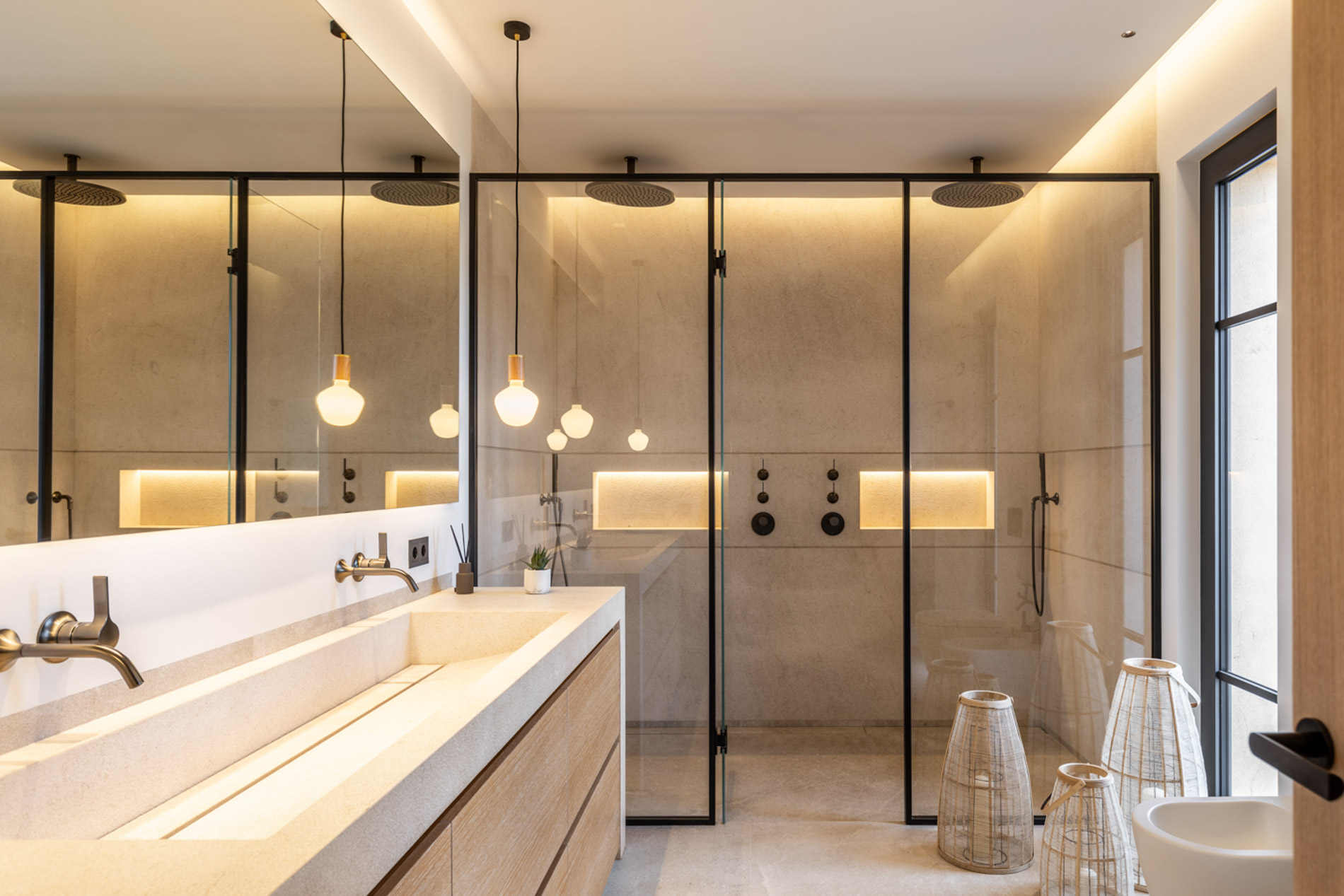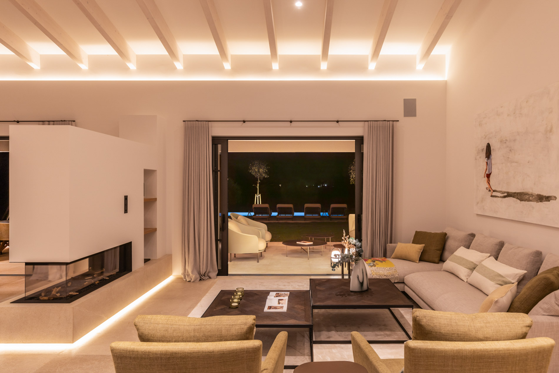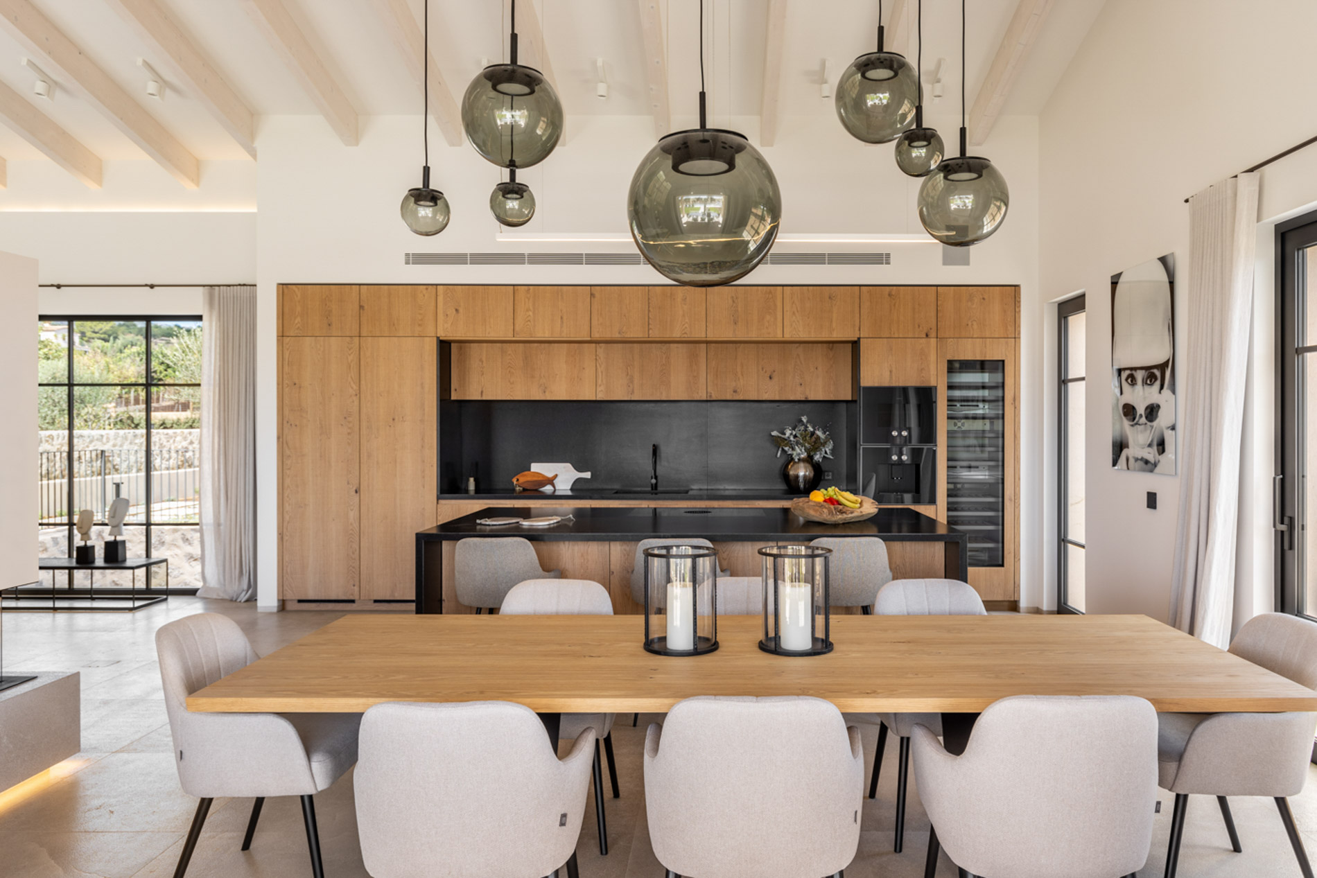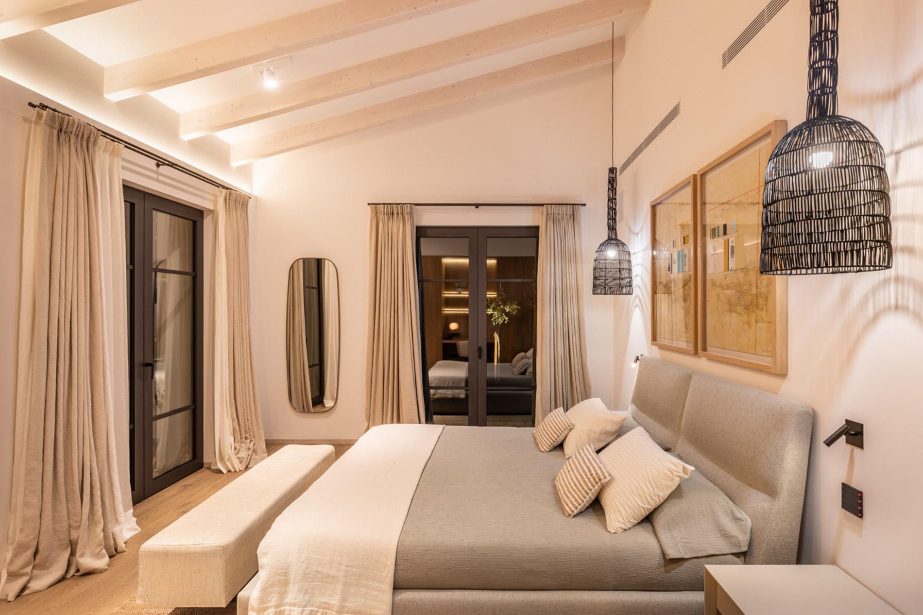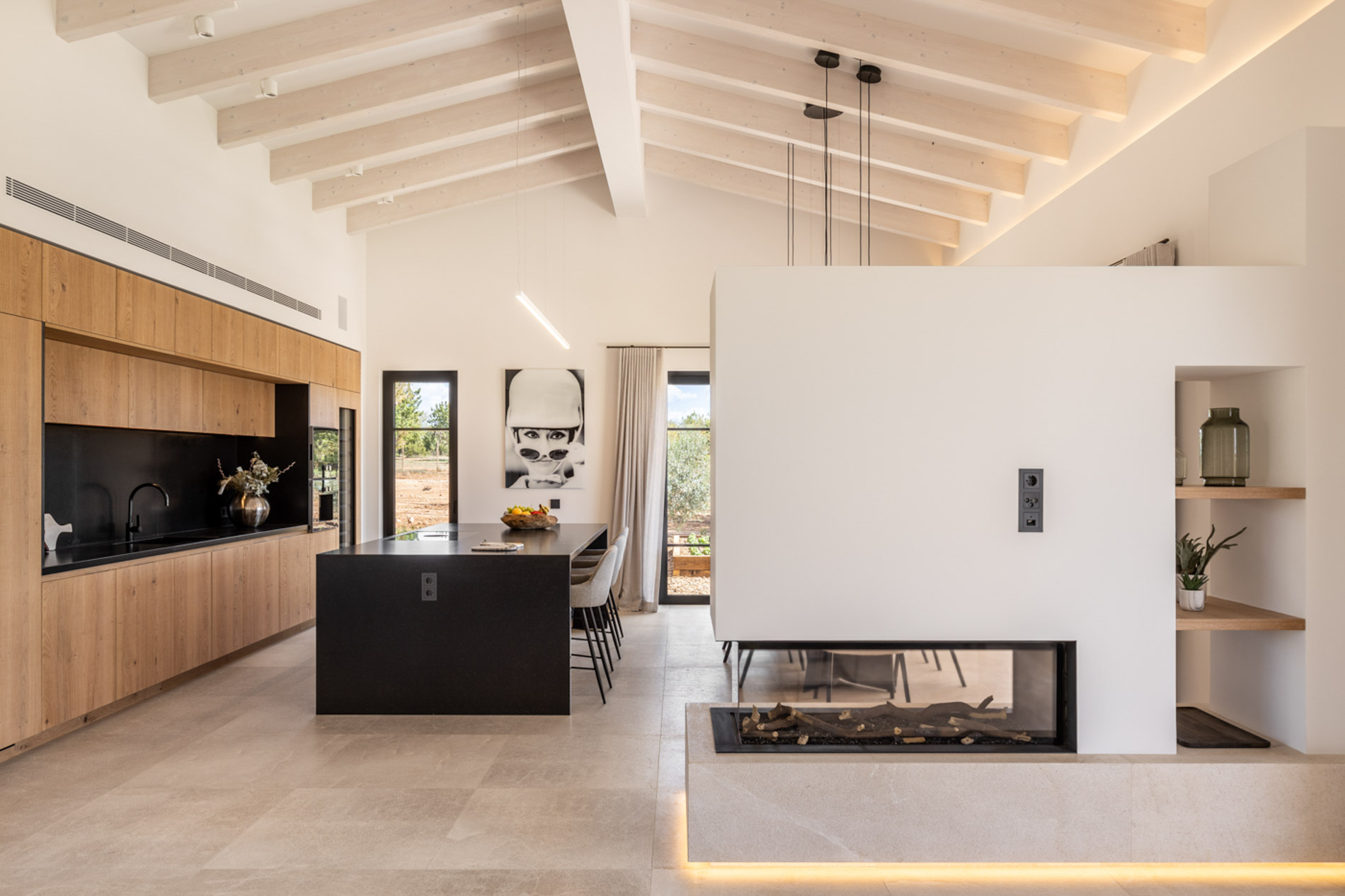 En el pintoresco pueblo de Santa Maria del Camí se encuentra una espectacular finca de nueva construcción que combina lujo y serenidad en un entorno natural privilegiado. Esta propiedad goza de una ubicación estratégica en el corazón de la isla, a tan solo 20 minutos de Palma, el aeropuerto y las playas más cercanas. Situada en una extensa parcela de 16.239 m², la finca ofrece una experiencia de vida exclusiva. En la planta baja, destaca una amplia zona de cocina-comedor de concepto abierto junto a una sala de estar, ambas sutilmente separadas por una elegante chimenea. Los tres dormitorios de la casa, todos con baños en suite, ofrecen acceso directo a los jardines, brindando vistas relajantes del entorno natural. Además, la propiedad cuenta con un aseo adicional para invitados. El nivel subterráneo incluye un garaje, una bodega, un baño, una sala de lavandería/despensa y un gran espacio multifuncional adaptable como gimnasio, sala de cine o una suite adicional para invitados, ofreciendo diversas opciones de uso. El exterior es un auténtico oasis de paz, con un frondoso jardín mediterráneo y una terraza cubierta, perfectos para disfrutar de momentos al aire libre. La piscina, de aproximadamente 34 m², se encuentra en medio de un paisaje sereno, proporcionando el lugar ideal para relajarse. Esta finca ha sido construida con materiales de primera calidad, incluyendo una fachada de piedra natural, vigas de madera expuestas, suelos de piedra Gris Zarci y una cocina hecha a medida. La propiedad está equipada con calefacción por suelo radiante, aire acondicionado, paneles solares, ventanas de doble acristalamiento y tecnología de aerotermia para agua caliente, garantizando comodidad y eficiencia energética durante todo el año. MallorcaSite, su agencia inmobiliaria de confianza en Mallorca, recomienda esta finca por ser la combinación perfecta de lujo, confort y estilo de vida mediterráneo.