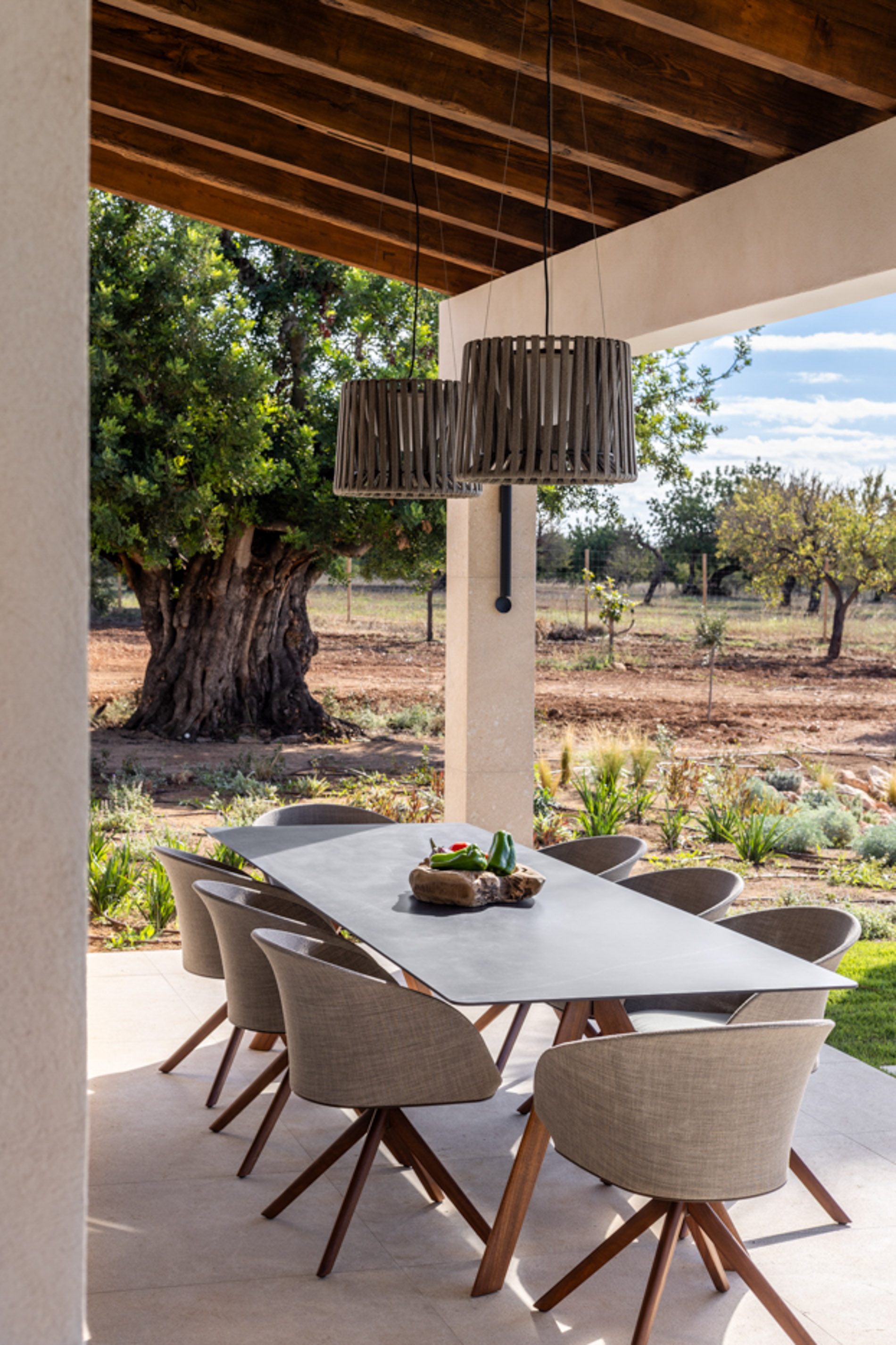En el pintoresco pueblo de Santa Maria del Camí se encuentra una espectacular finca de nueva construcción que combina lujo y serenidad en un entorno natural privilegiado. Esta propiedad goza de una ubicación estratégica en el corazón de la isla, a tan solo 20 minutos de Palma, el aeropuerto y las playas más cercanas. Situada en una extensa parcela de 16.239 m², la finca ofrece una experiencia de vida exclusiva.