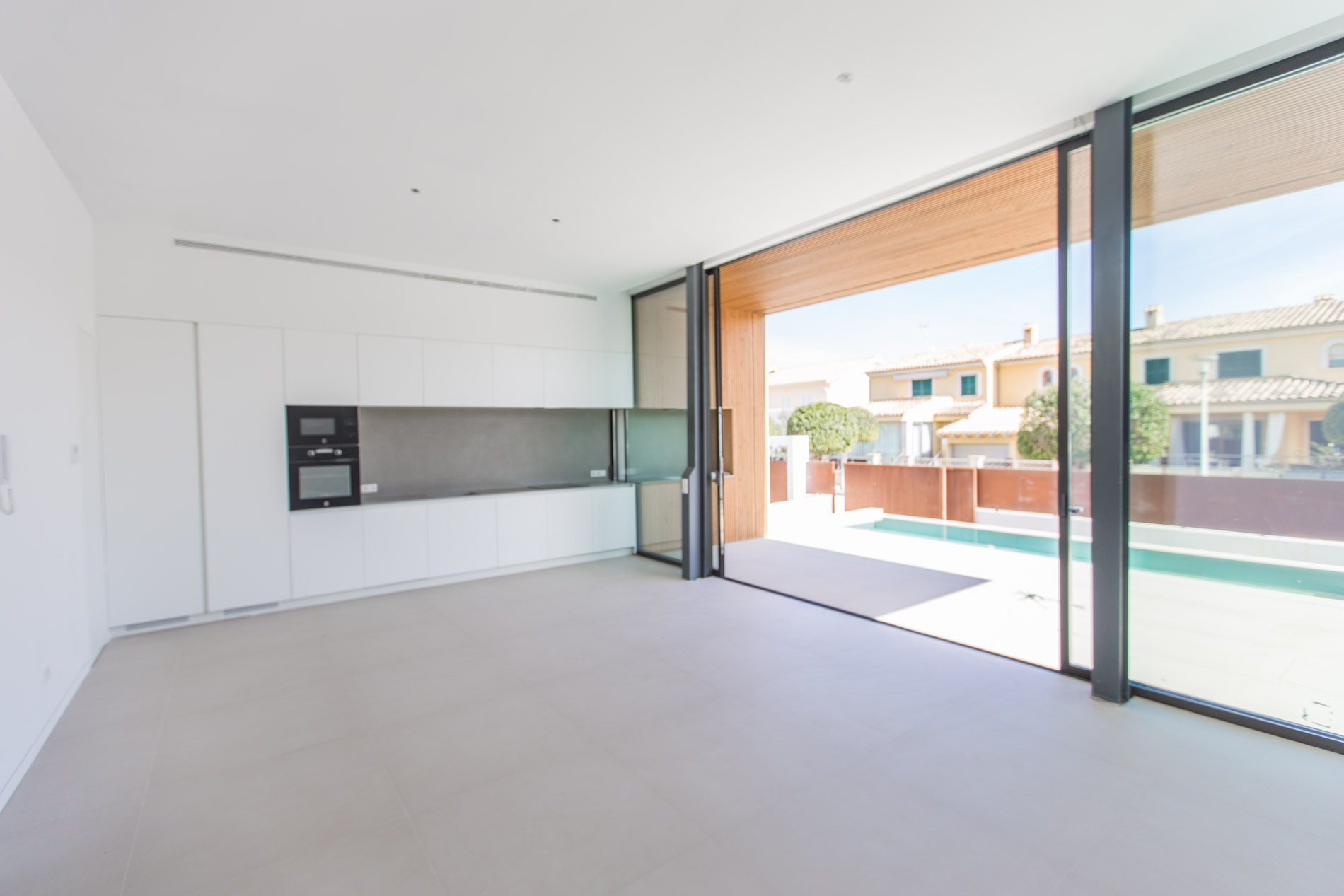 En la pintoresca costa de Alcudia, Mallorca, se erige un refugio de ensueño que combina a la perfección la comodidad moderna con la belleza natural. A tan solo 700 metros de las aguas de color turquesa y el extenso arenal de la playa de Alcudia, esta villa de nueva construcción es la personificación de la elegancia contemporánea. Desde el momento en que pone un pie en esta propiedad, será recibido por un diseño arquitectónico vanguardista. Techos altos y generosos ventanales dan la bienvenida a una cascada de luz natural que inunda cada rincón de la vivienda. La combinación de líneas limpias y materiales de alta gama crea una atmósfera de lujo y comodidad que le hará sentirse como en casa desde el primer momento. Esta villa de tres dormitorios y dos baños, uno de ellos en suite, está diseñada pensando en la vida en familia. El amplio salón-comedor se integra perfectamente con la cocina de diseño, creando un espacio abierto donde la conversación fluye tan libremente como la luz que entra por las ventanas. Desde aquí, se accede a una terraza que se extiende hacia el jardín, donde una piscina invita a sumergirse y relajarse bajo el sol mallorquín. Pero lo que realmente distingue a esta propiedad es su ubicación. Situada en una tranquila zona residencial de Alcudia, se encuentra a un paseo de distancia de la playa y rodeada de restaurantes, bares y opciones de entretenimiento para toda la familia. Ya sea que busque aventuras acuáticas, explorar la rica historia de la isla o simplemente relajarse en la arena, todo está a su alcance.