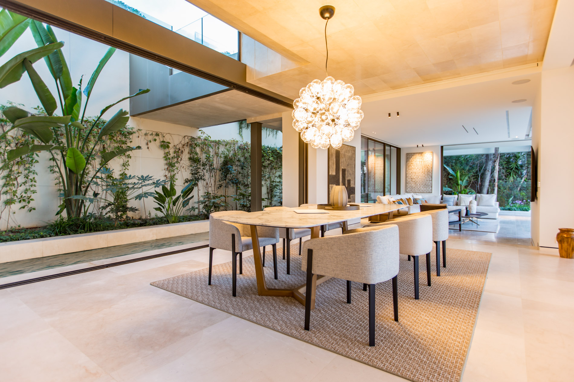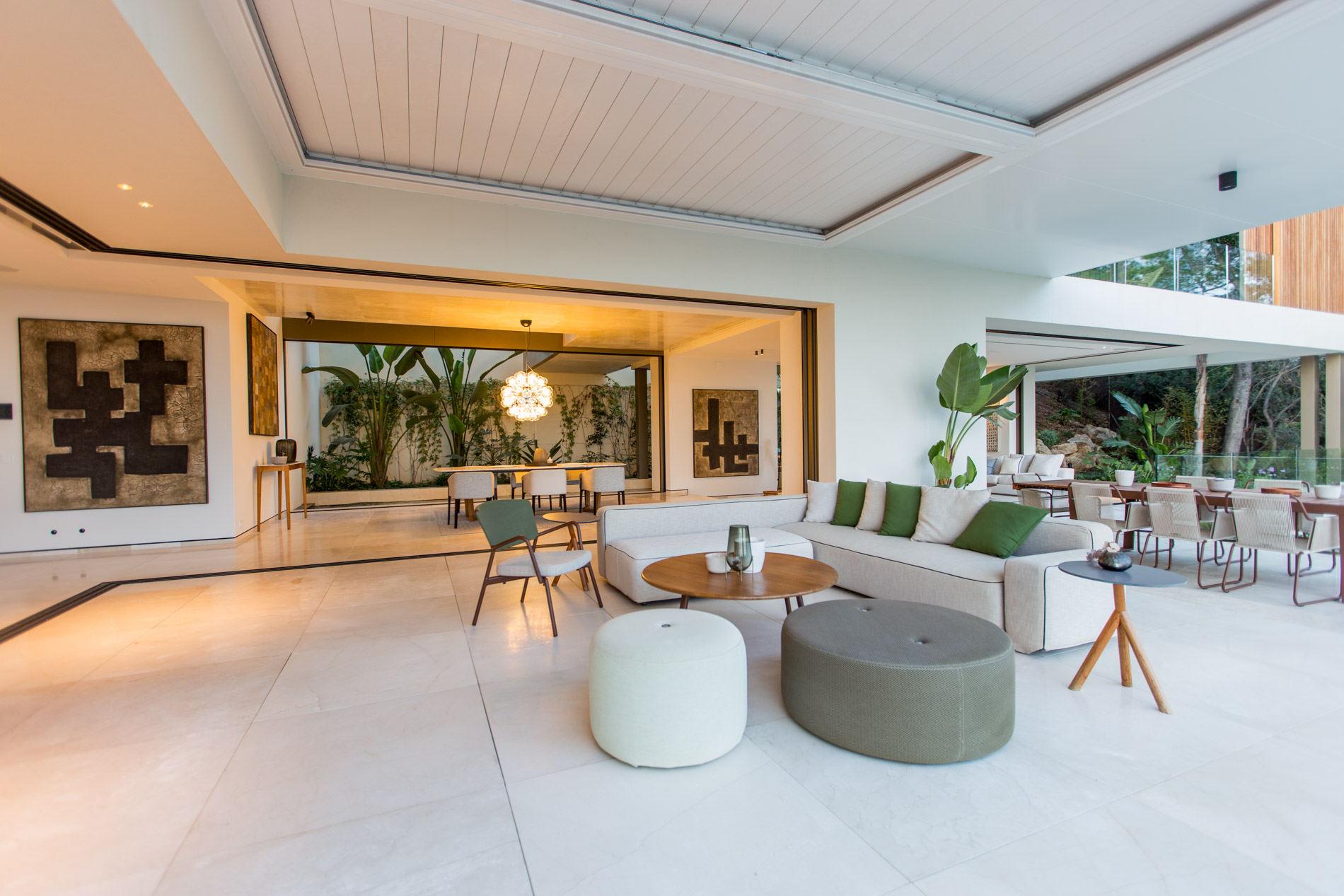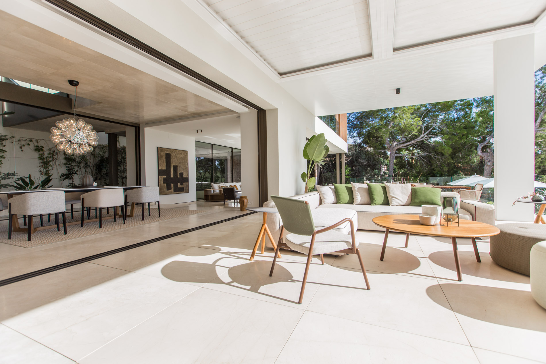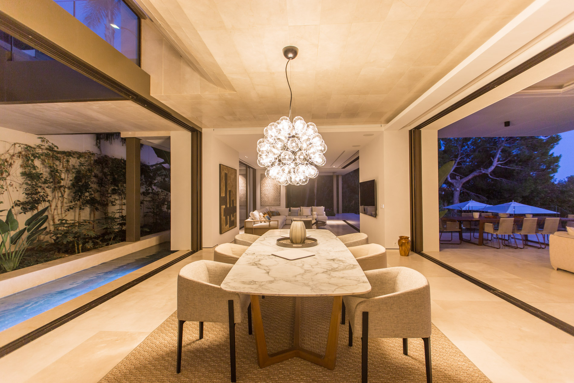 Esta villa de estilo único se encuentra en la lujosa y tranquila zona residencial de Bendinat, a pocos minutos en coche del campo de golf, Puerto Portals, numerosas playas, restaurantes, supermercados y todos los servicios. A la ciudad de Palma se llega en tan solo 10 minutos.